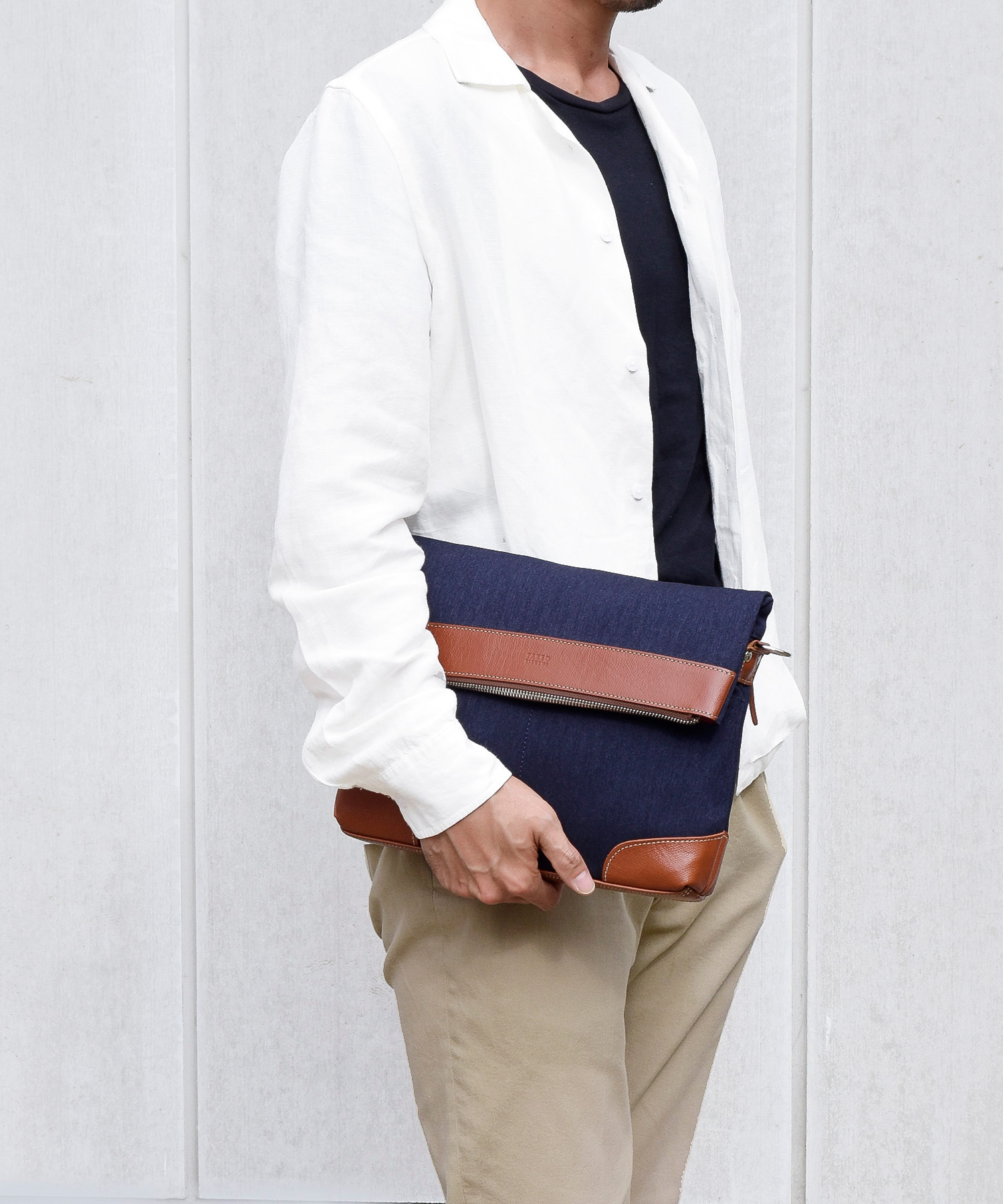 大人な雰囲気の杢調ヘリンボーン生地を使用した、TAKEO KIKUCHIのカジュアル2wayショルダーバッグ。かぶせ部分を開けなくてもメインルームに繋がるファスナーポケットや、タブレット用クッションポケットの搭載など機能面を高めた、安心の日本製バッグです。本体素材には汚れが付きにくく、水が中に染み込むことがなく、耐久性もある鞄用素材を使用しました。