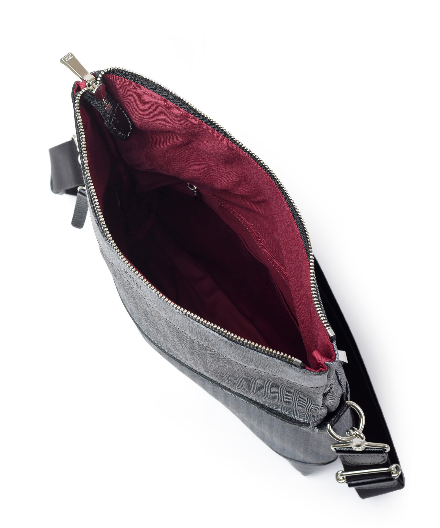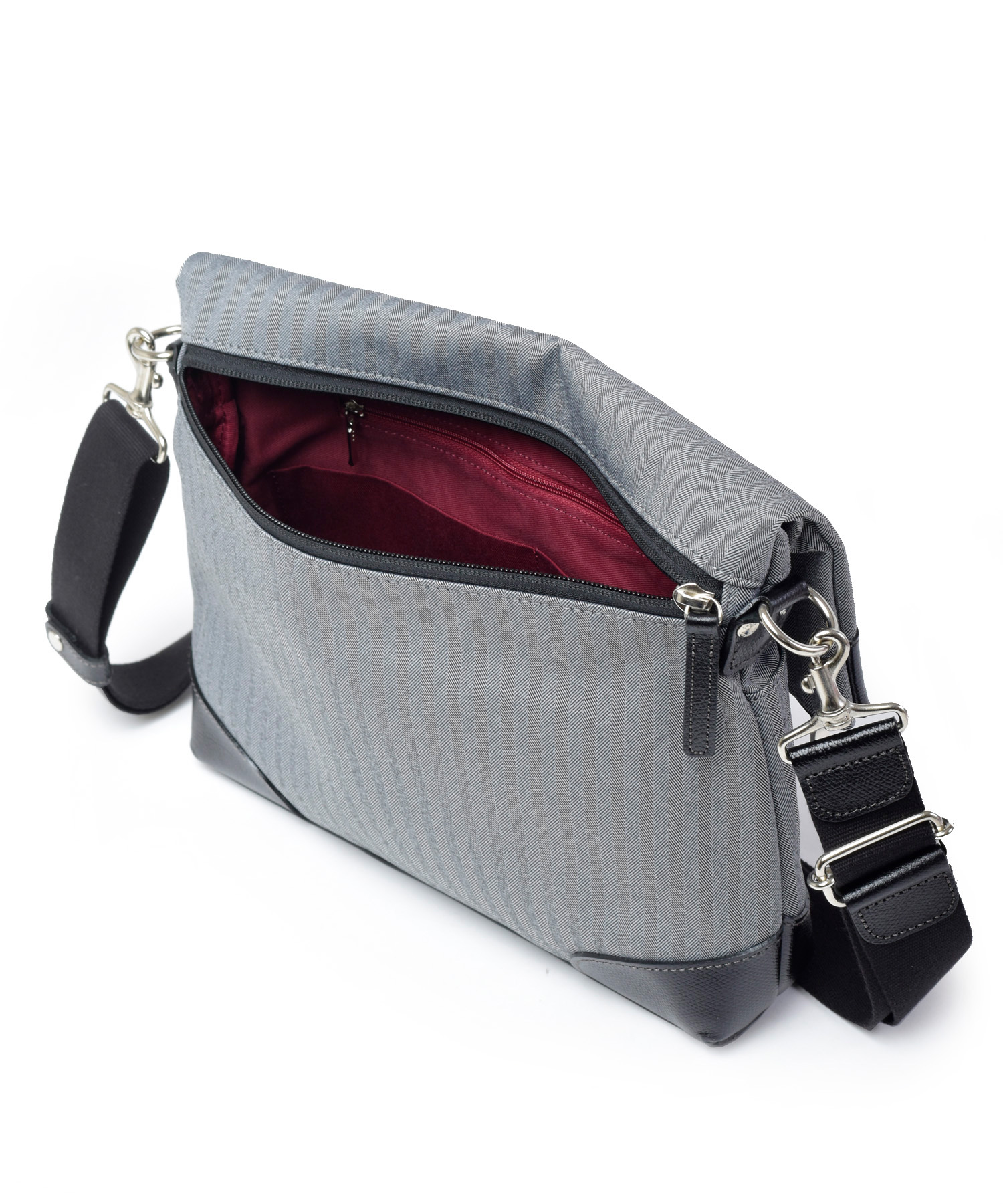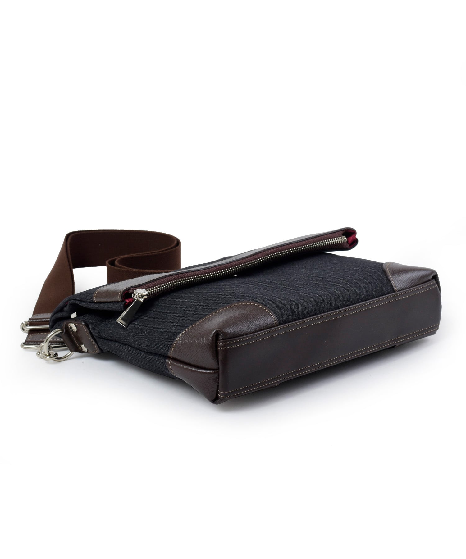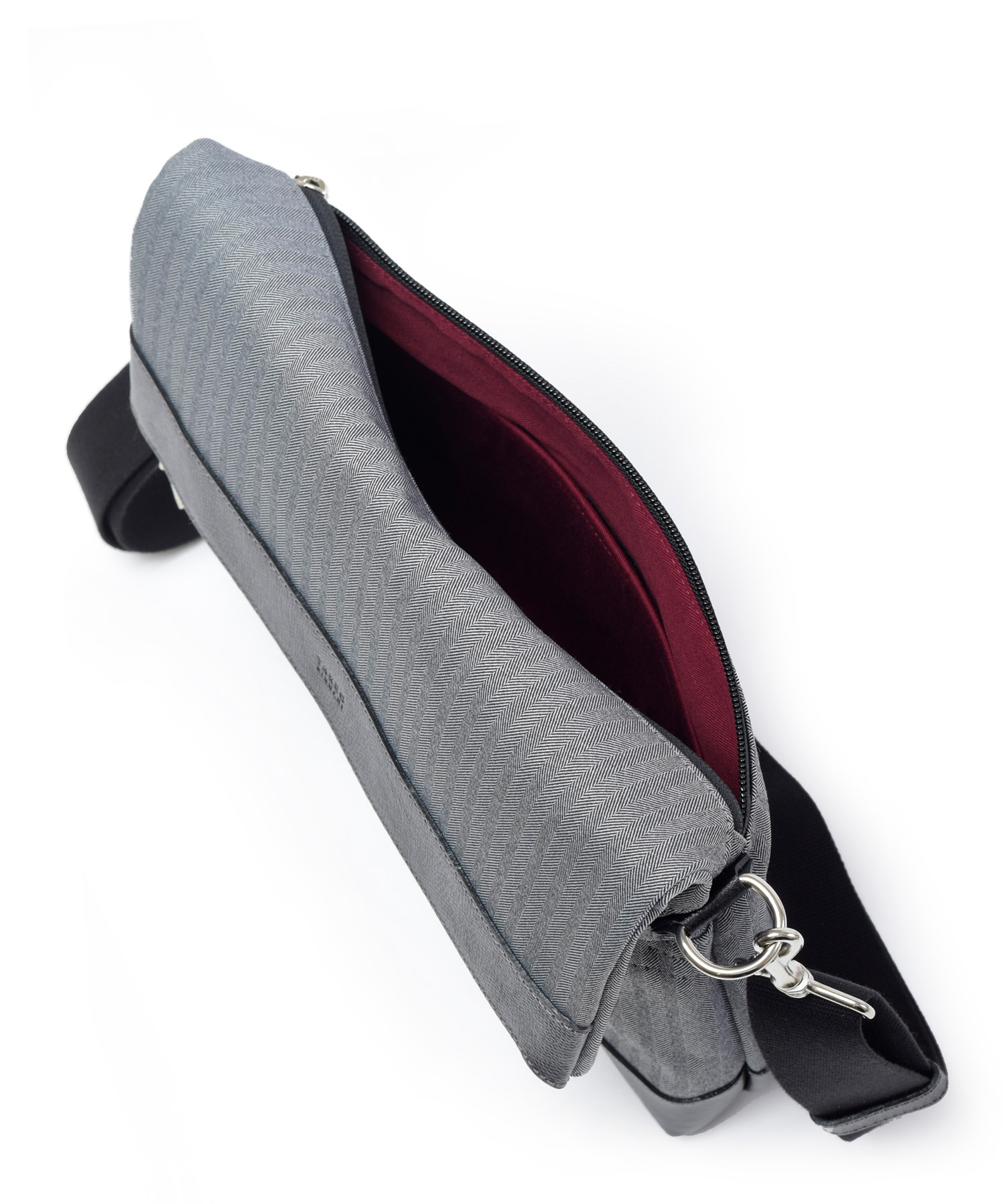 本体生地には高感度・多機能素材として主に服地で用いられるLANATEC(ラナテック)という抗ピリング加工が施された杢調ポリエステルを使用。ヘリンボーン柄で織られた素材感のある大人っぽい印象の素材になります。 表面には撥水加工を施し、裏面にカツラギを溶剤で圧着していますので、汚れが付きにくく、水が中に染み込むことがなく、抗ピリング加工により耐久性もある鞄用素材に仕上がっています。