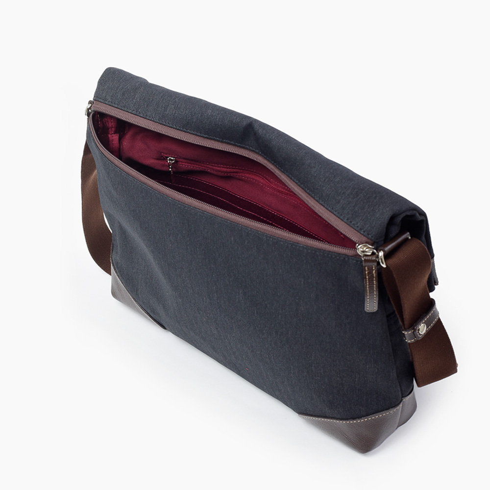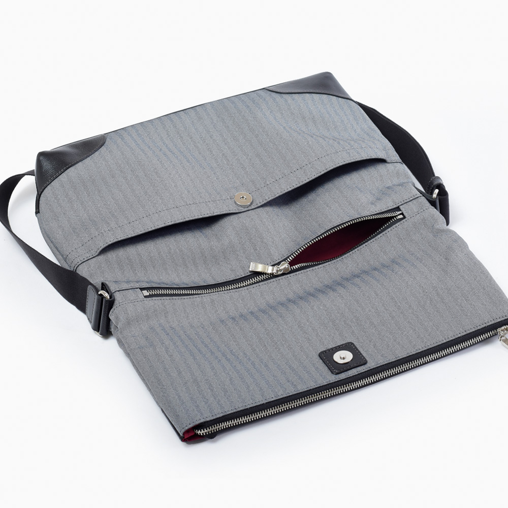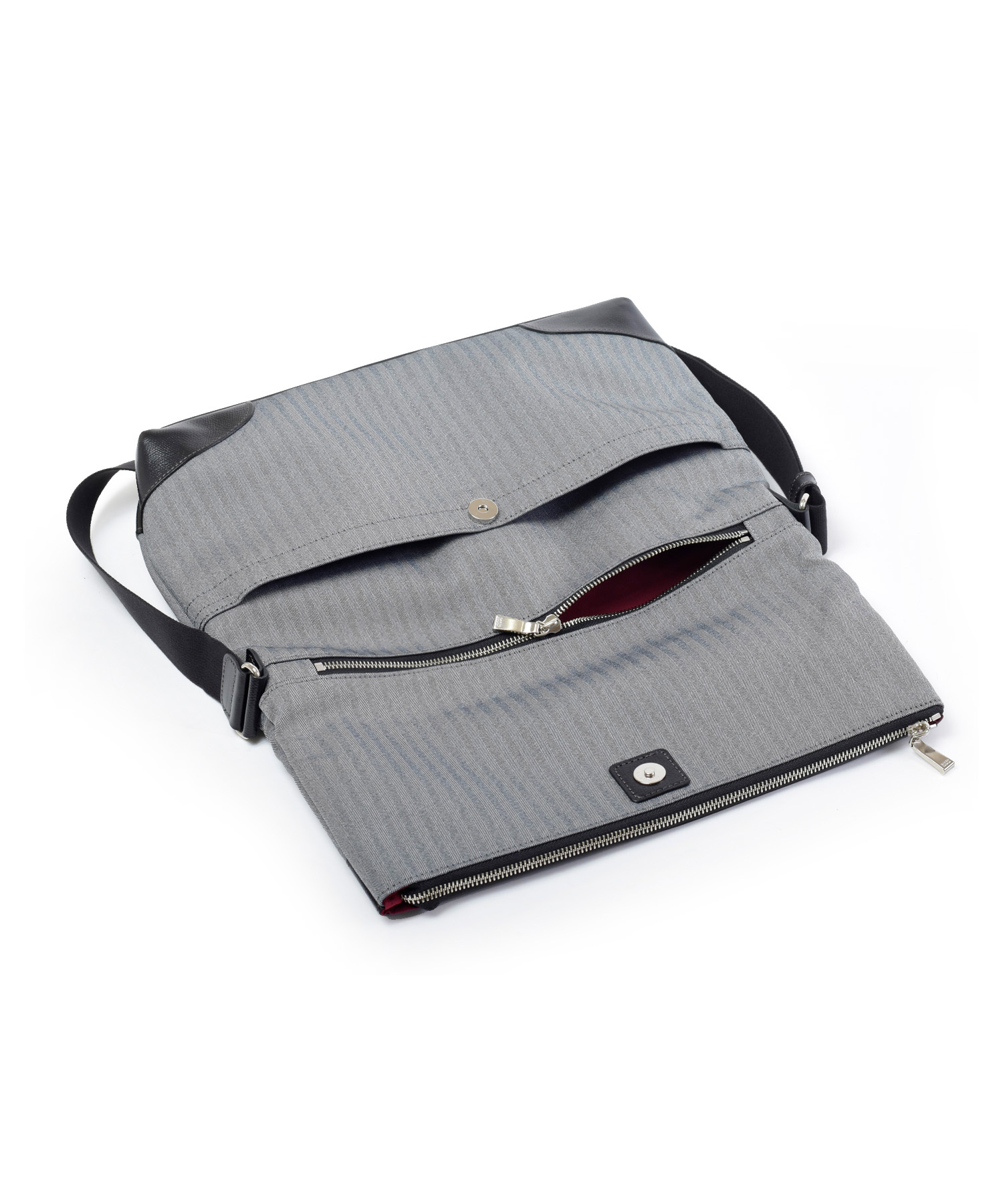 本体生地には高感度・多機能素材として主に服地で用いられるLANATEC(ラナテック)という抗ピリング加工が施された杢調ポリエステルを使用。ヘリンボーン柄で織られた素材感のある大人っぽい印象の素材になります。 表面には撥水加工を施し、裏面にカツラギを溶剤で圧着していますので、汚れが付きにくく、水が中に染み込むことがなく、抗ピリング加工により耐久性もある鞄用素材に仕上がっています。