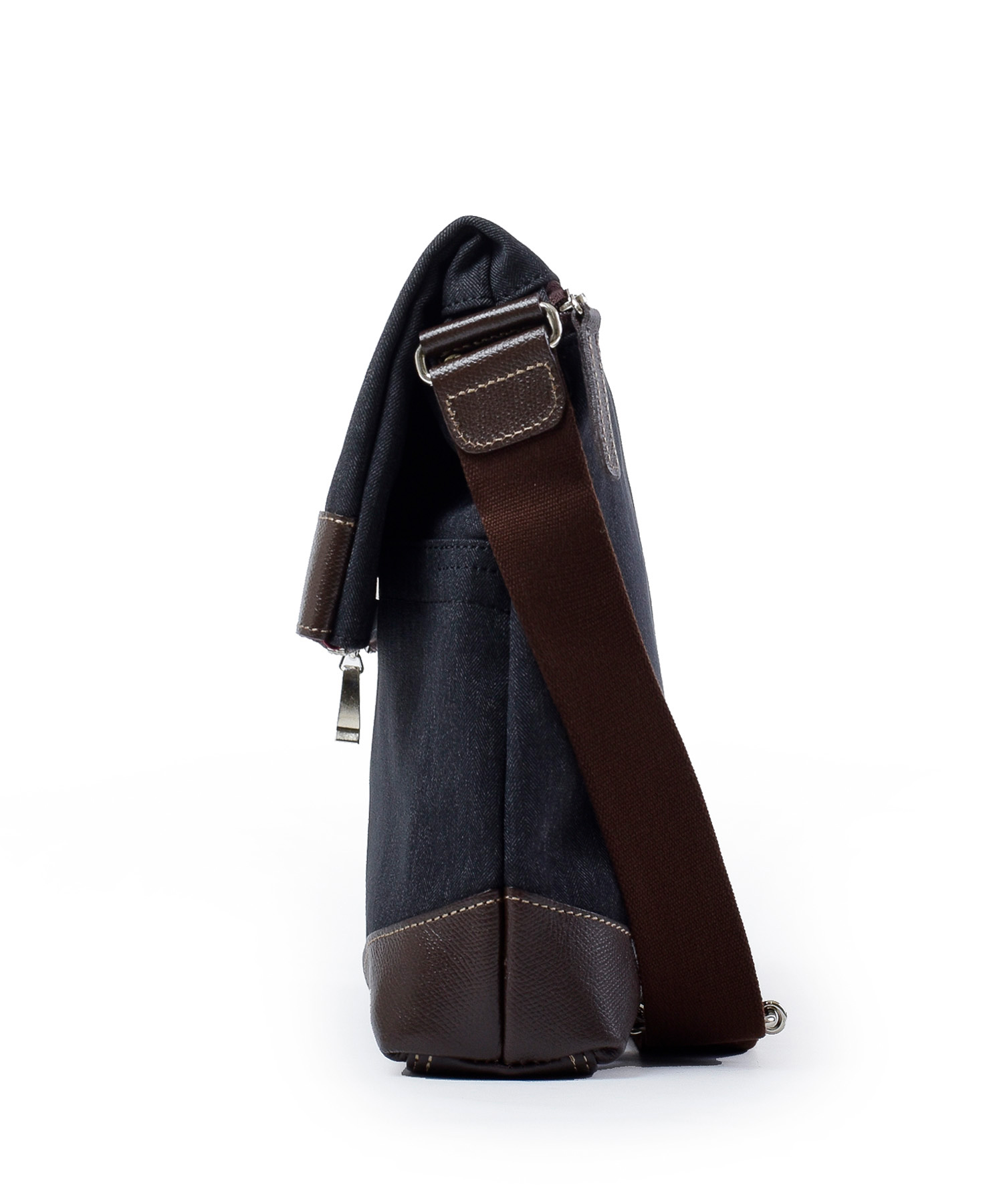 大人な雰囲気の杢調ヘリンボーン生地を使用した、TAKEO KIKUCHIのカジュアルショルダーバッグ。タブレット・スマホが入れられるクッションつきポケットの搭載や、かぶせ部分を開けなくてもメインルームに繋がる背面ファスナーなど、機能面も高めた、安心の日本製バッグです。本体素材には汚れが付きにくく、水が中に染み込むことがなく、耐久性もある鞄用素材を使用しました。
