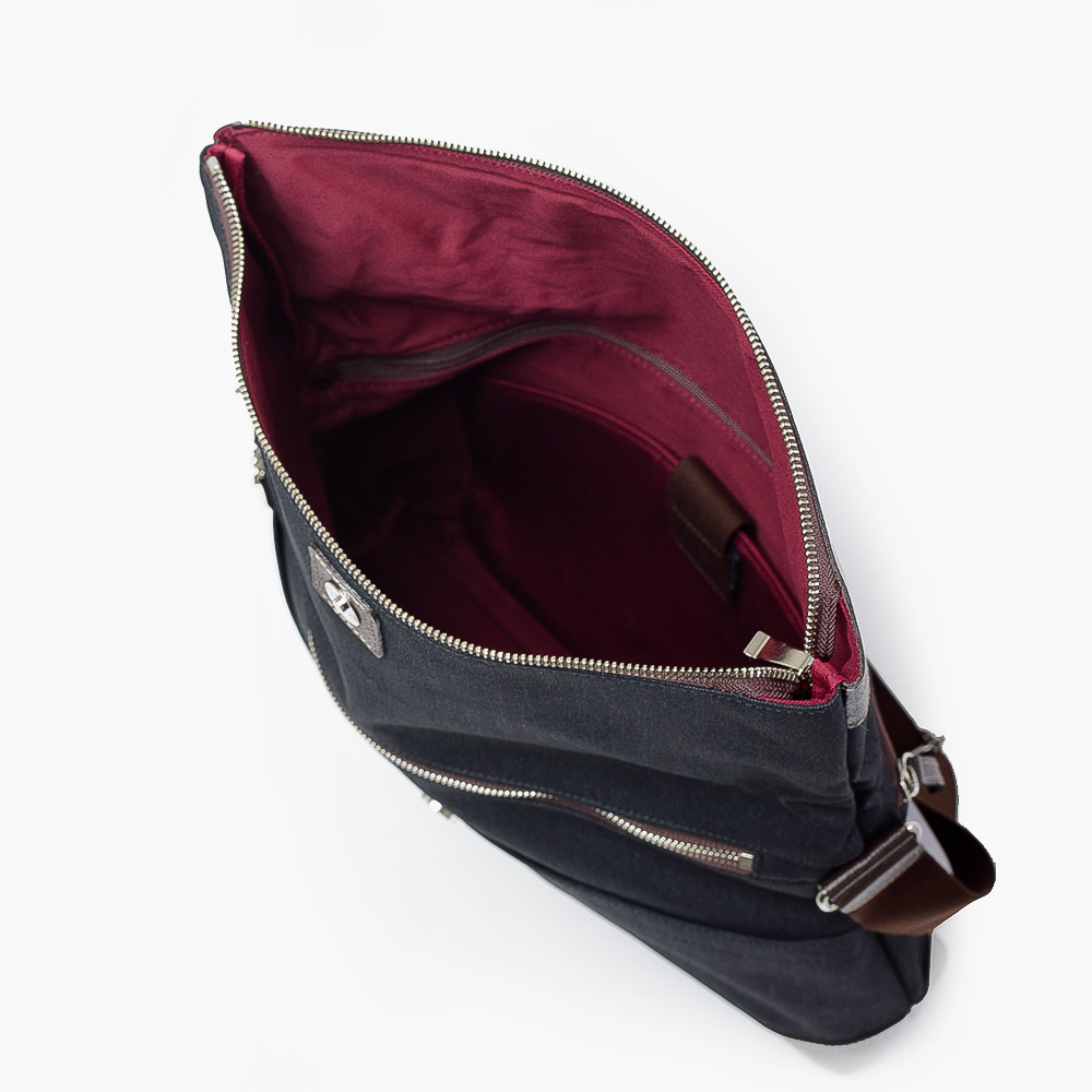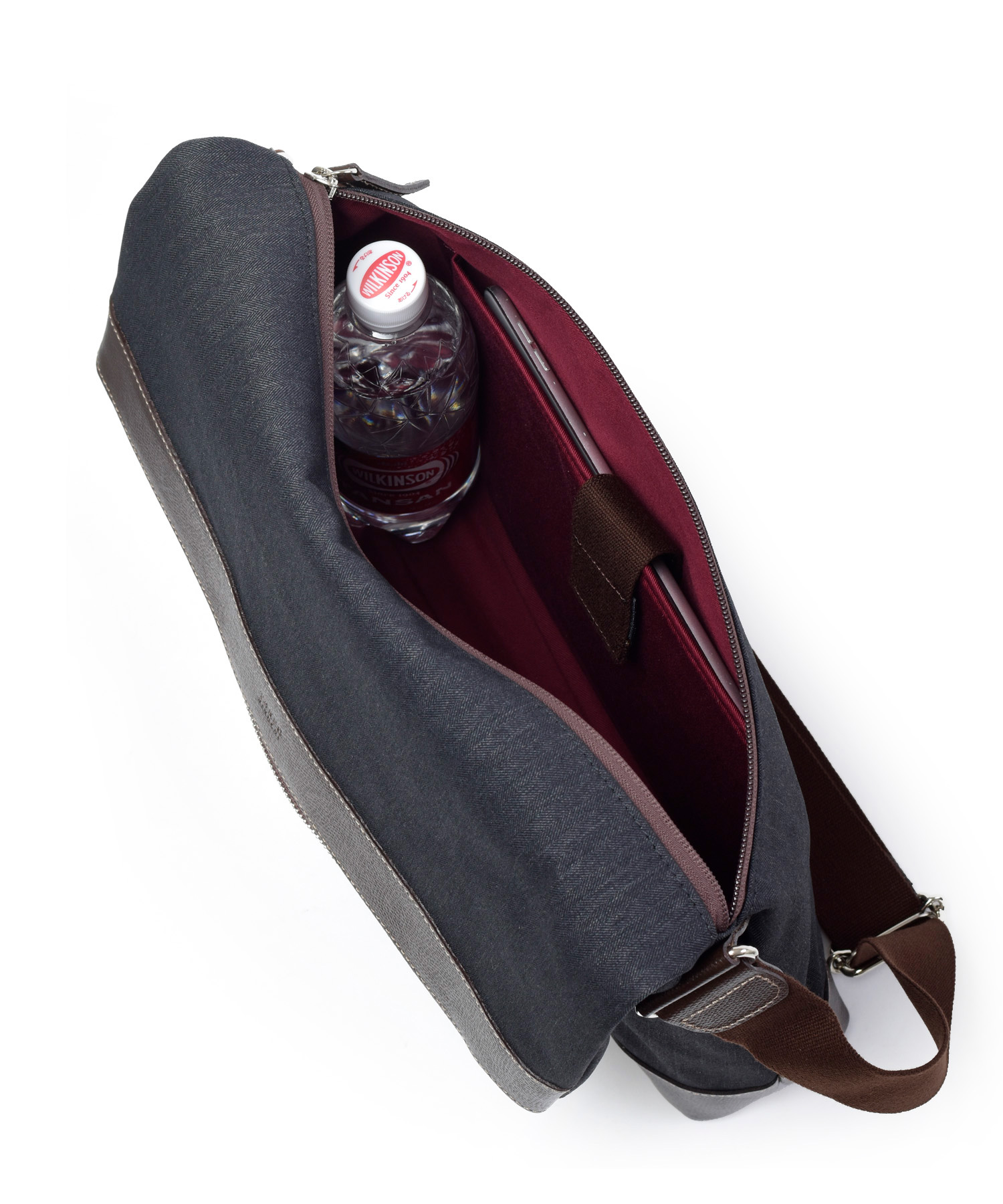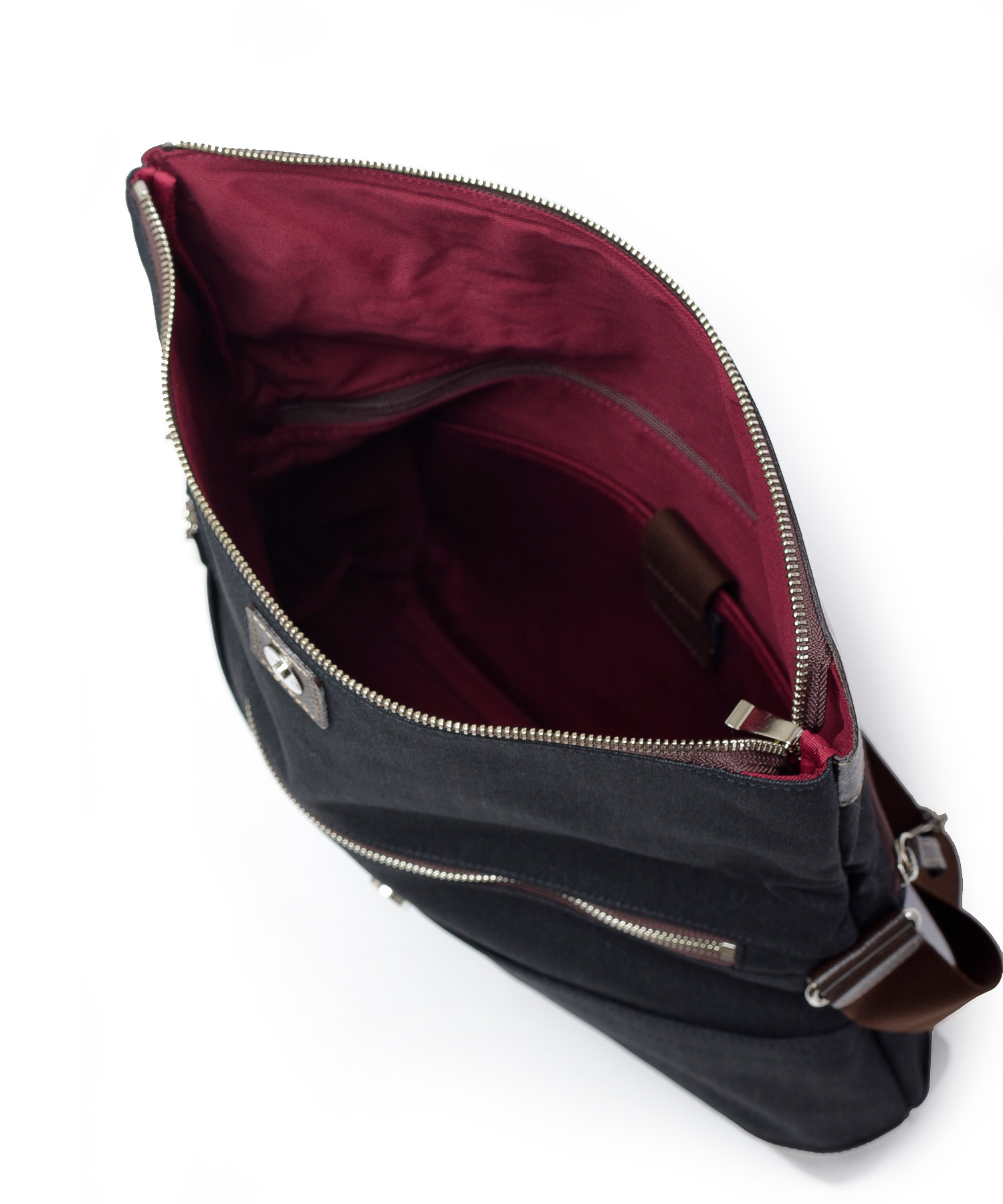 かぶせファスナーからも、背面ファスナーからもメインルームにアクセスが可能。カバンを伸ばしてファスナーを開けなくても、背面からスムーズにモノを取り出すことができます。