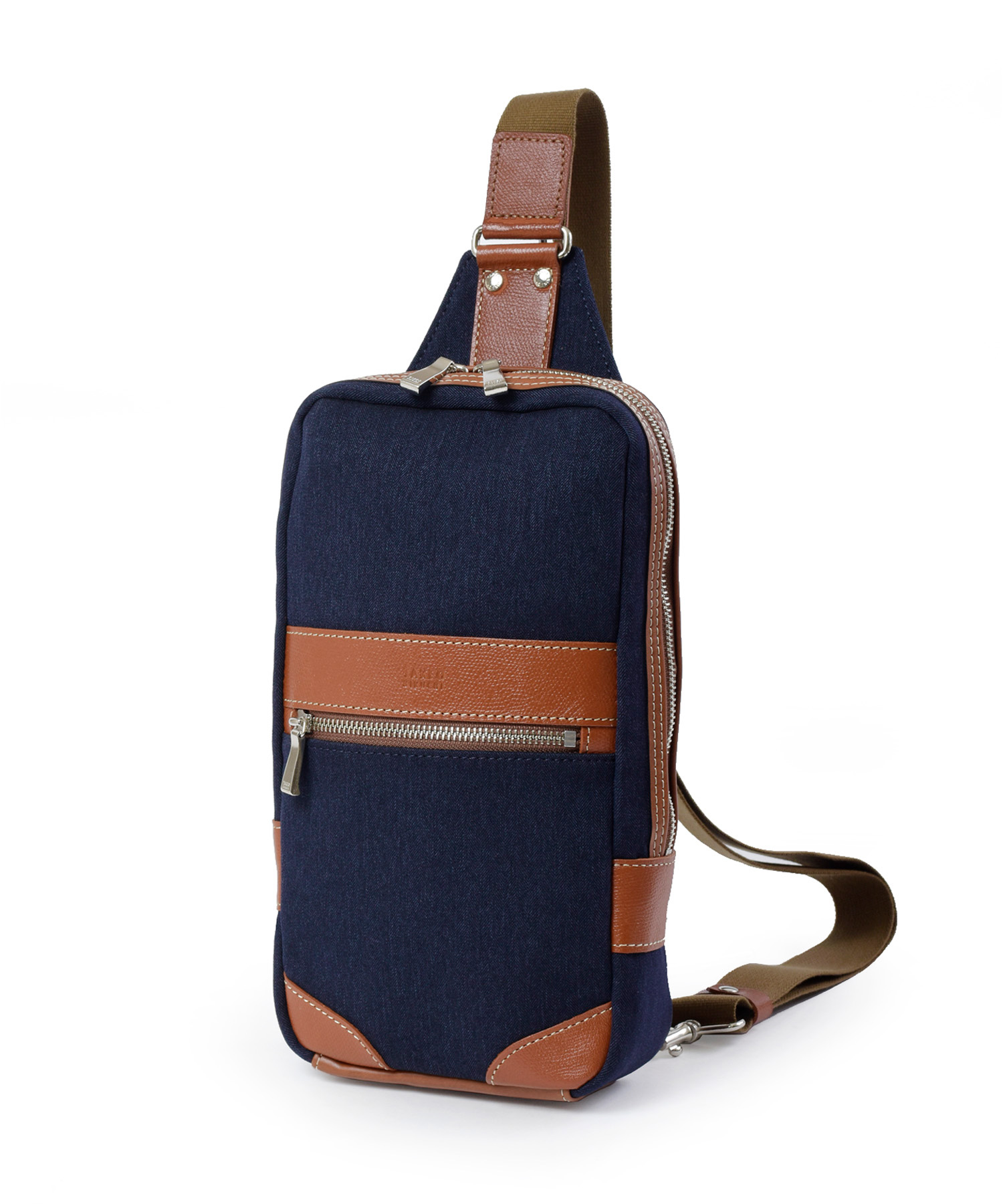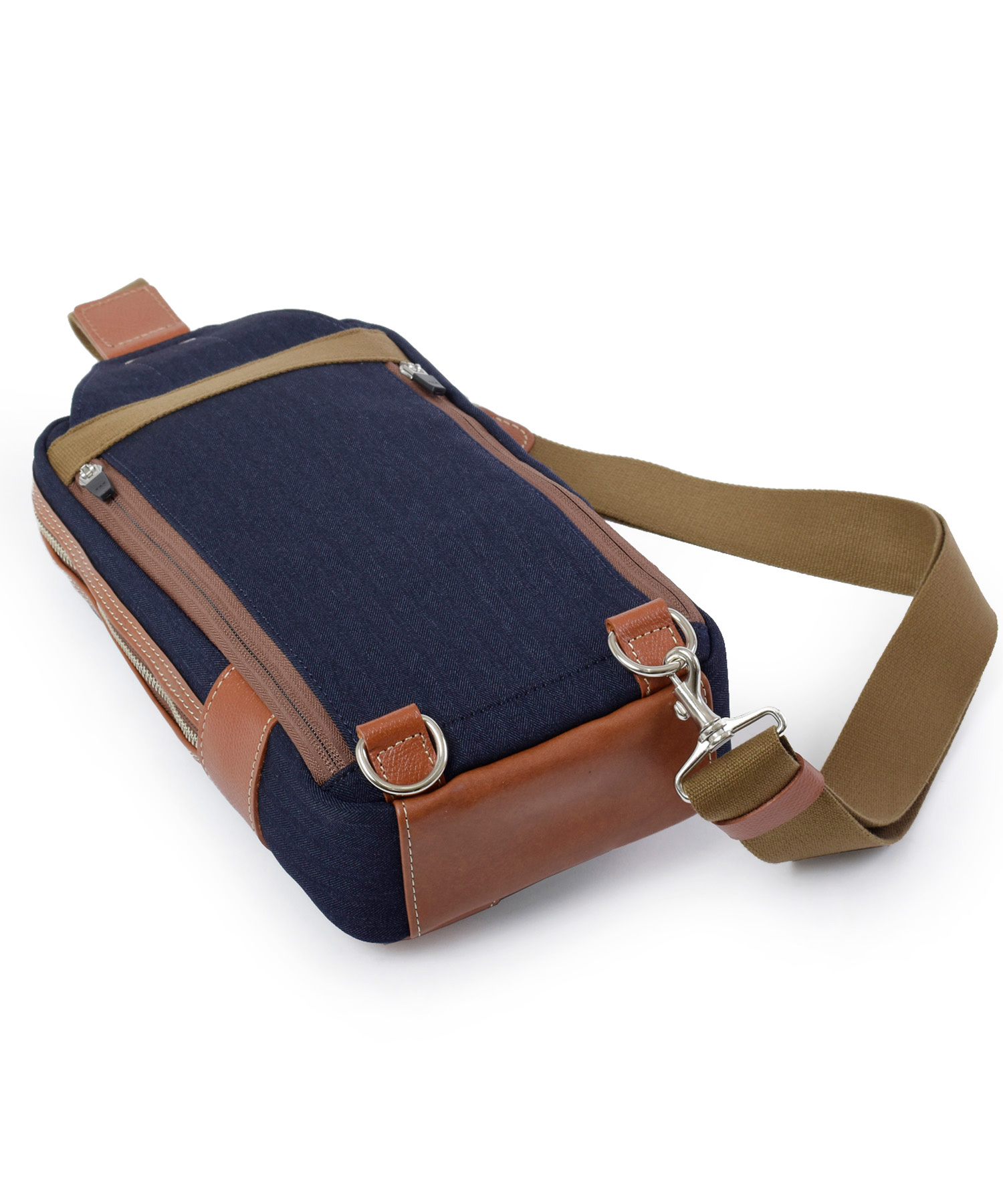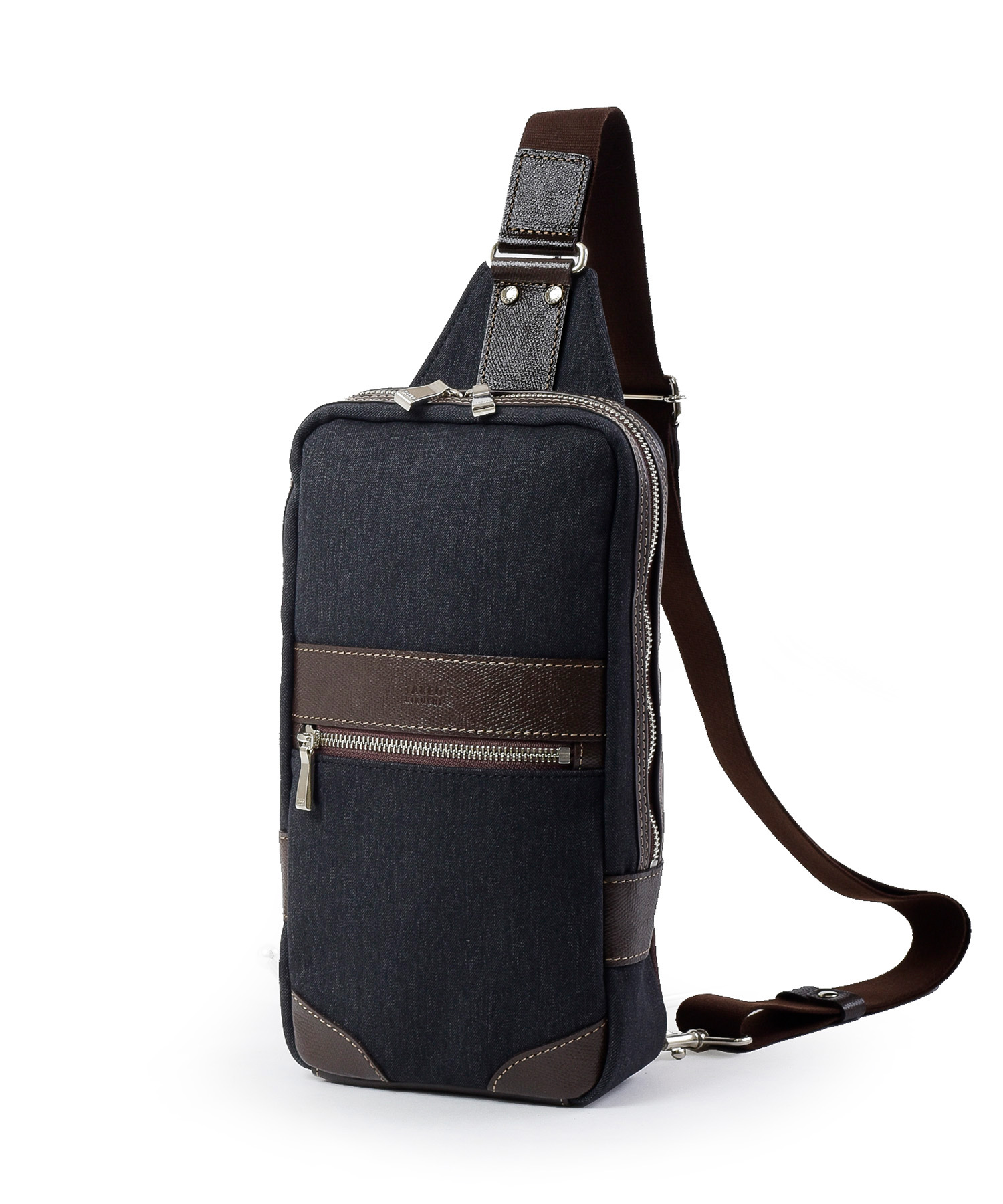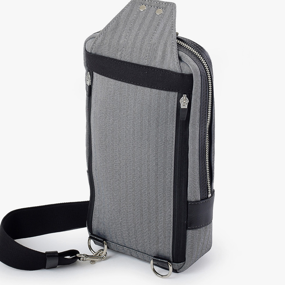 大人な雰囲気の杢調ヘリンボーン生地を使用した、TAKEO KIKUCHIのカジュアルワンショルダーバッグ。休日の散策にジャストサイズのコンパクト設計ながら、外出に必要な物をたっぷり収納する事が出来る機能面も高めた、安心の日本製バッグです。 本体素材には汚れが付きにくく、水が中に染み込むことがなく、耐久性もある鞄用素材を使用しました。実際にTAKEO KIKUCHIのアパレルでも同様の生地が使用され、アパレルブランドらしい布帛生地を使用したデザイン性と、多機能素材を併せ持ちます。