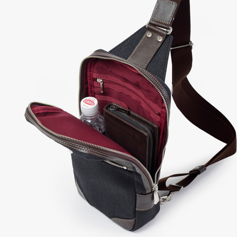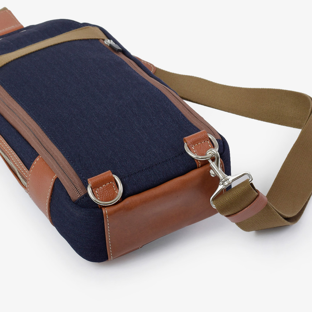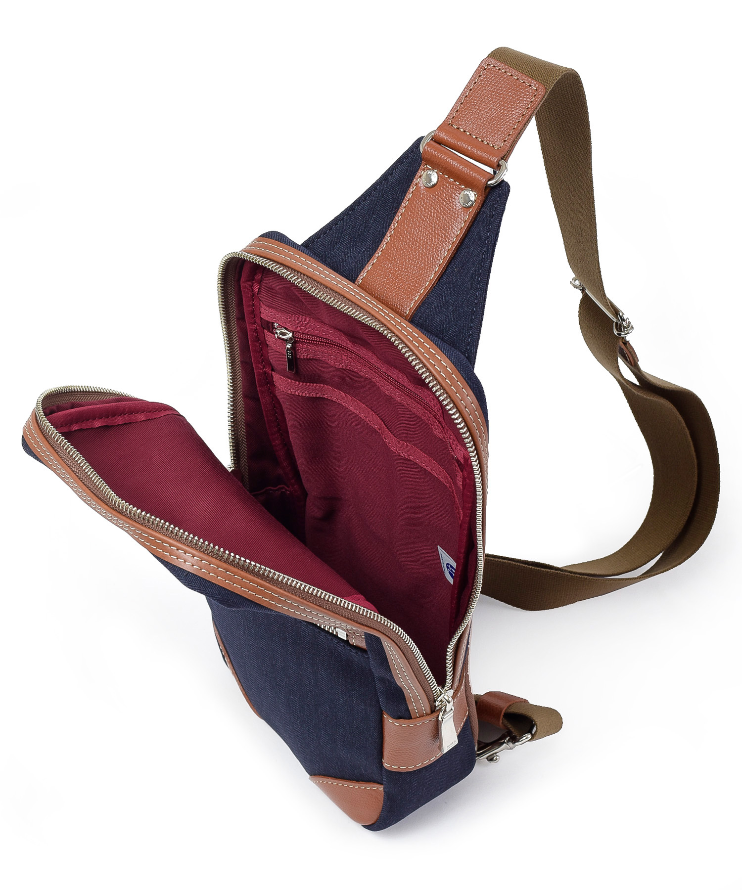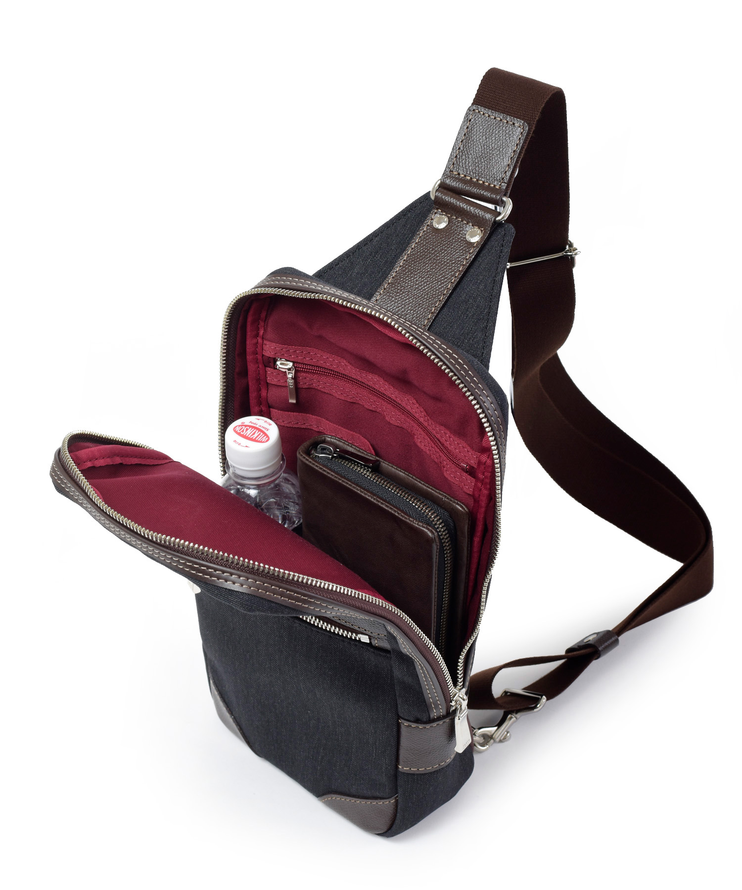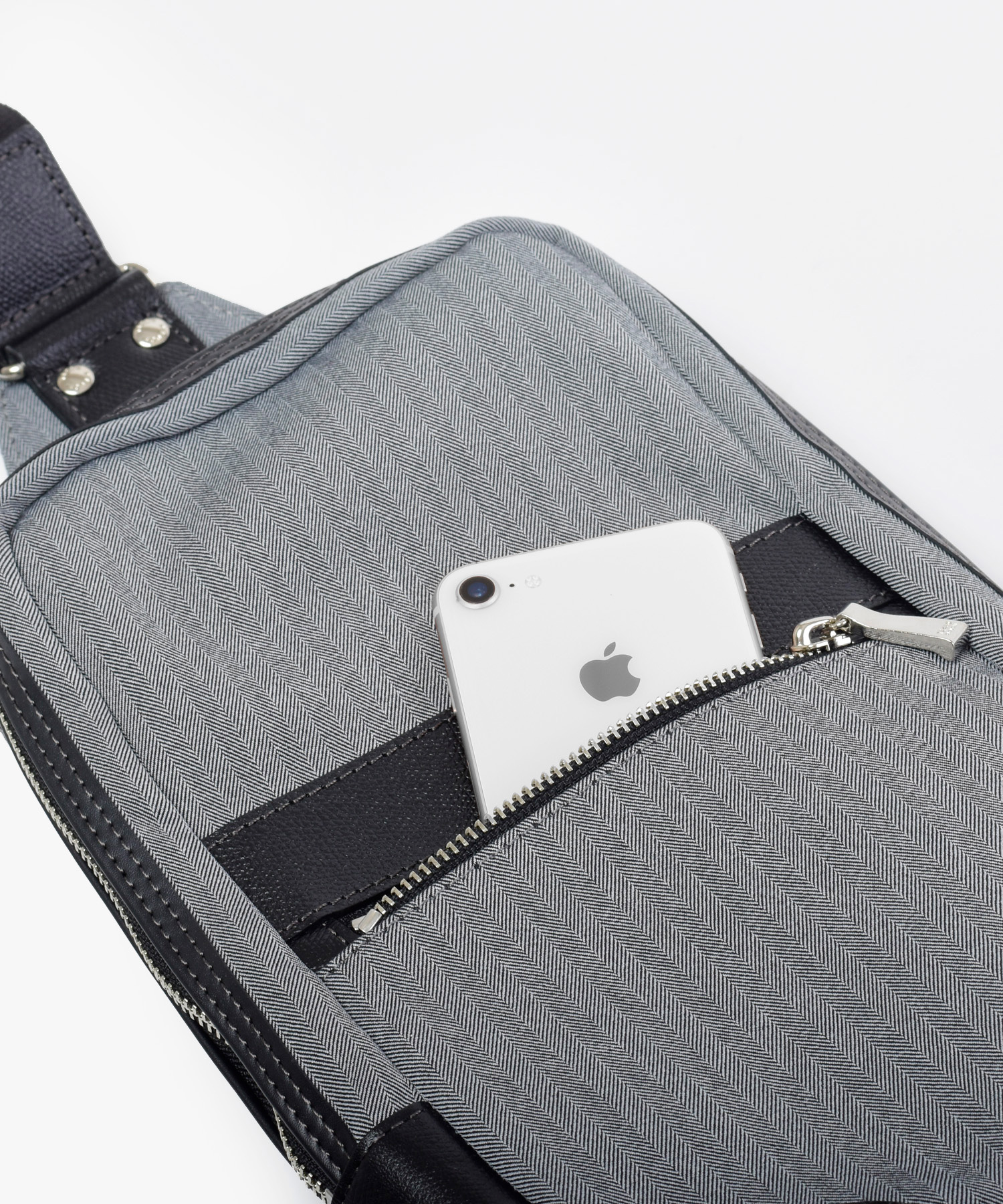 大人な雰囲気の杢調ヘリンボーン生地を使用した、TAKEO KIKUCHIのカジュアルワンショルダーバッグ。休日の散策にジャストサイズのコンパクト設計ながら、外出に必要な物をたっぷり収納する事が出来る機能面も高めた、安心の日本製バッグです。 本体素材には汚れが付きにくく、水が中に染み込むことがなく、耐久性もある鞄用素材を使用しました。実際にTAKEO KIKUCHIのアパレルでも同様の生地が使用され、アパレルブランドらしい布帛生地を使用したデザイン性と、多機能素材を併せ持ちます。