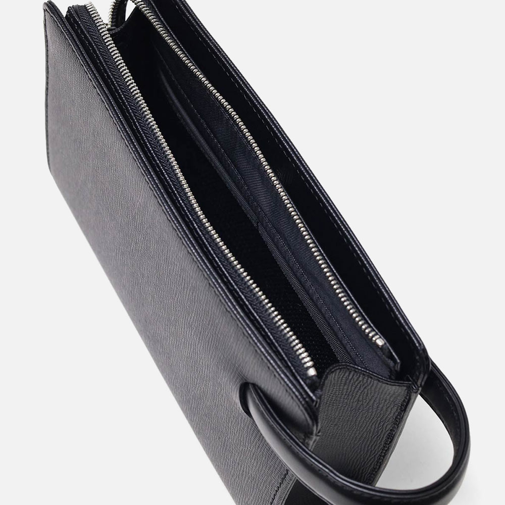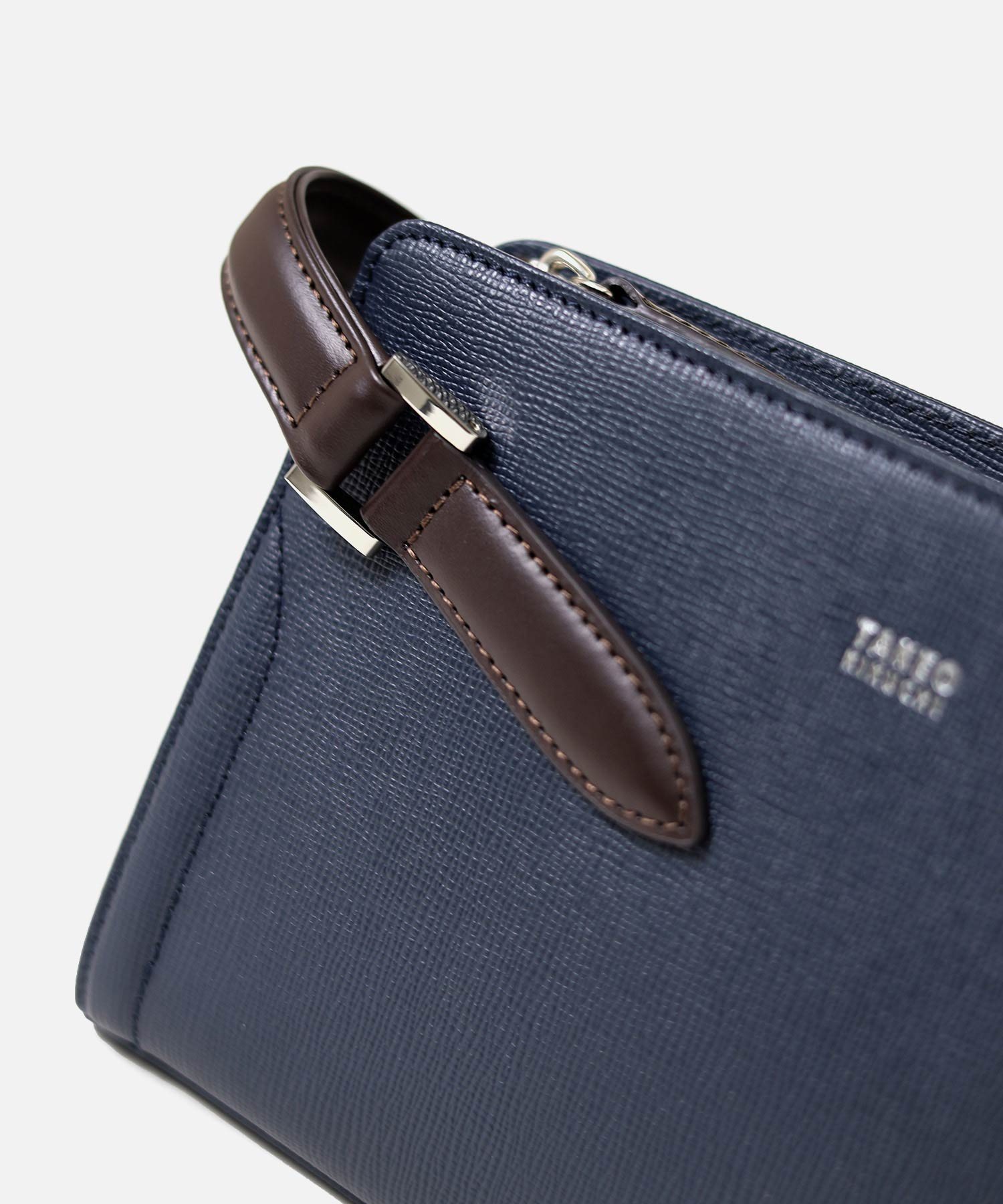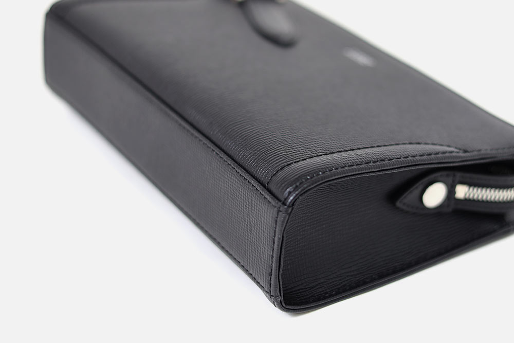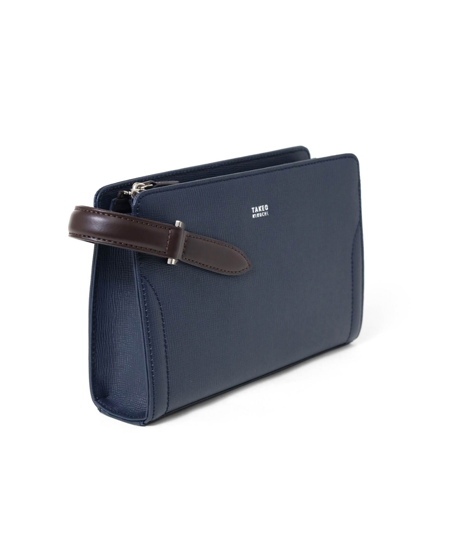 スーツスタイルにぴったりはまる、タケオキクチのスモールサイズのレザーメンズバッグ。品のあるレザー使いが、フォーマルなスーツスタイルと相性抜群。冠婚葬祭のシーンにも持てるシンプルなデザインのメンズバッグです。