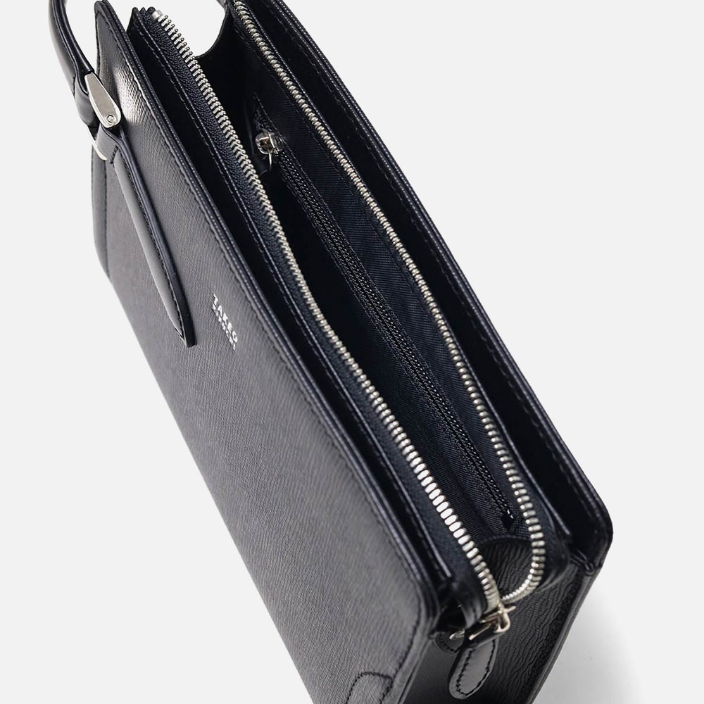 スモールサイズのメンズバッグはコンパクトながらも収納力抜群。長財布もきちんと収まるサイズ感です。内装にはファスナーポケット、オープンポケットが2つあります。前面側にはメンズバッグでは珍しいあおりポケットがついた機能的な鞄です。マグネット付きでスマートフォン等取り出し頻度の高いアイテムの収納に便利です。