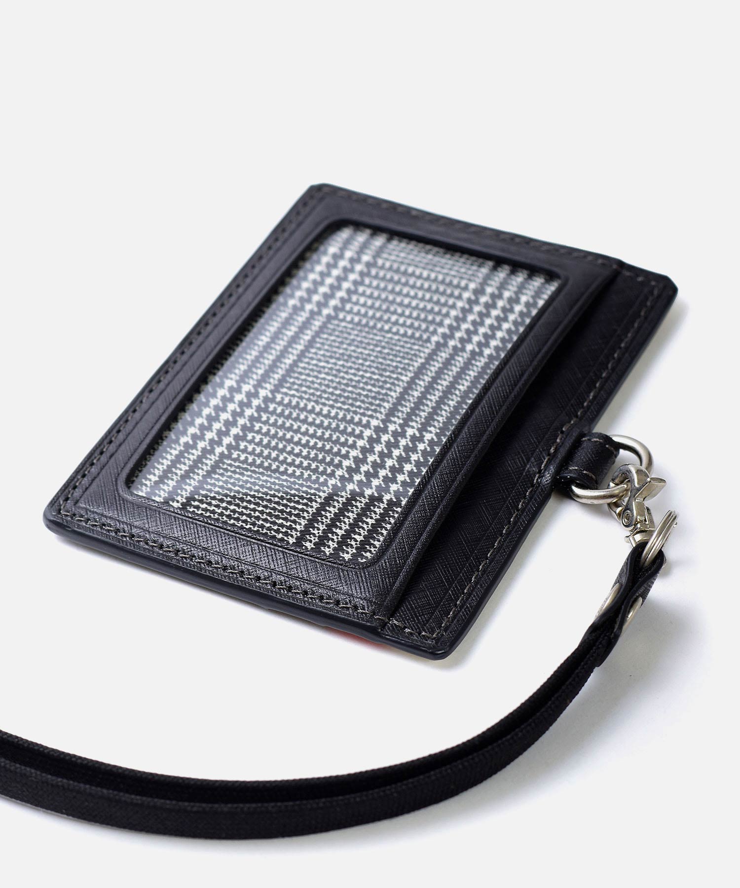 外装のベーシックカラーと、内装のトリコロールカラーのギャップが魅力の、小銭入れにもなるTAKEO KIKUCHIのIDカードホルダー。目の細かいシャープな格子柄が特徴的です。一部にブランドアイコンの柄であるグレンチェック柄の生地を採用しており、ベーシックながらもさりげなくブランドらしさを表現しています。