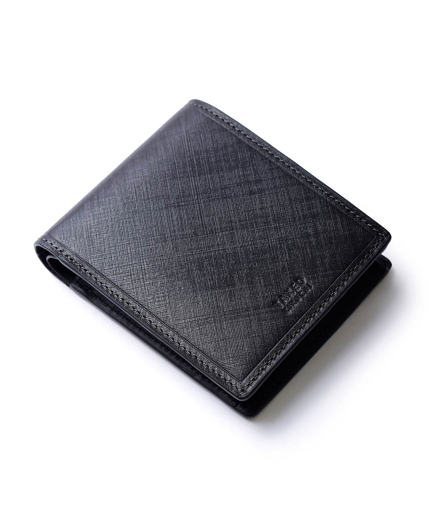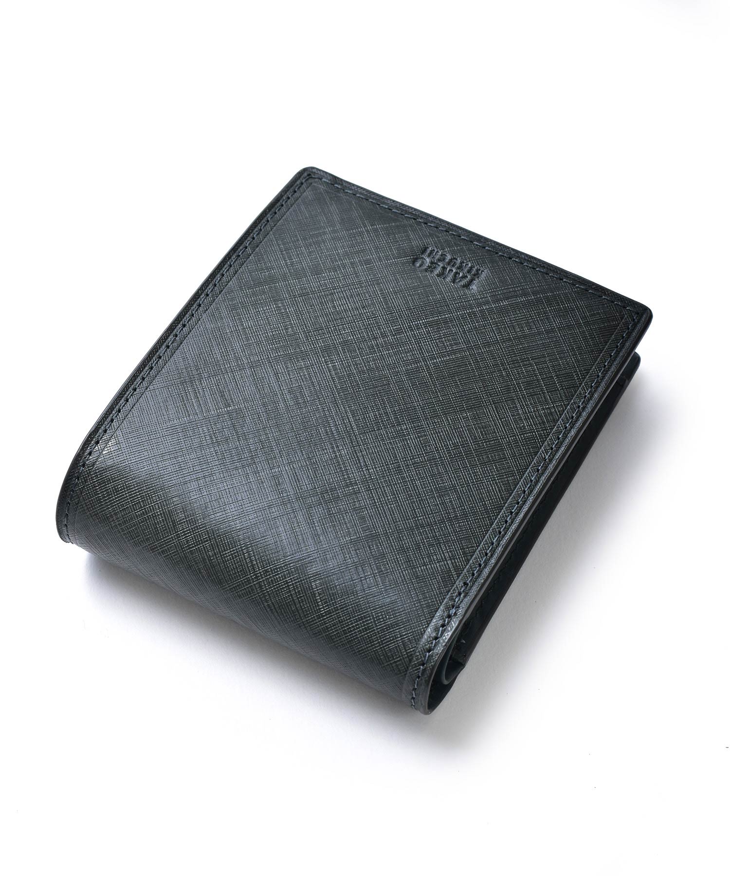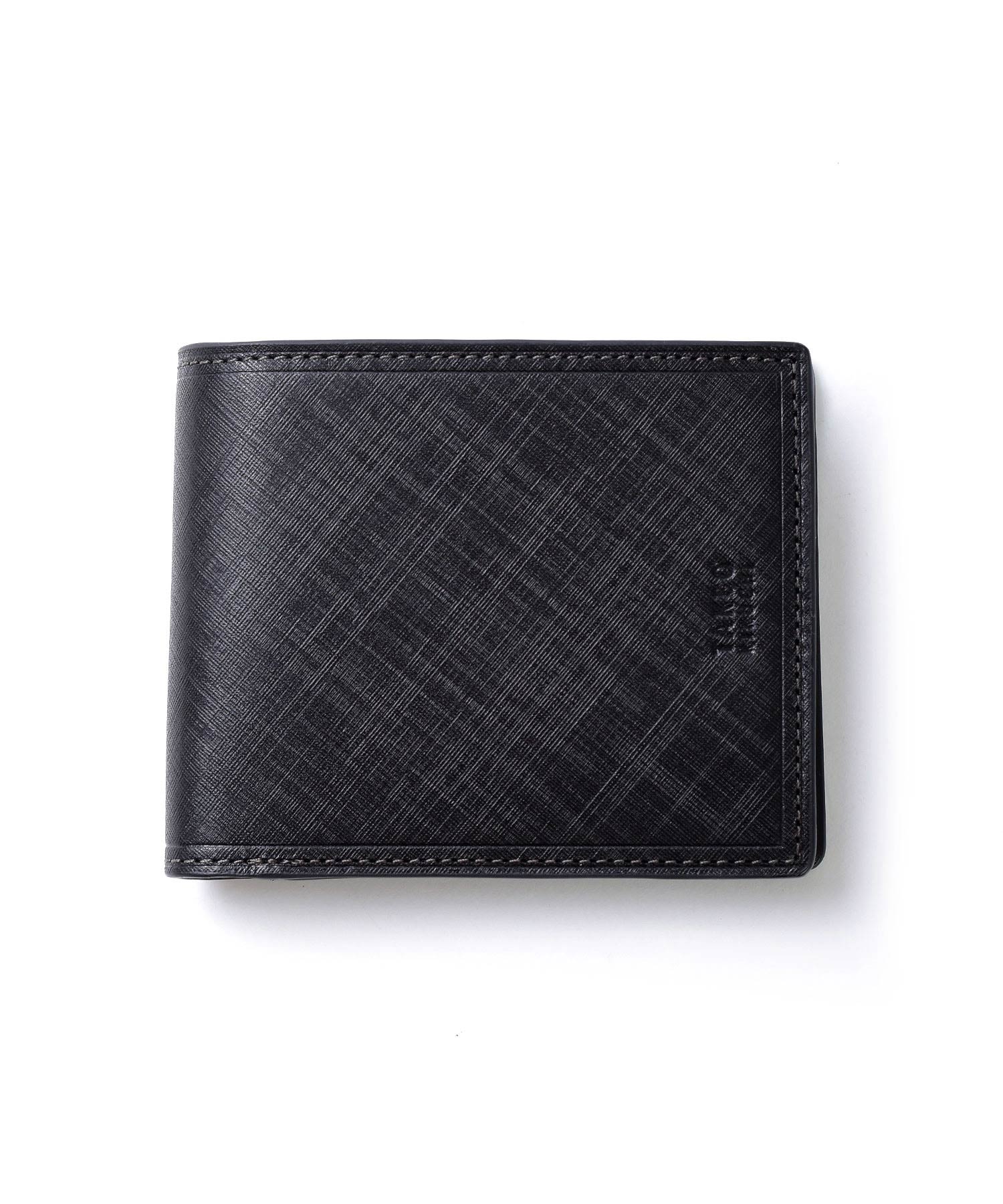 イタリアンインポートのエンボスレザーを使用した、タケオキクチの二つ折り財布です。 100%のタンニンで鞣しを施しており、使いこむほどに色艶が深まるエイジングが楽しめます。