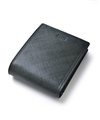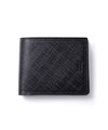 外装のベーシックカラーと、内装のトリコロールカラーのギャップが魅力の、小銭入れにもなるTAKEO KIKUCHIの二つ折り財布。目の細かいシャープな格子柄が特徴的です。一部にブランドアイコンの柄であるグレンチェック柄の生地を採用しており、ベーシックながらもさりげなくブランドらしさを表現しています。
