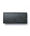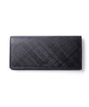 外装のベーシックカラーと、内装のトリコロールカラーのギャップが魅力の、小銭入れにもなるTAKEO KIKUCHIの長財布。目の細かいシャープな格子柄が特徴的です。一部にブランドアイコンの柄であるグレンチェック柄の生地を採用しており、ベーシックながらもさりげなくブランドらしさを表現しています。