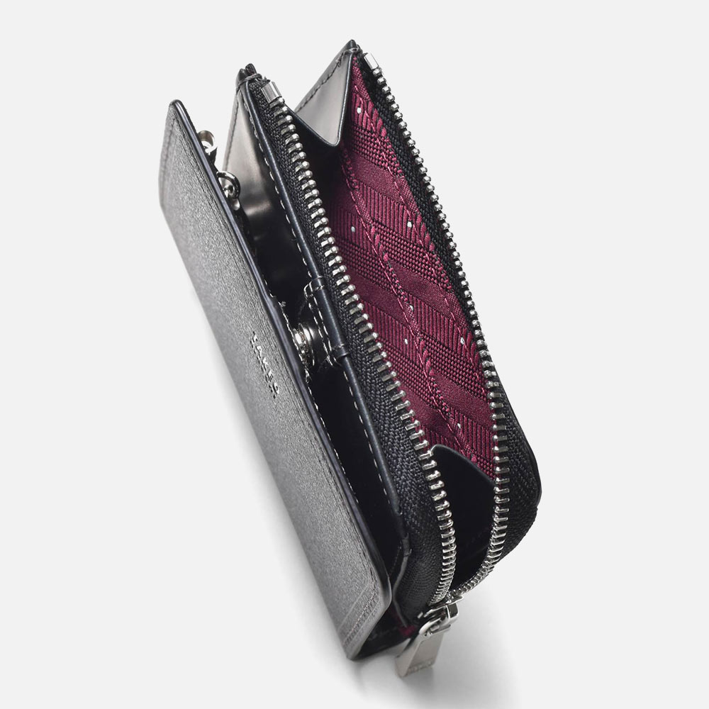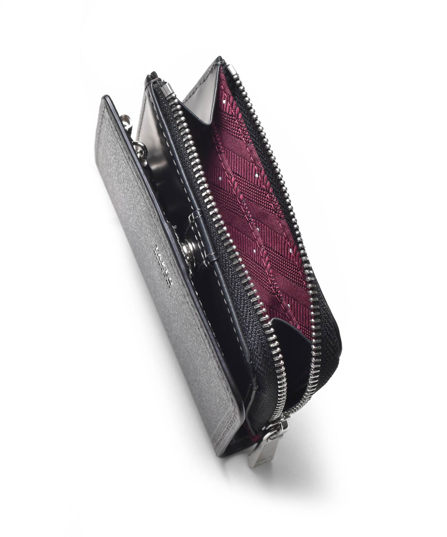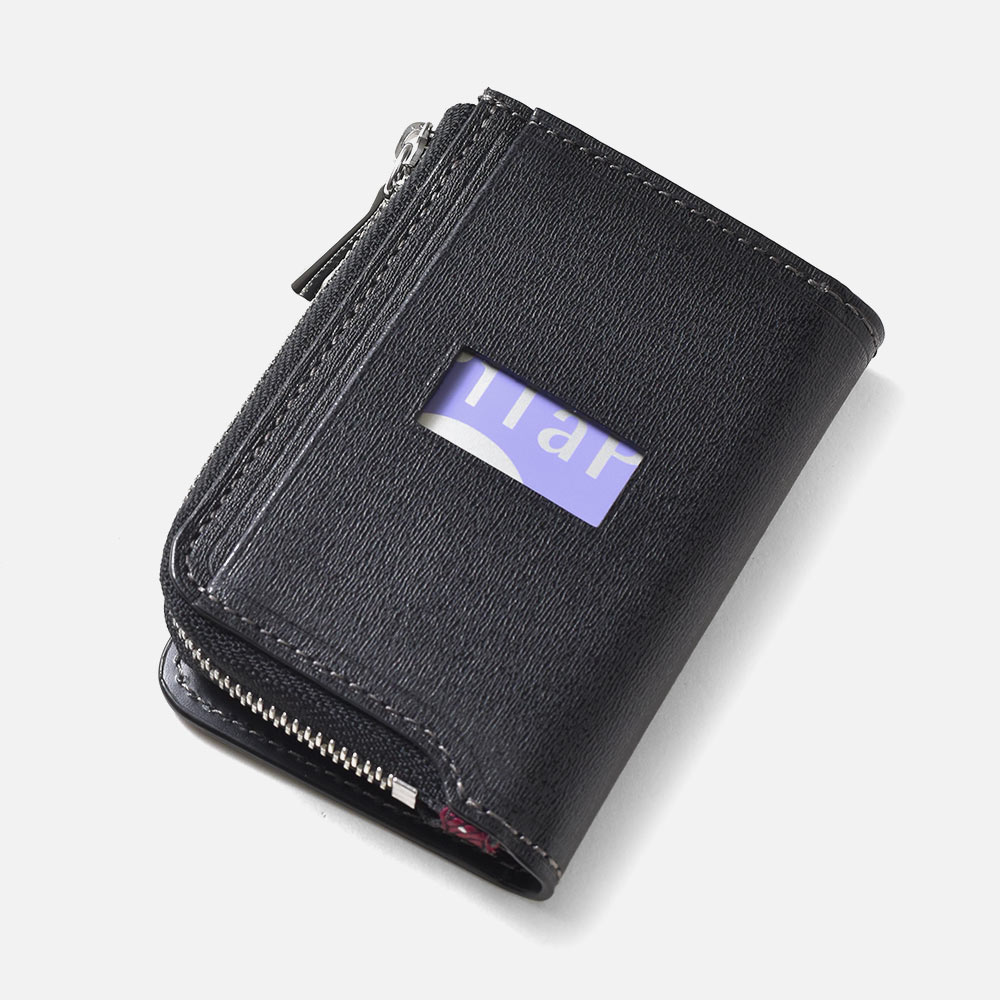 キーケース機能・小銭入れ機能・パスケース機能がそろった、キャッシュレス時代にも活躍する多機能な革小物です。キーリングが4つ、ファスナー小銭入れ、カードポケットを装備しています。小銭入れ内にはさらにポケットがついています。キーケースの背面側には、窓付きカードポケットがあります。