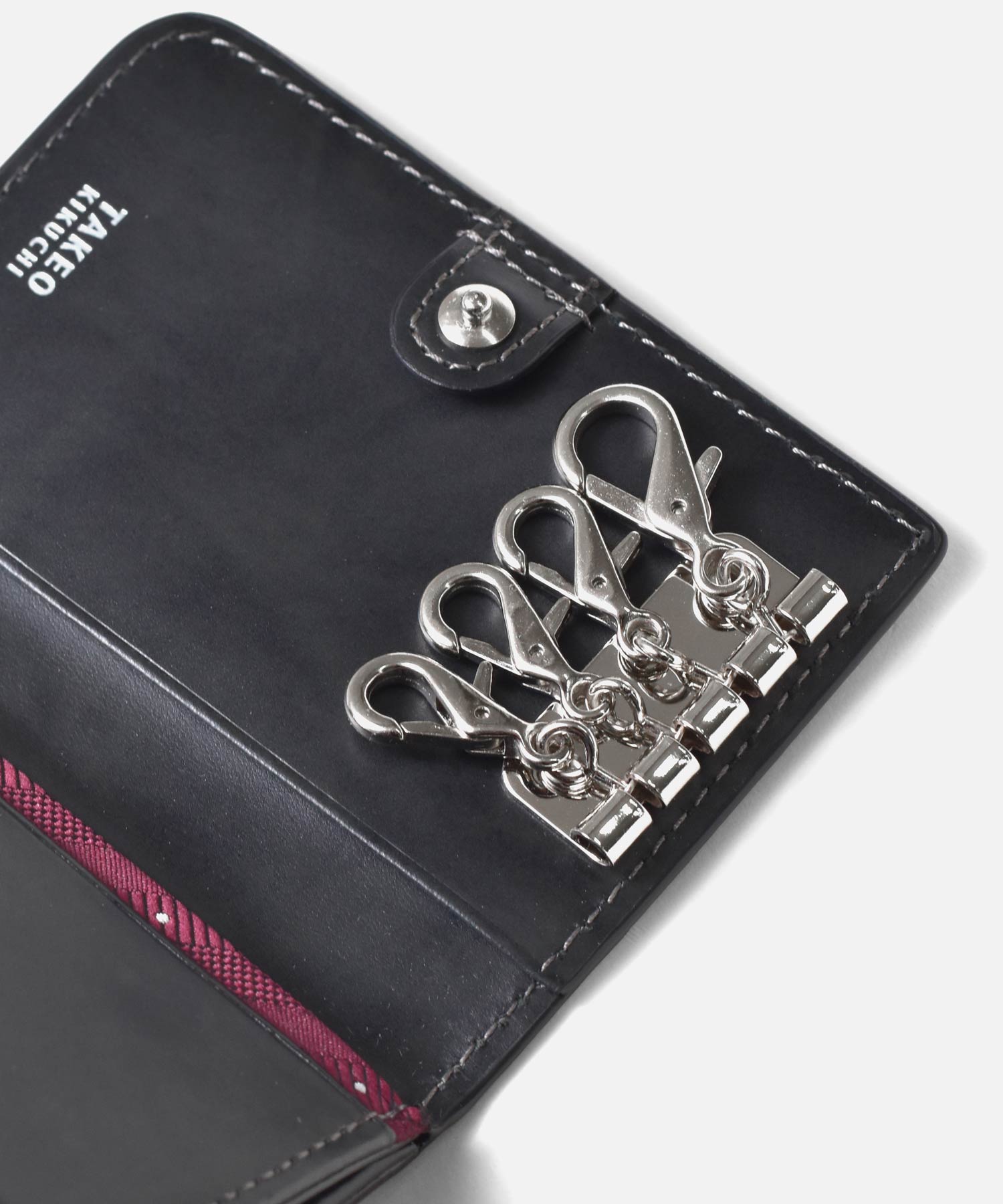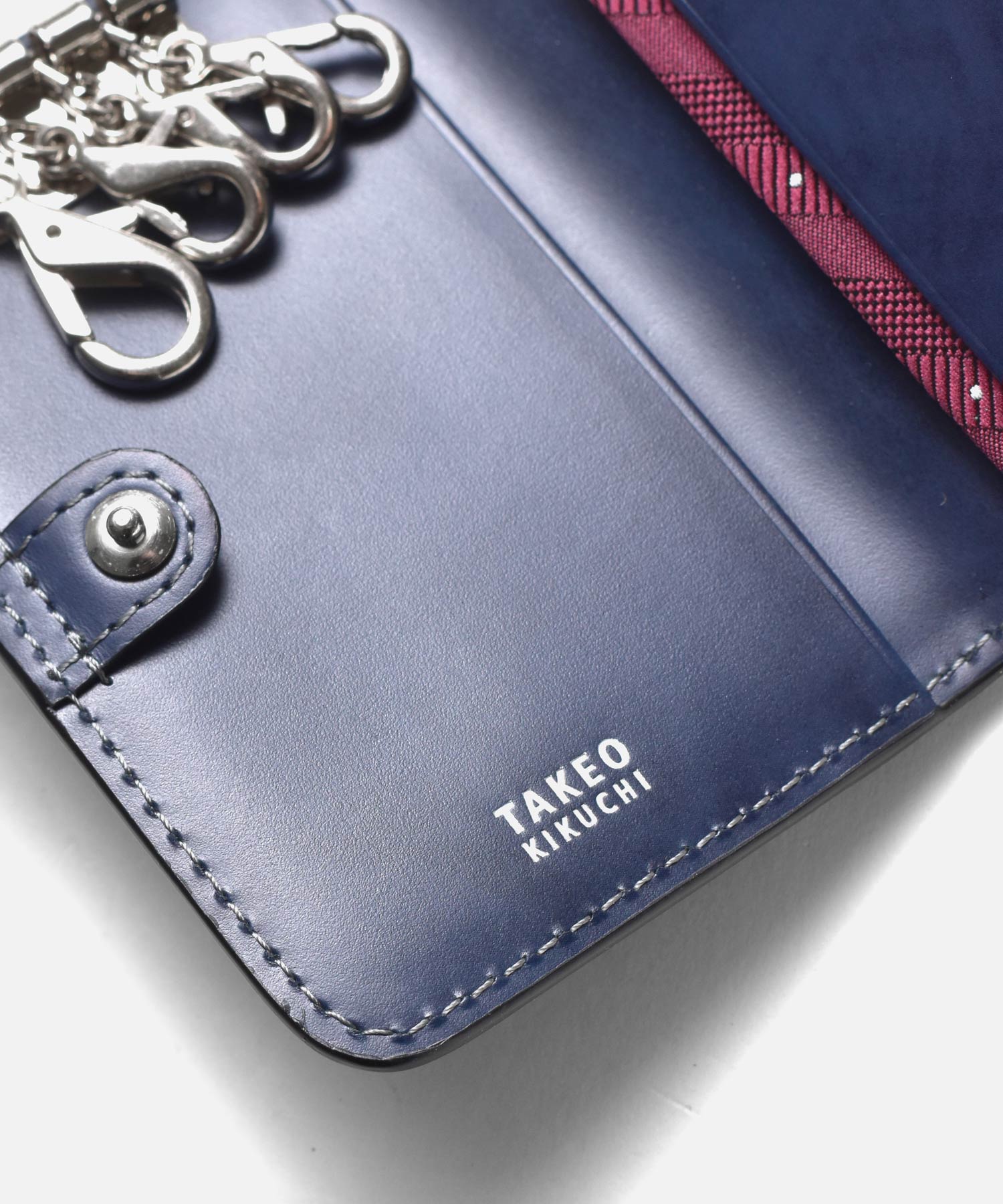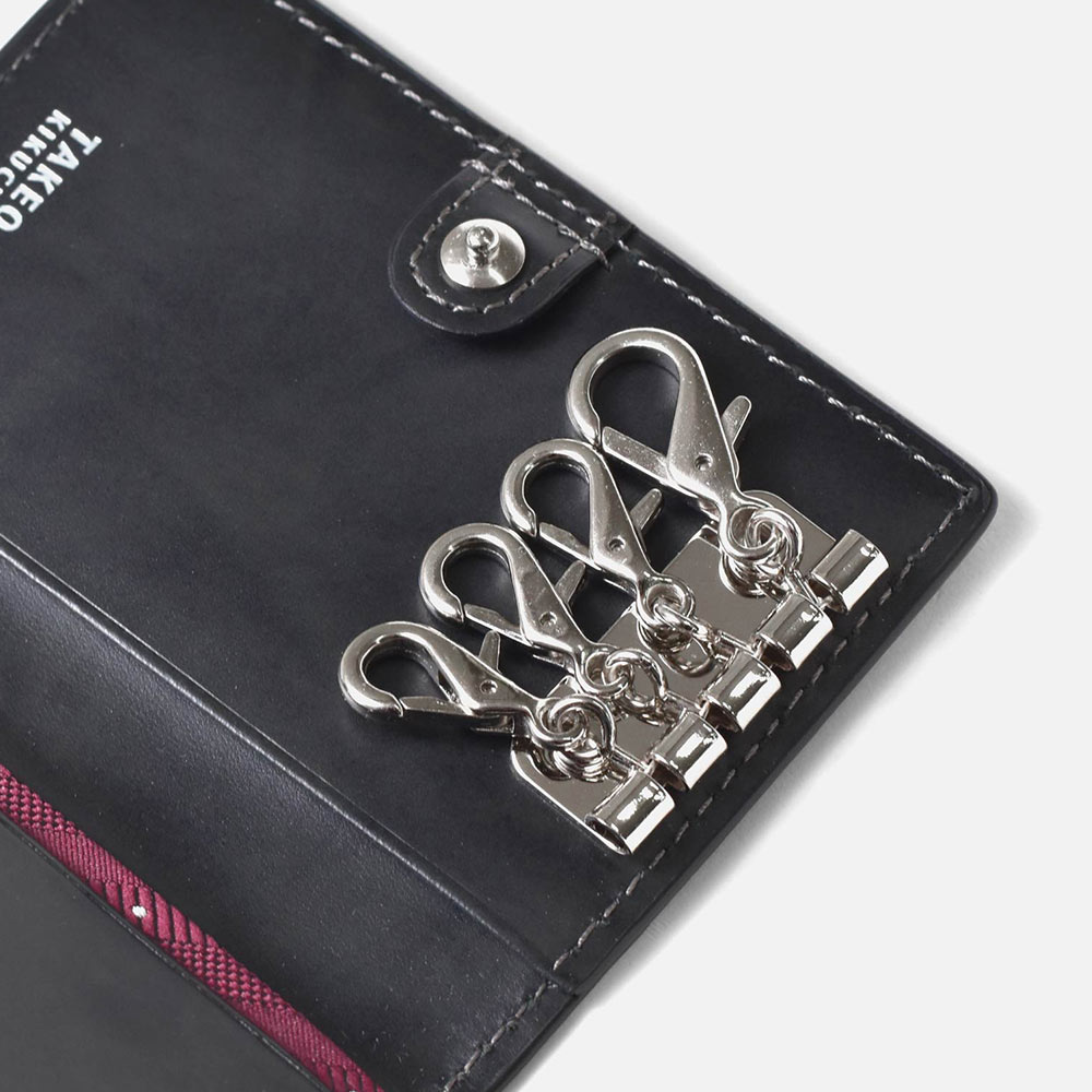 上質なイタリアンエンボスレザーを使用した、タケオキクチのキーケース。ファスナー小銭入れ、パスケース機能も付いた、キャッシュレス時代にも活躍する多機能な革小物です。