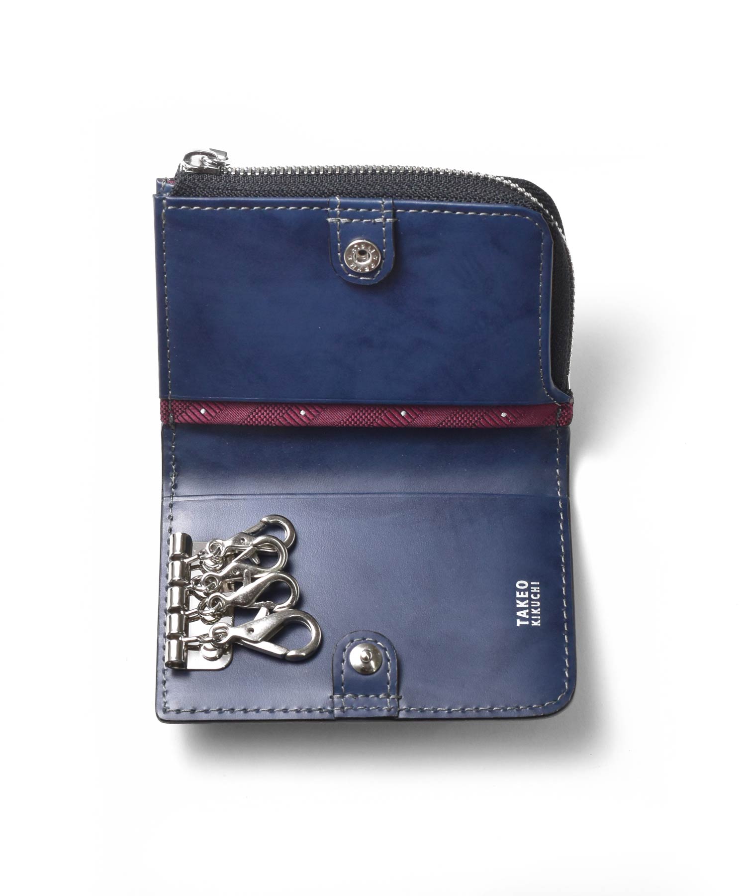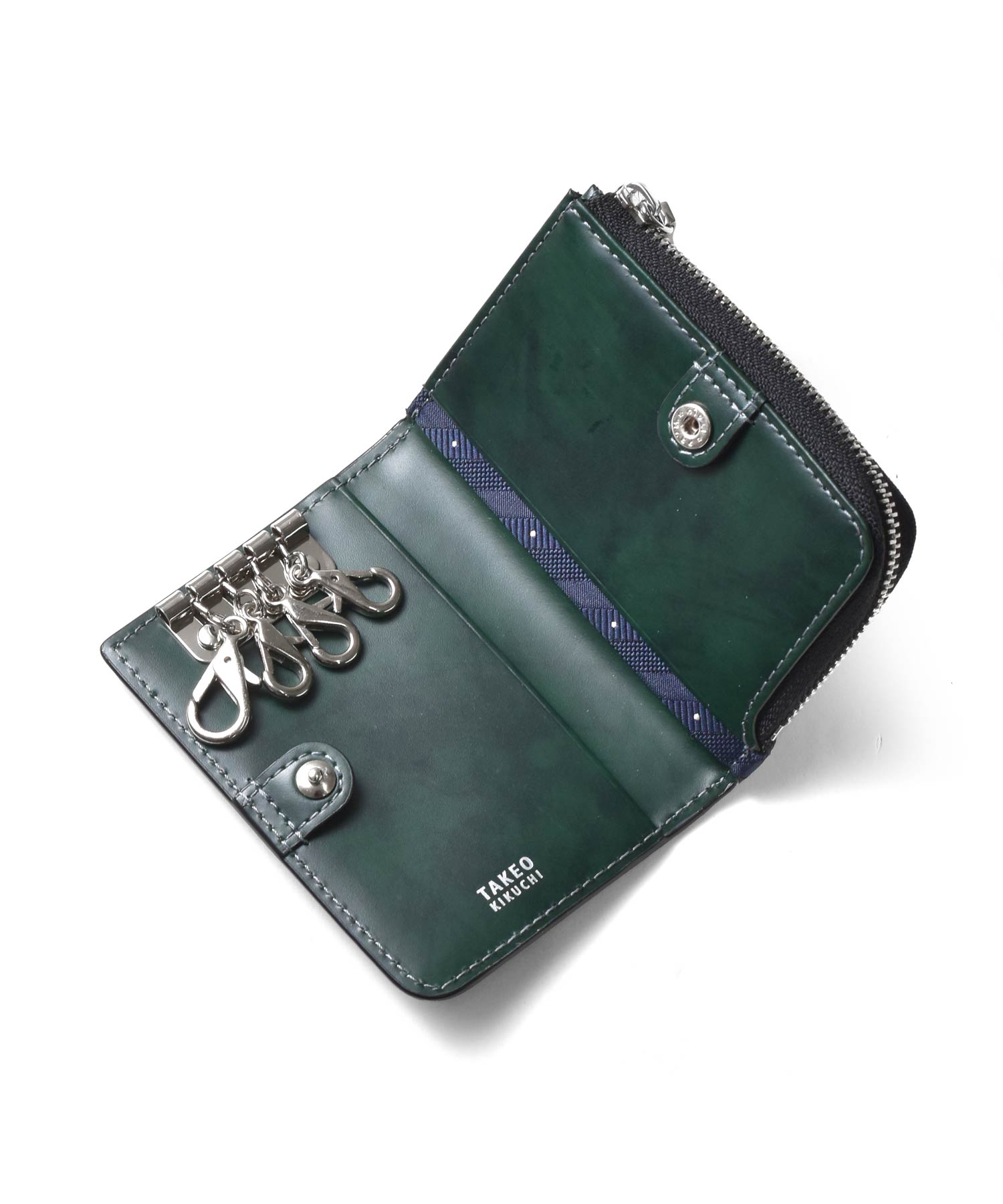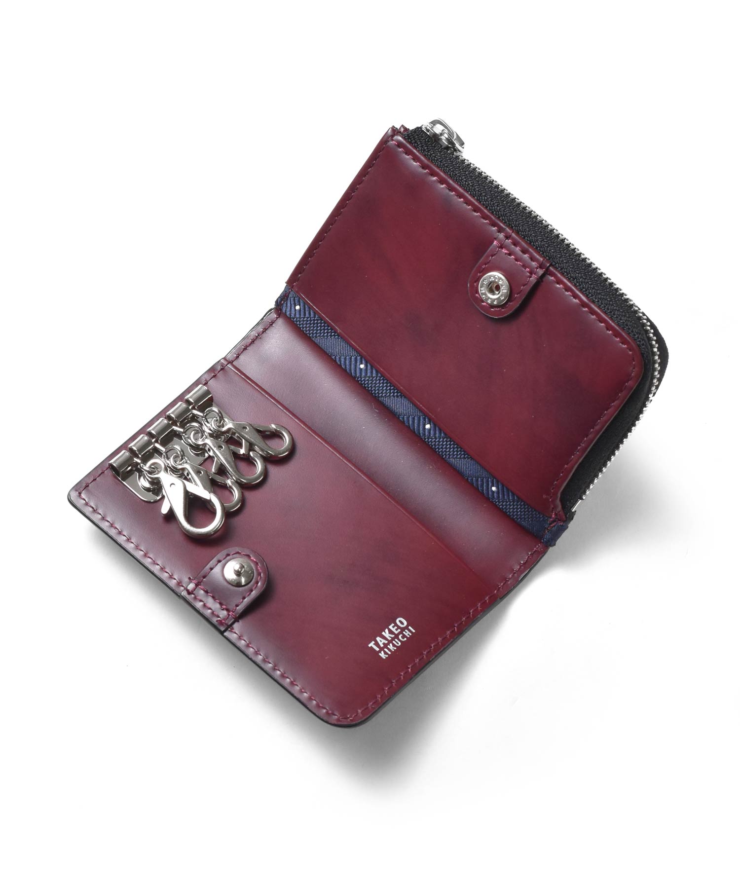 上質なイタリアンエンボスレザーを使用した、タケオキクチのキーケース。ファスナー小銭入れ、パスケース機能も付いた、キャッシュレス時代にも活躍する多機能な革小物です。