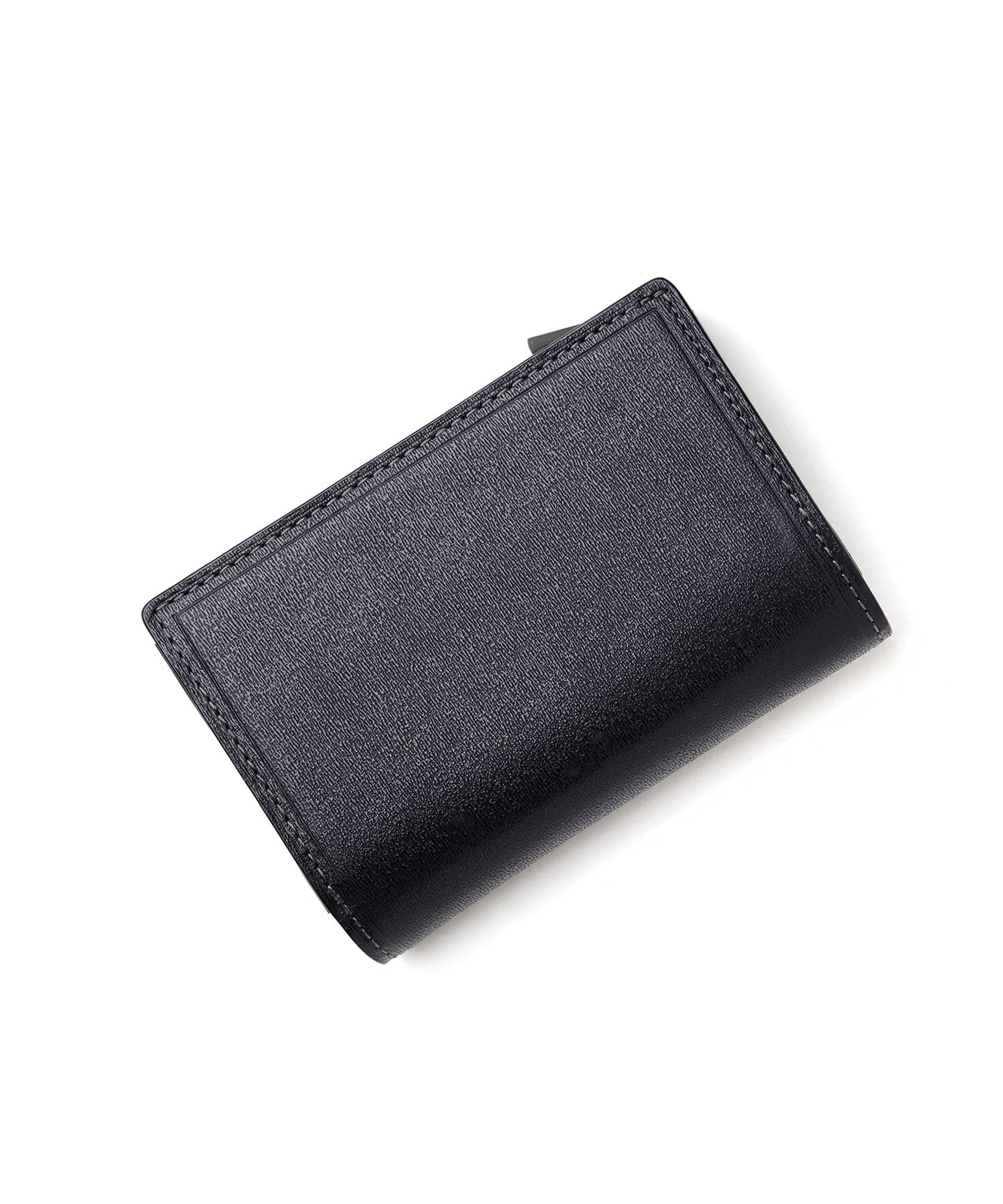 素材には、イタリアのサンタクローチェ地方の名門タンナー「オーバーロード社」のミズシボ調のエンボスレザー「マックス」を使用しています。一般的には型押しレザーは硬くなりがちですが、「マックス」はニュージーランド原皮にタンナー独自のクロム鞣しを施すことで、柔軟性をプラス。もっちりとした風合い、そして柔軟性に優れた仕上がりになっています。内側には繊細なムラ感が特徴のキップ調スムースレザーを使用し、素材コンビネーションを活かしたトーントーンでの落ち着いた配色となっています。ブランドロゴは独立したメタルパーツで、シャープで繊細、そして上品なテイストです。