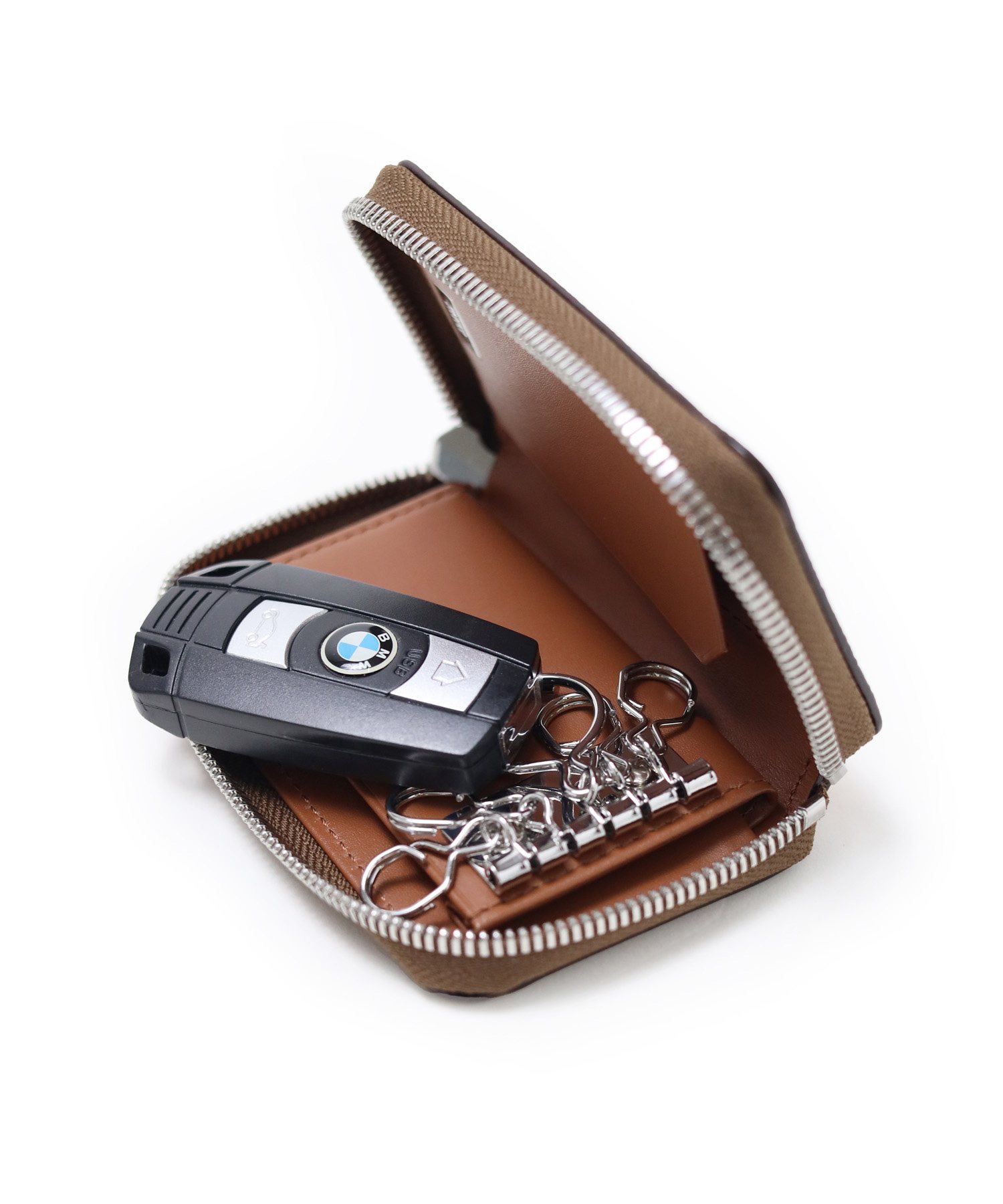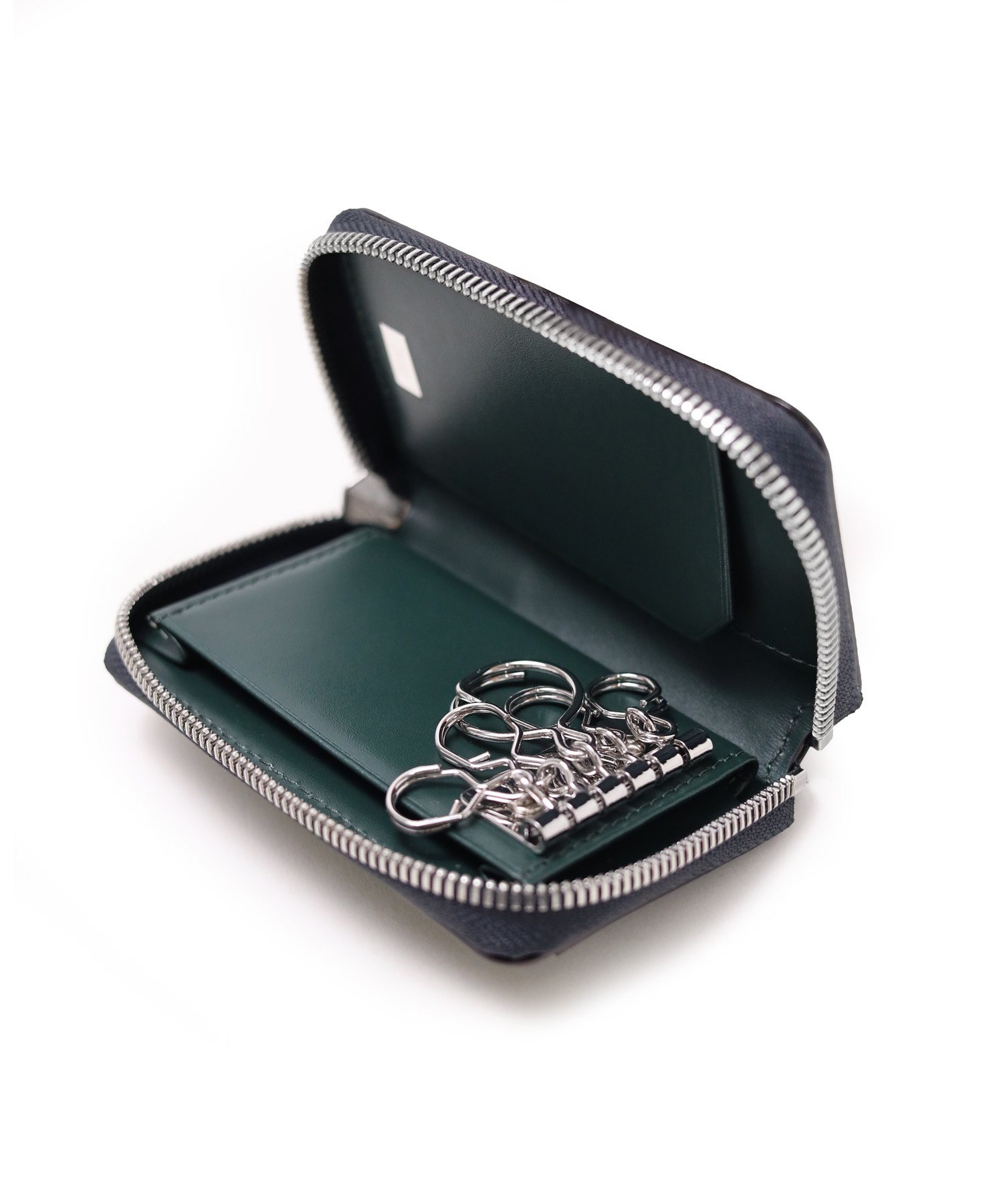 英国ロイヤルワラントを所持する老舗ブランドで使用される、エレガントで上品なエンボス加工レザー「PANAMA/ パナマ」を使用したオフィスカジュアルテイストのパスケース兼用キーケース。