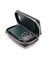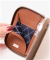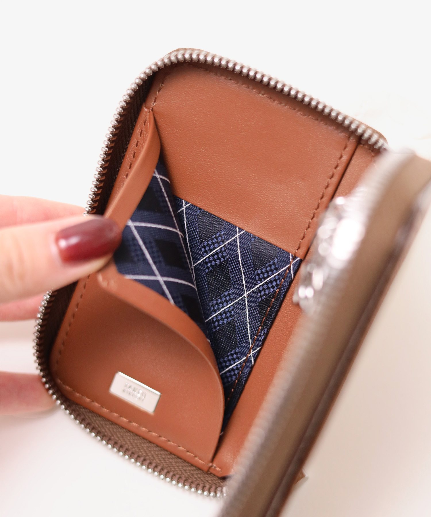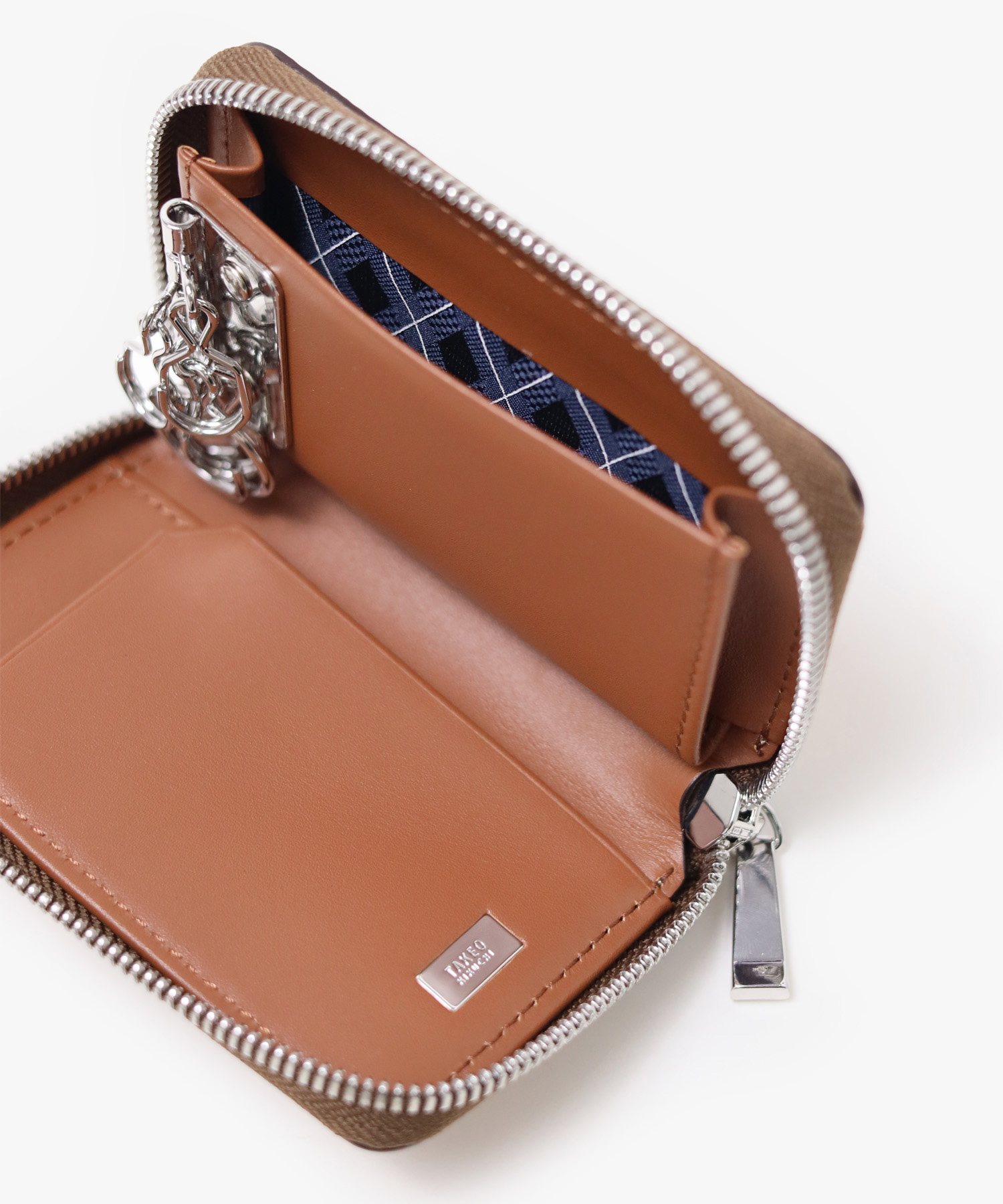 裏生地にはTAKEO KIKUCHIを象徴する、オリジナルで織ったアーガイル柄のネクタイ生地を用しております。ブローチで表現した上品な内装ネームや、カード段の形状もポイントです。