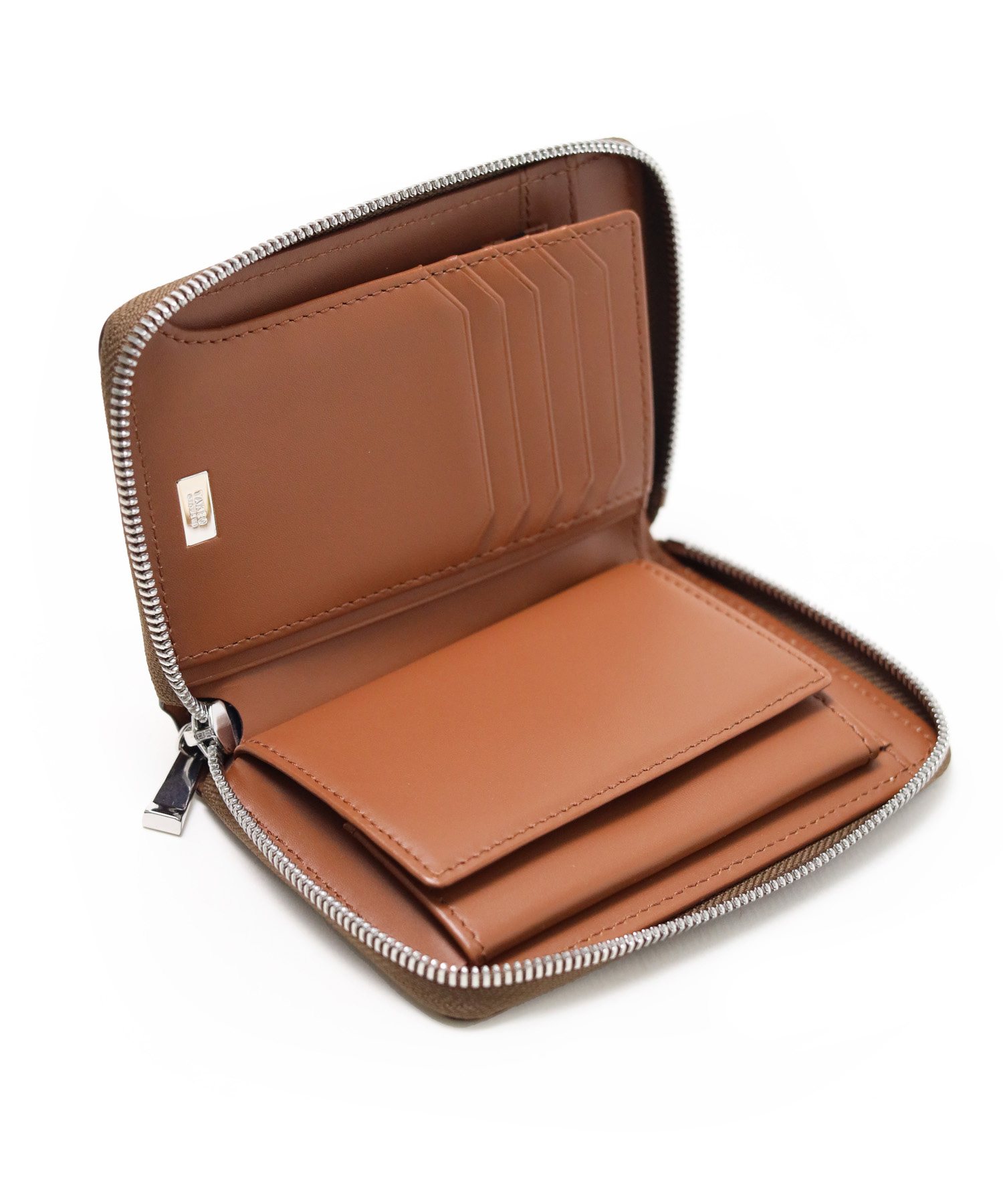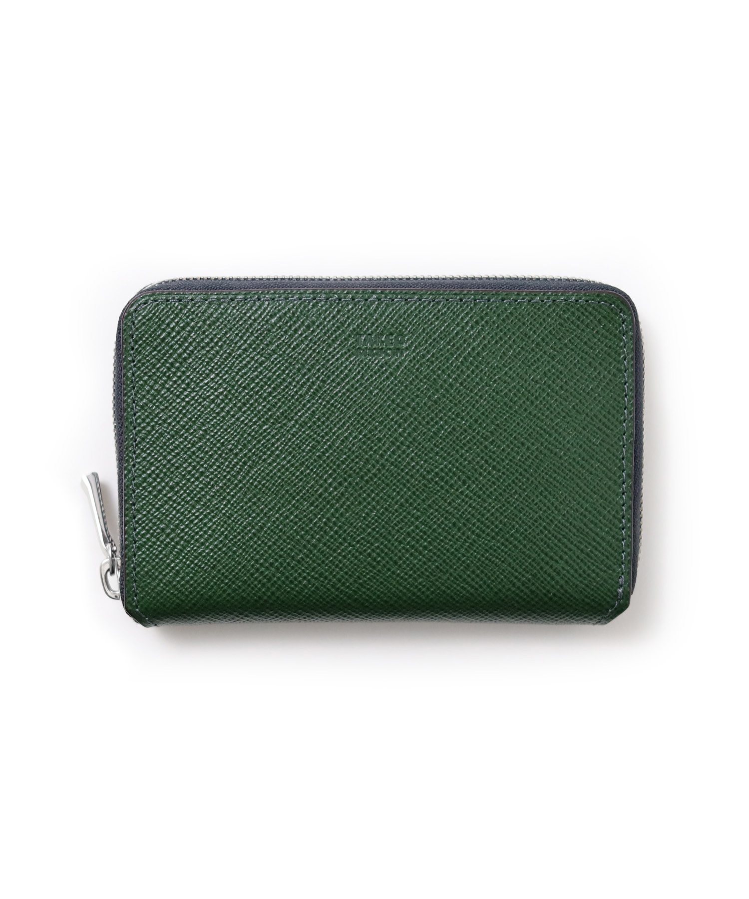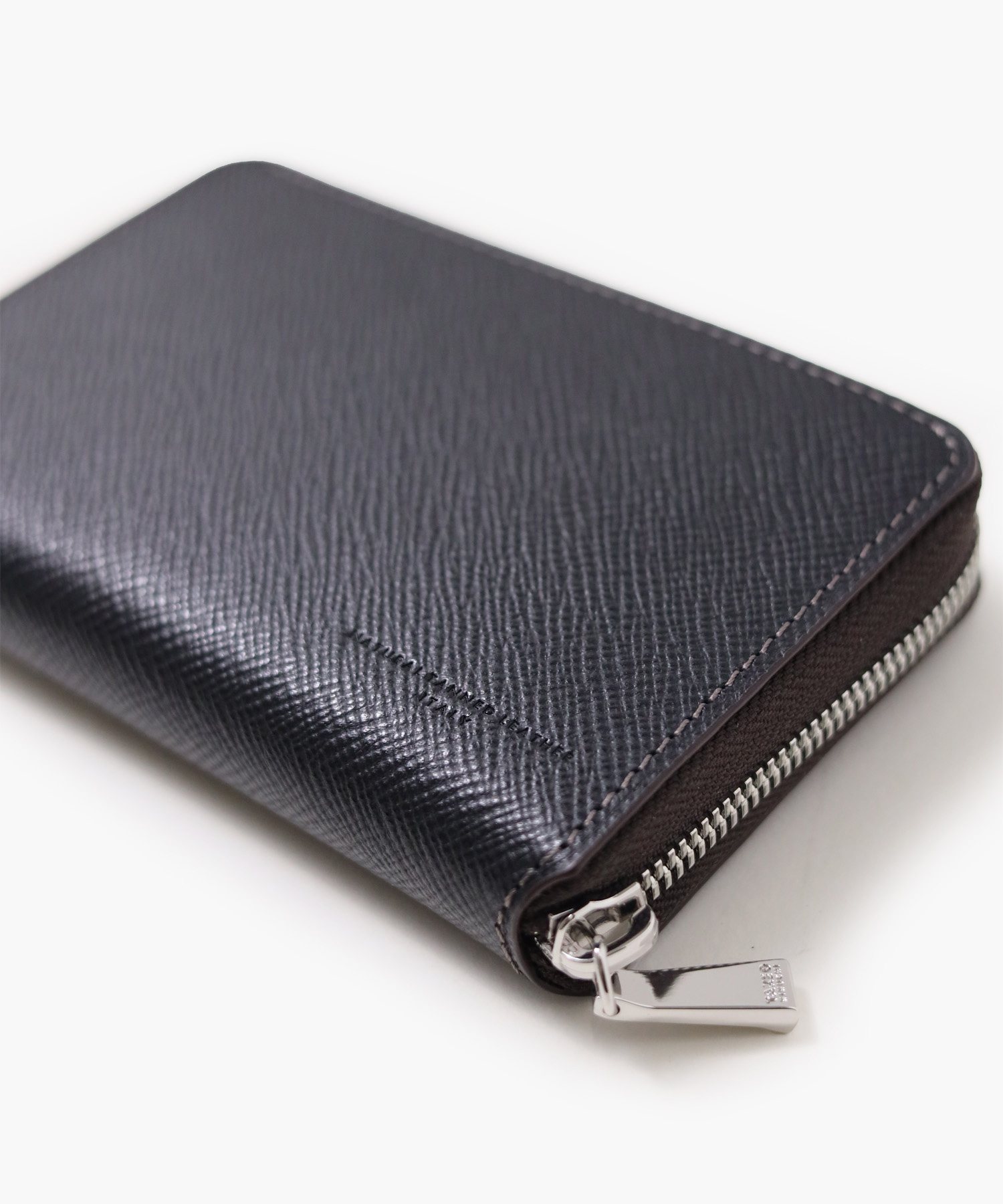 英国ロイヤルワラントを所持する老舗ブランドで使用される、エレガントで上品なエンボス加工レザー「PANAMA/ パナマ」を使用したオフィスカジュアルテイストの二つ折り財布。