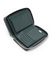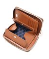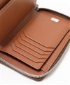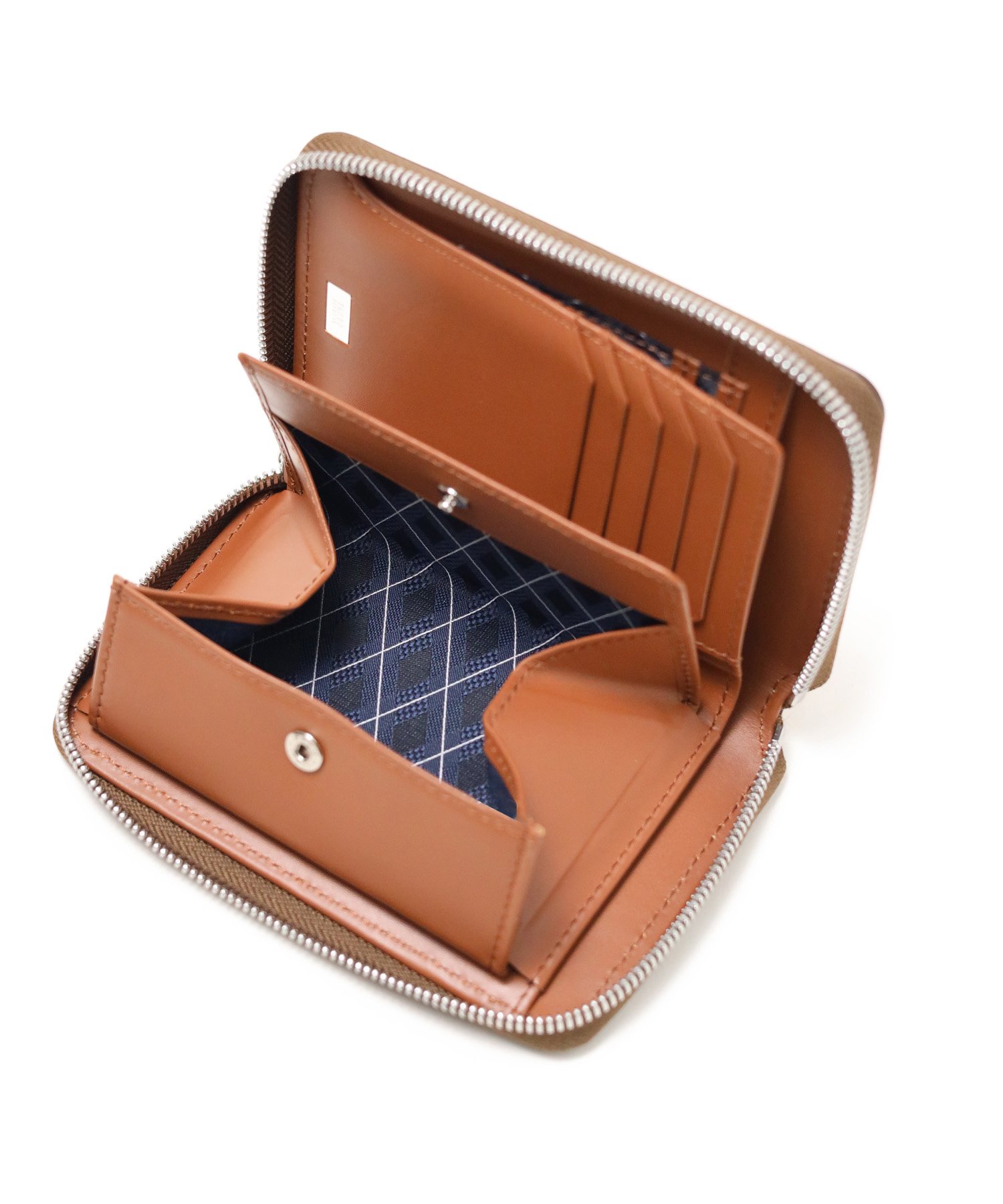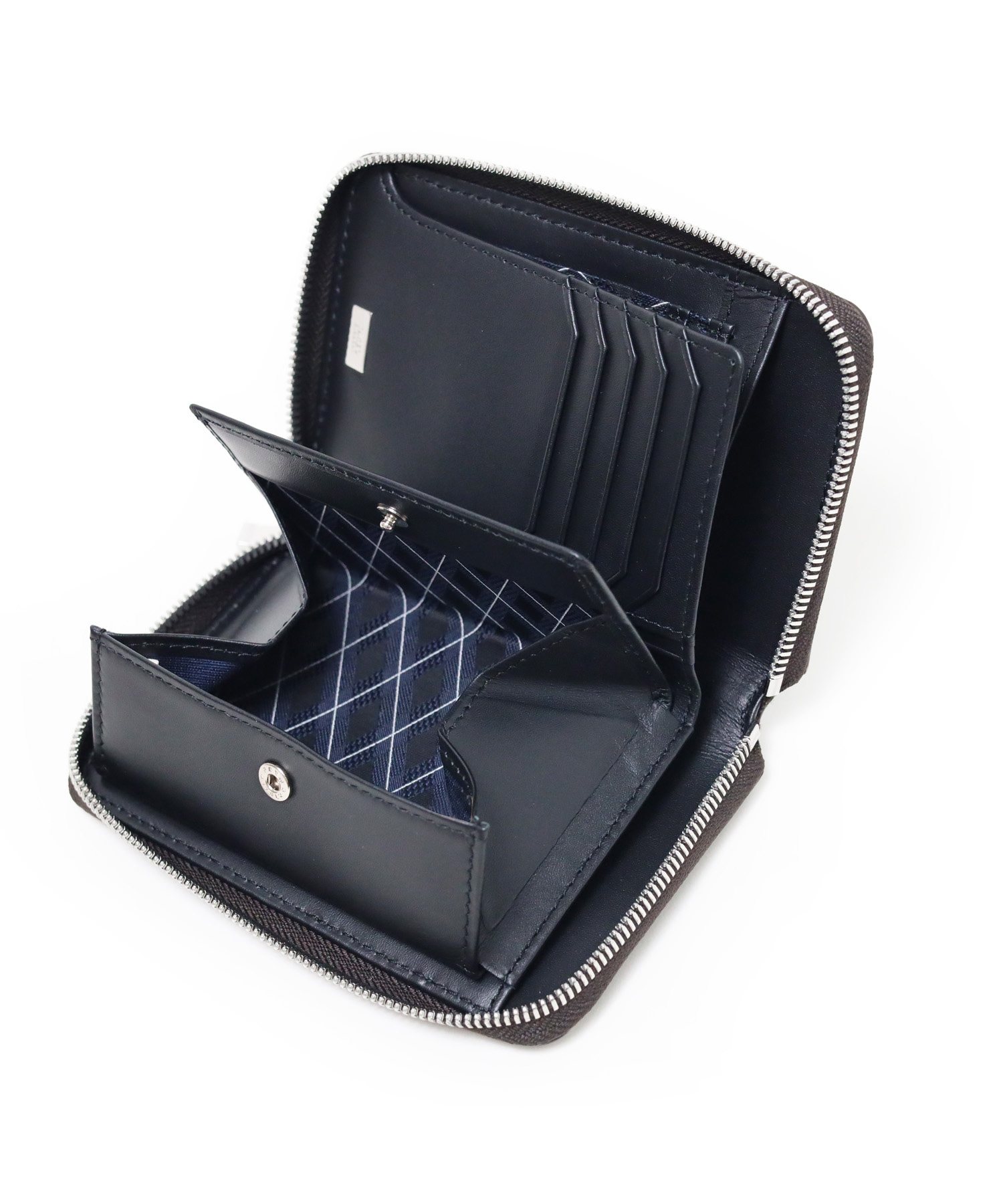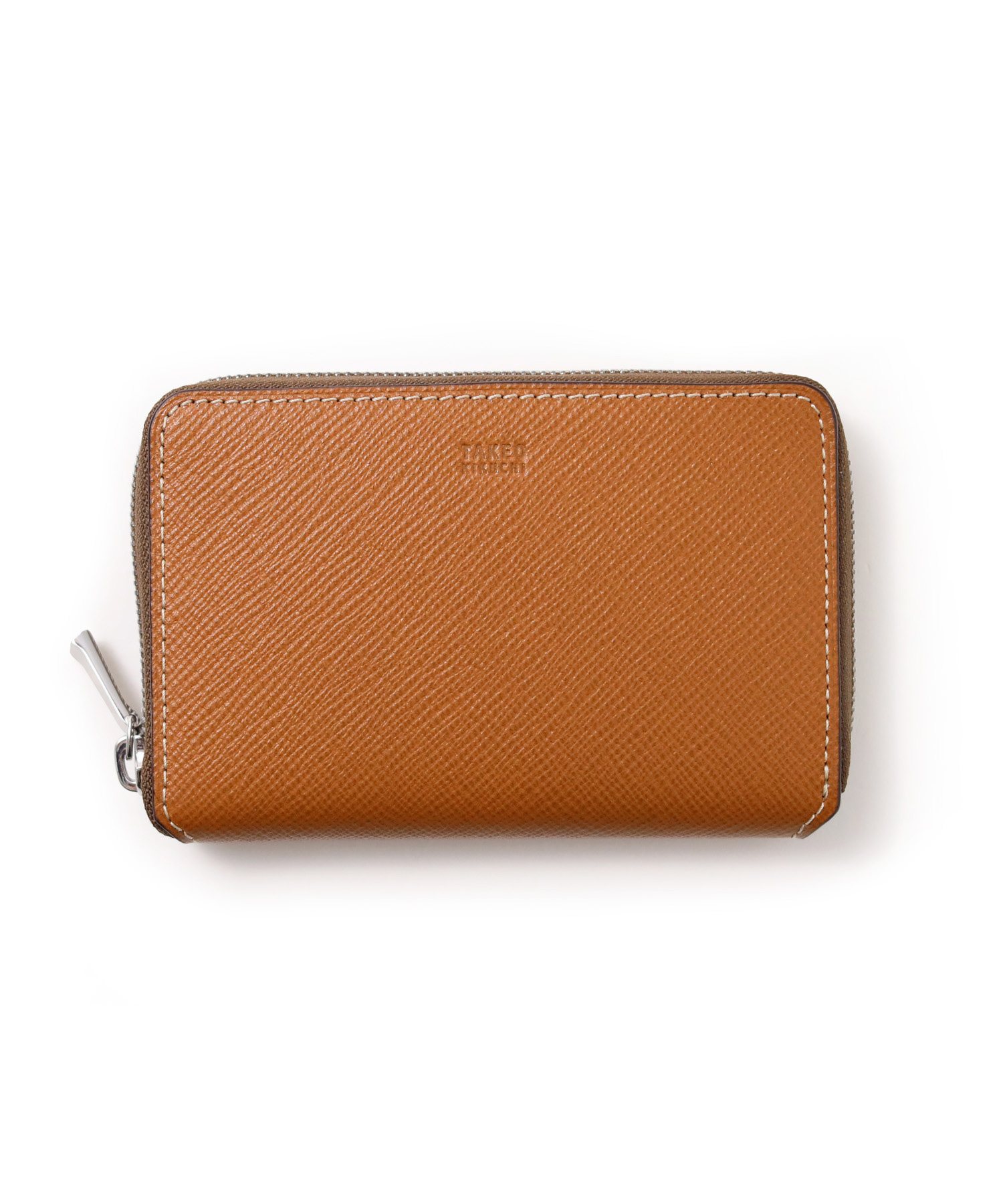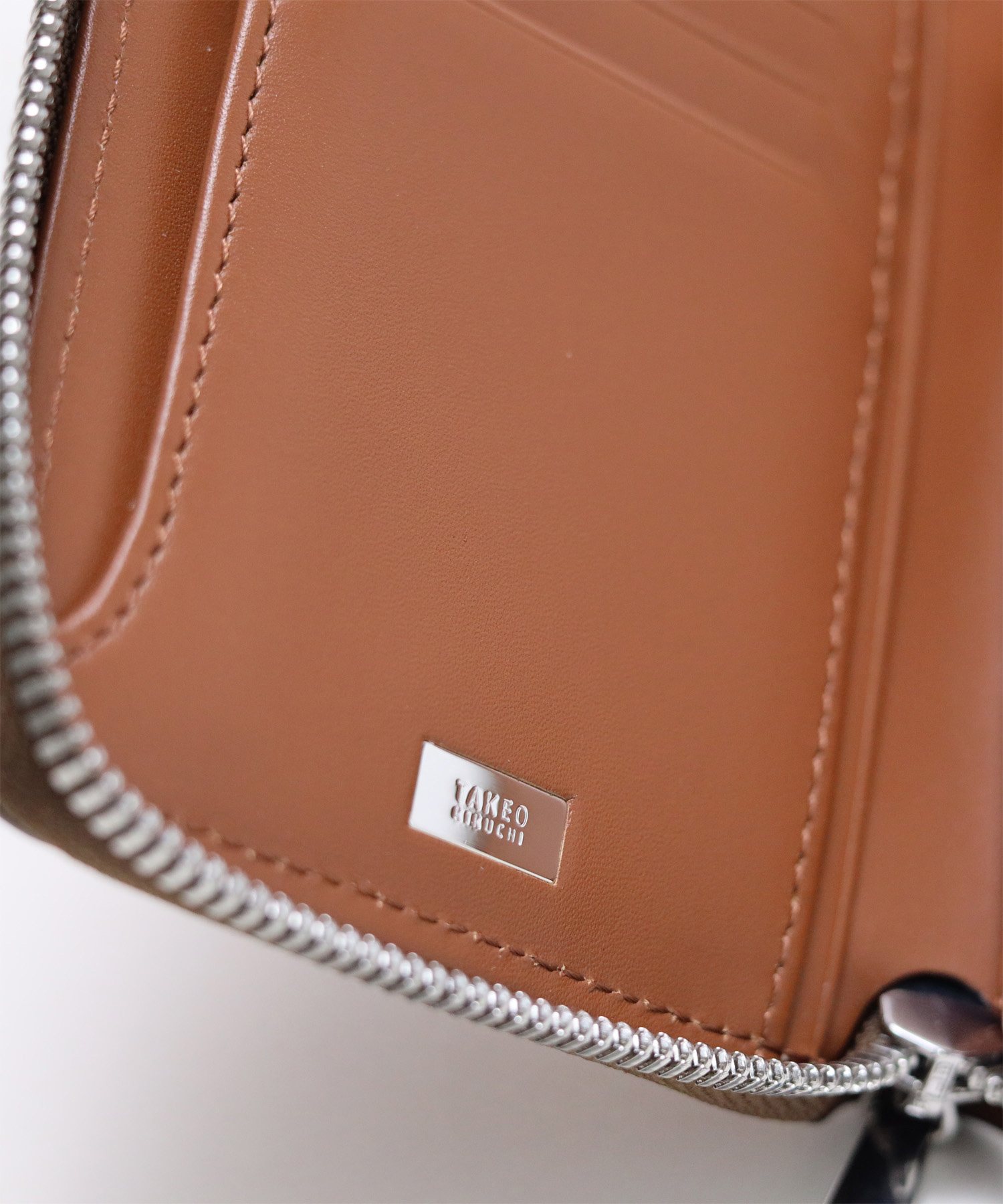 本体素材は、タンナー独自のエンボス加工を施した、ヨーロッパ産オーバーキップを使用。ロイヤルワラントを所持する老舗の英国王室御用達ブランドも使用する、エレガントで上質な素材「PANAMA/パナマ」になります。国内や他のタンナーでは表現できない独特の素材感で魅了します。裏生地にはTAKEO KIKUCHIを象徴する、オリジナルで織ったアーガイル柄のネクタイ生地を用しております。ブローチで表現した上品な内装ネームや、カード段の形状もポイントです。