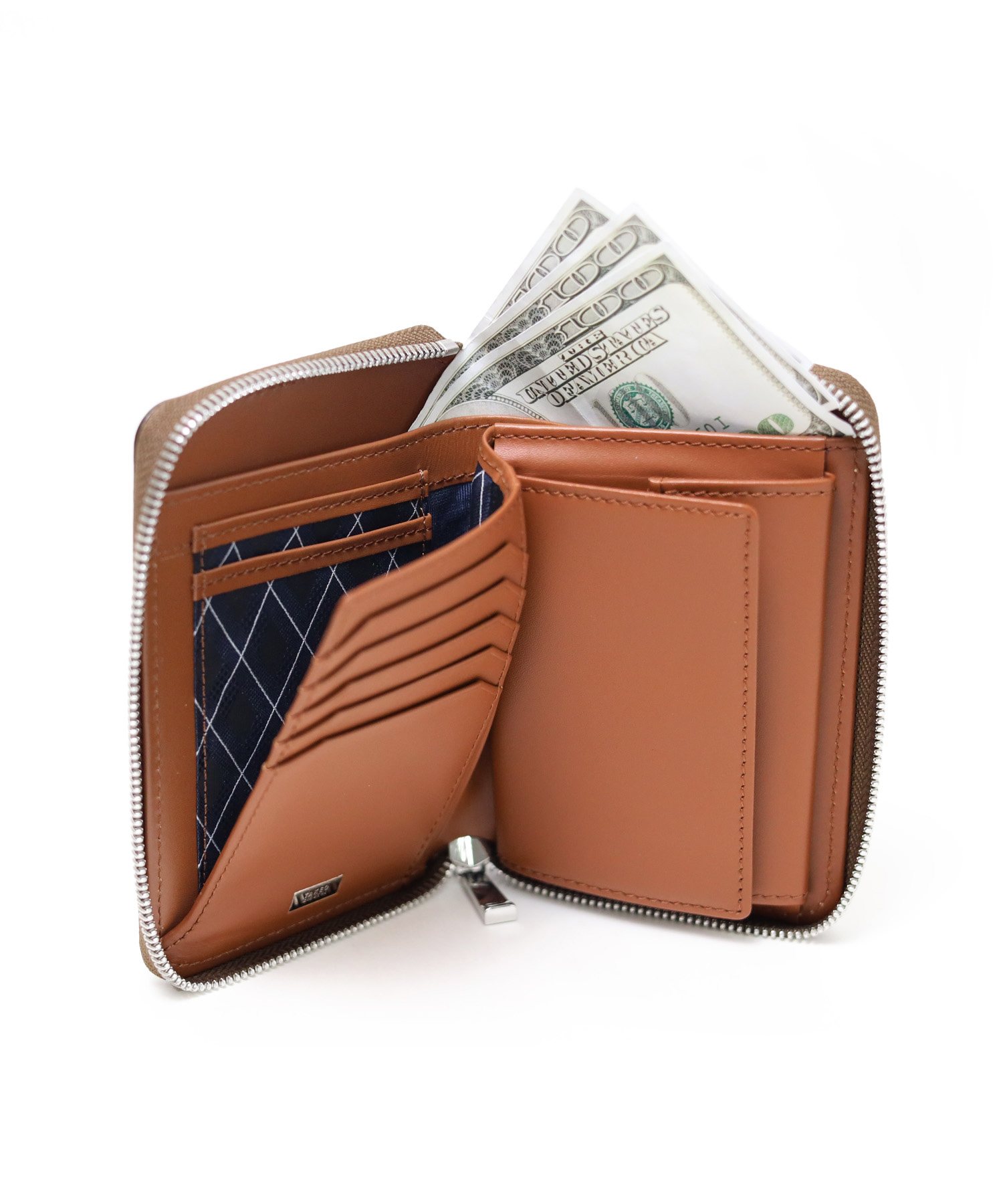 英国ロイヤルワラントを所持する老舗ブランドで使用される、エレガントで上品なエンボス加工レザー「PANAMA/ パナマ」を使用したオフィスカジュアルテイストの二つ折り財布。この財布は札入れ部に深さがあり、お札やレシートの収まりが良く、安心して収納できることが魅力です。上質なヨーロッパ原皮のキップをベースにして、タンナー独自のエンボス加工が繊細で上質な雰囲気を演出します。国内や他のタンナーでは表現できない気品高い素材感が魅力です。