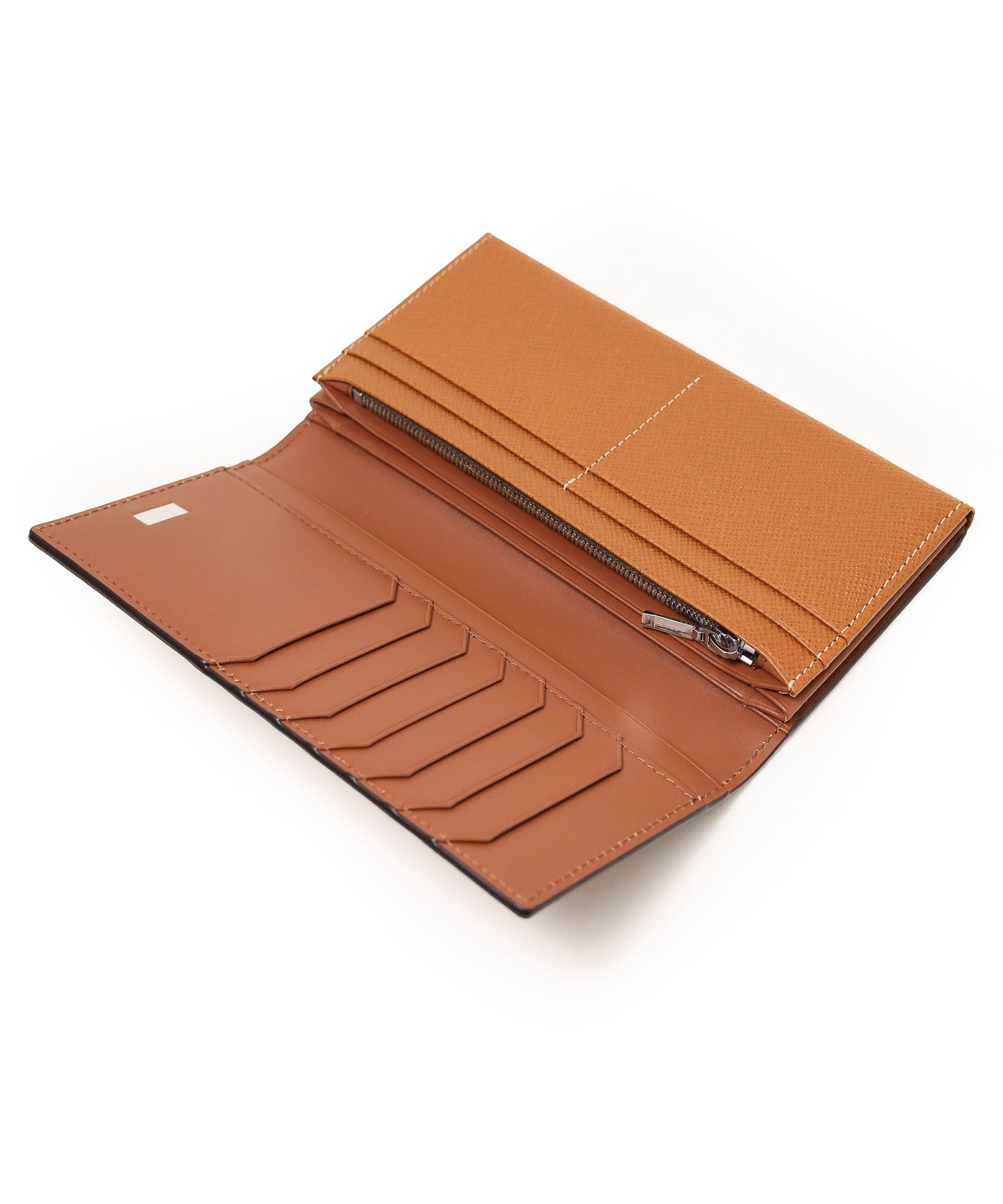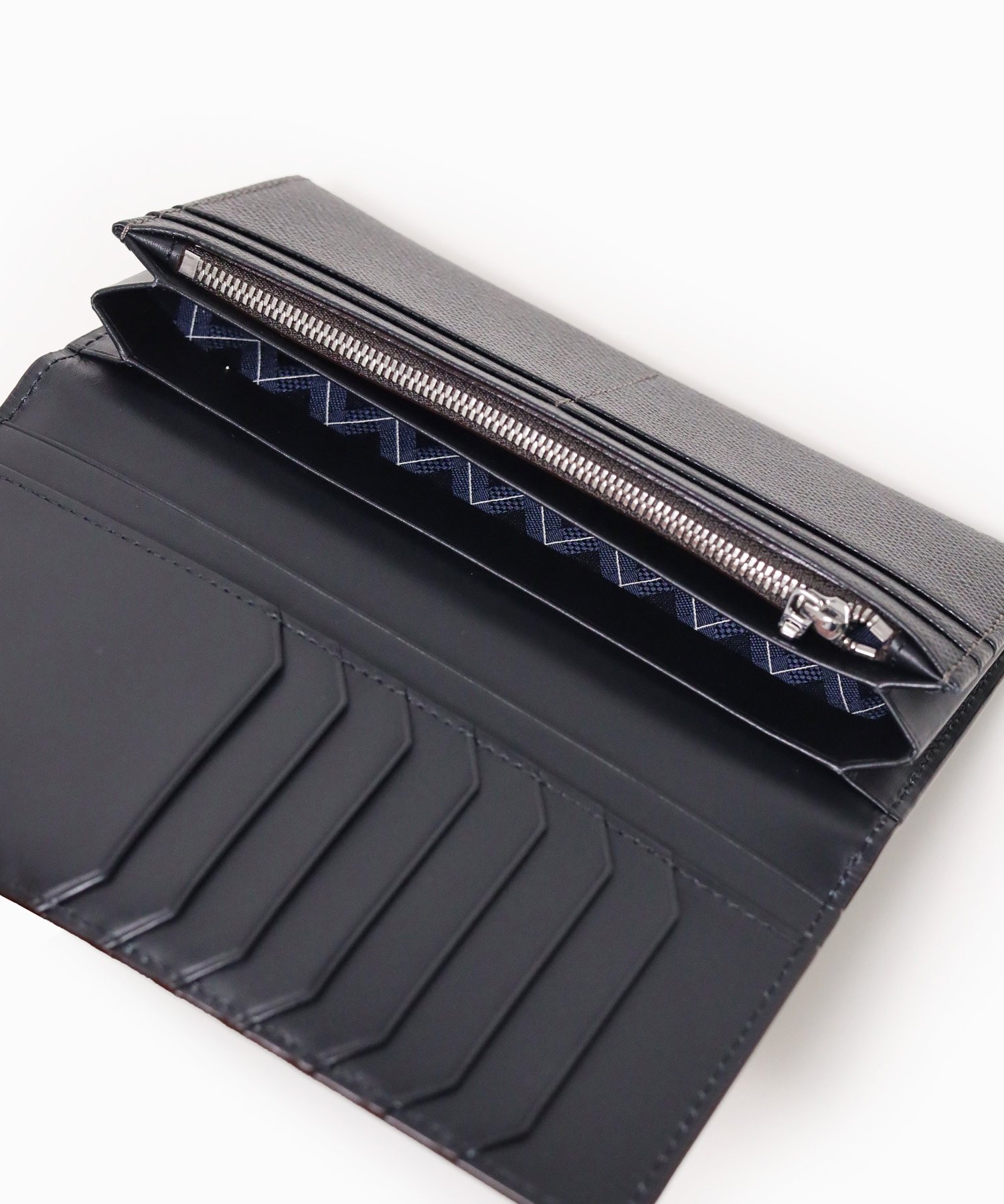 英国ロイヤルワラントを所持する老舗ブランドで使用される、エレガントで上品なエンボス加工レザー「PANAMA/ パナマ」を使用したオフィスカジュアルテイストの長財布。