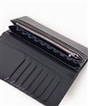 本体札入れ部分は、風琴マチを採用しており、薄いにも関わらず出し入れのしやすい作りとなっております。一般的なマチは、マチの部分を内側に折り込みます。一方、風琴マチは外側に折り込むため、マチが広がりやすくカードなどが引っ掛かることなく出し入れできます。また、マチが広がるおかげで一般的なマチよりもより多くのカードや紙幣を収納することができます。風琴マチを使用することでコンパクトながら収納力に特化した作りを実現しております。