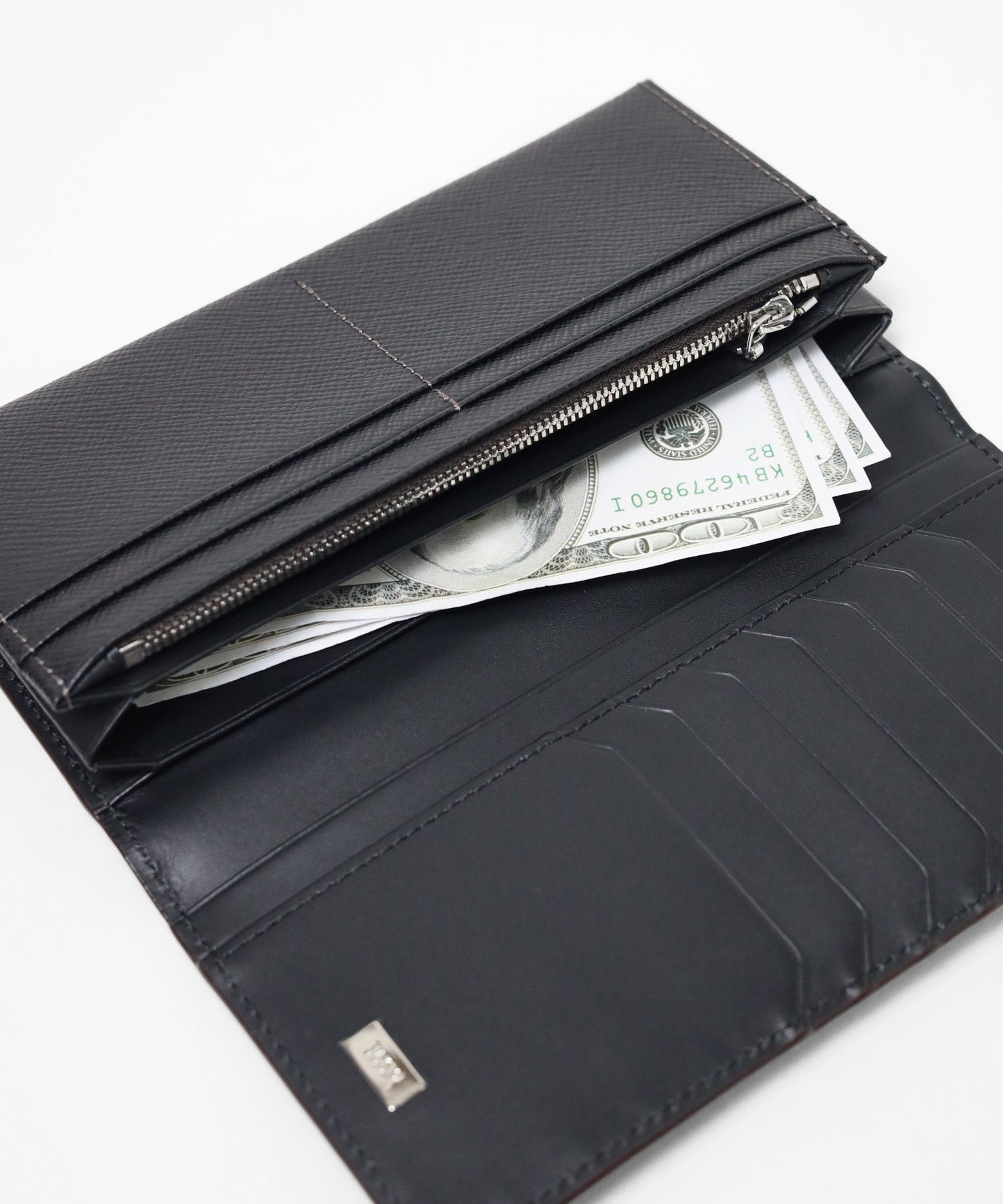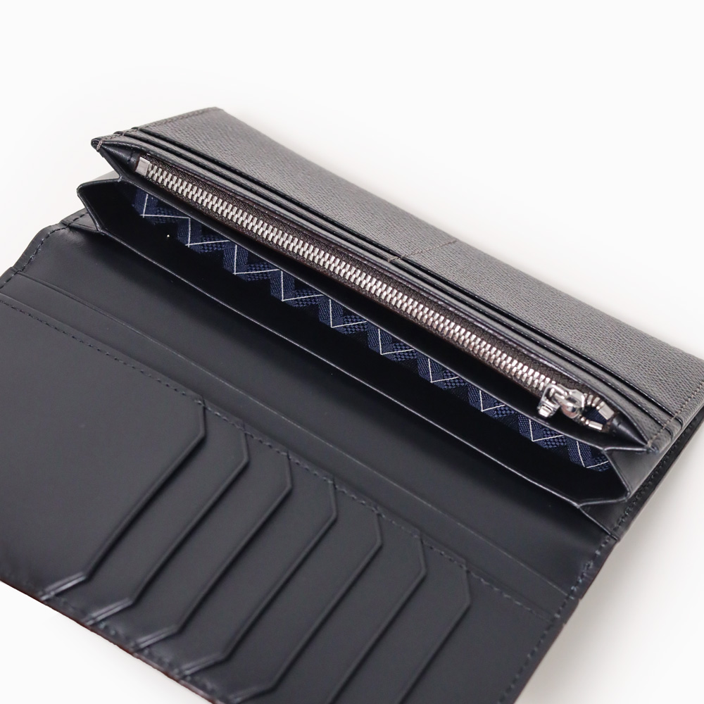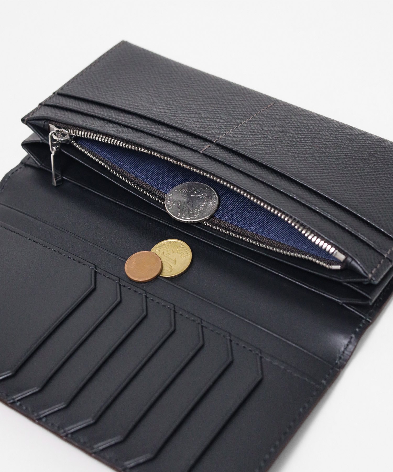英国ロイヤルワラントを所持する老舗ブランドで使用される、エレガントで上品なエンボス加工レザー「PANAMA/ パナマ」を使用したオフィスカジュアルテイストの長財布。上質なヨーロッパ原皮のキップをベースにして、タンナー独自のエンボス加工が繊細で上質な雰囲気を演出します。国内や他のタンナーでは表現できない気品高い素材感が魅力です。