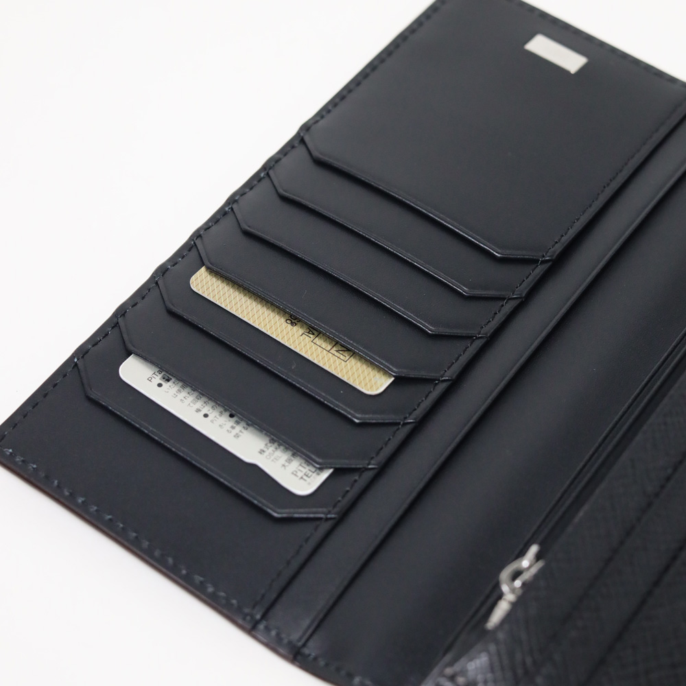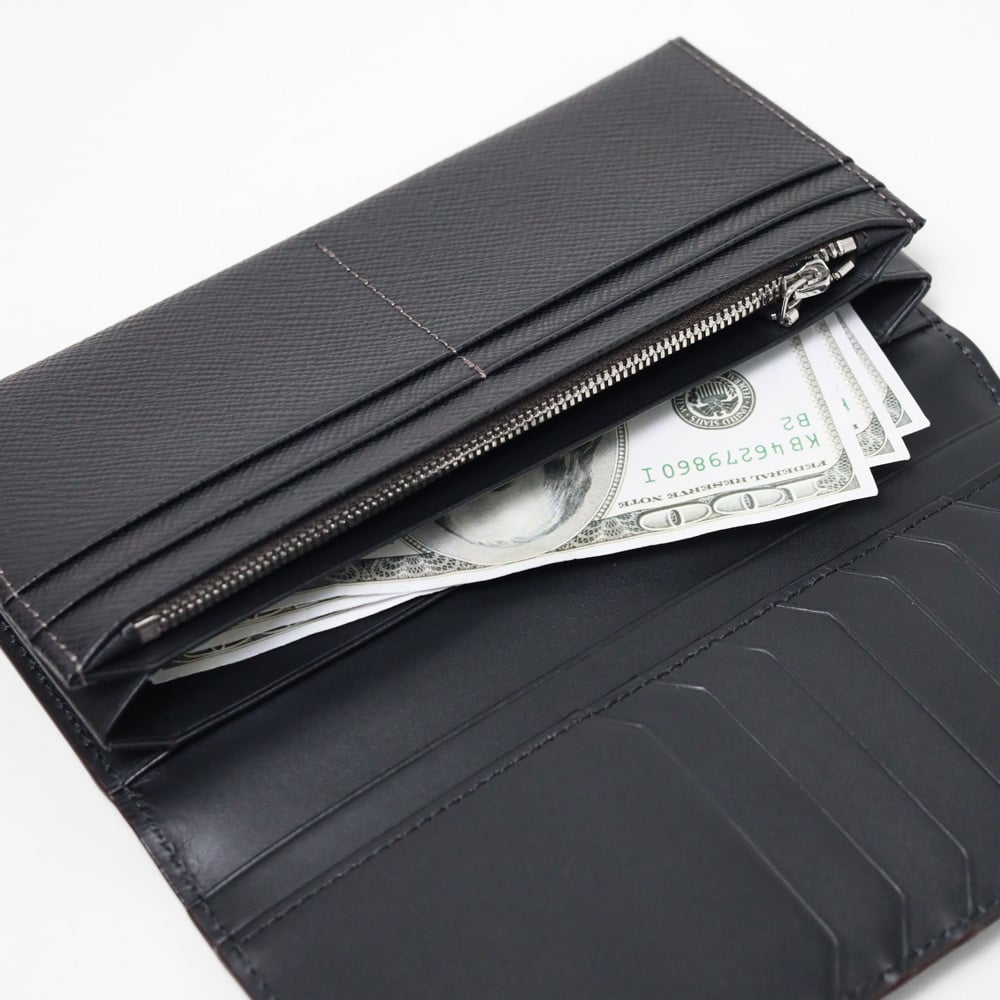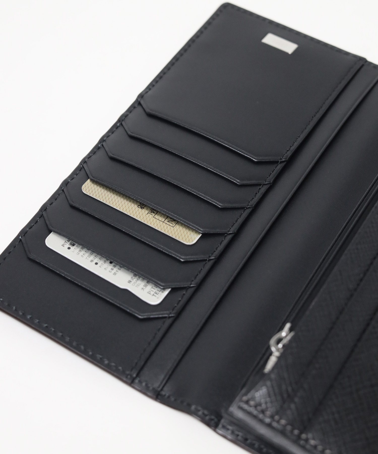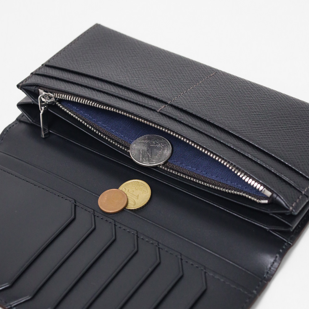 英国ロイヤルワラントを所持する老舗ブランドで使用される、エレガントで上品なエンボス加工レザー「PANAMA/ パナマ」を使用したオフィスカジュアルテイストの長財布。上質なヨーロッパ原皮のキップをベースにして、タンナー独自のエンボス加工が繊細で上質な雰囲気を演出します。国内や他のタンナーでは表現できない気品高い素材感が魅力です。