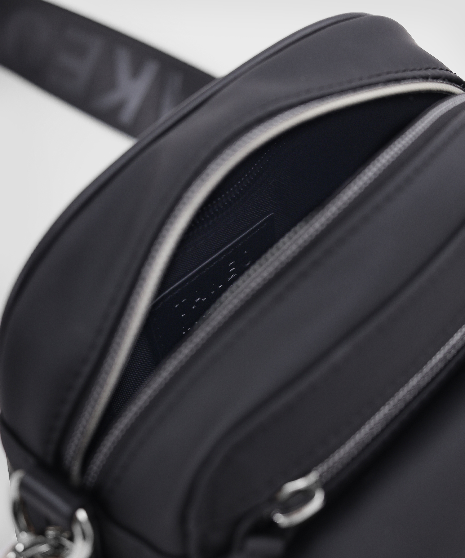 本体に使用されているポリカーボネートは、強靭な表面摩擦強度と高耐久性を有した素材で日々の使用でも気軽に安心してご利用いただけます。またタケオキクチのブランドタグや引手にはスプリットレザー(床革)を使用。このスプリットレザーは、本革を削った残り部分のため本来製品に使用するには手間と時間がかかるので廃棄されることがほとんどでした。しかし近年のサスティナビリティの観点からこのような廃棄予定のものを再利用するアップサイクルで生まれた持続可能な未来のための素材使用しています。