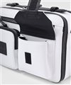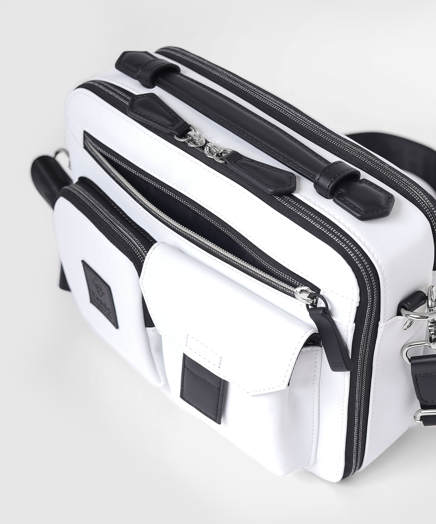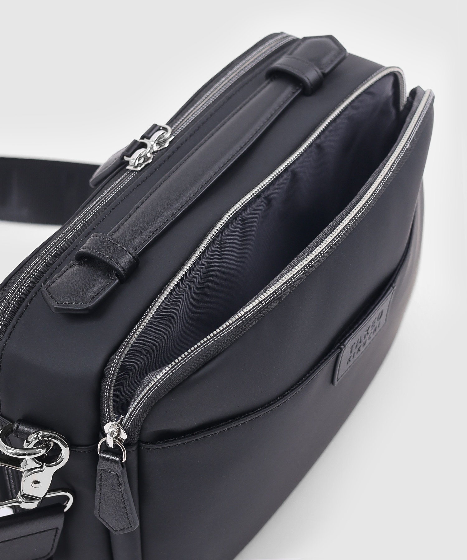 本体に使用されているポリカーボネートは、強靭な表面摩擦強度と高耐久性を有した素材で日々の使用でも気軽に安心してご利用いただけます。またタケオキクチのブランドタグや引手にはスプリットレザー(床革)を使用。このスプリットレザーは、本革を削った残り部分のため本来製品に使用するには手間と時間がかかるので廃棄されることがほとんどでした。しかし近年のサスティナビリティの観点からこのような廃棄予定のものを再利用するアップサイクルで生まれた持続可能な未来のための素材使用しています。