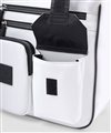 本体に使用されているポリカーボネートは、強靭な表面摩擦強度と高耐久性を有した素材で日々の使用でも気軽に安心してご利用いただけます。またタケオキクチのブランドタグや引手にはスプリットレザー(床革)を使用。このスプリットレザーは、本革を削った残り部分のため本来製品に使用するには手間と時間がかかるので廃棄されることがほとんどでした。しかし近年のサスティナビリティの観点からこのような廃棄予定のものを再利用するアップサイクルで生まれた持続可能な未来のための素材使用しています。