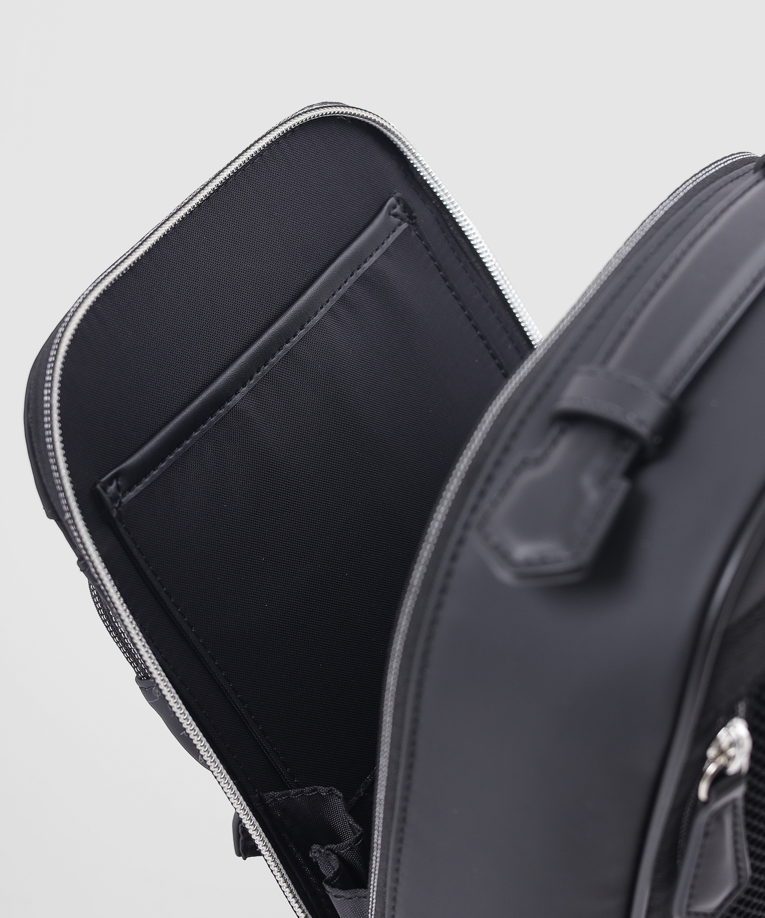 収納機能は外装に細かなものを収納できるようにポケットが4つ。内装メインルームは内側に小物を収納できるファスナーポケットとオープンポケットがあります。