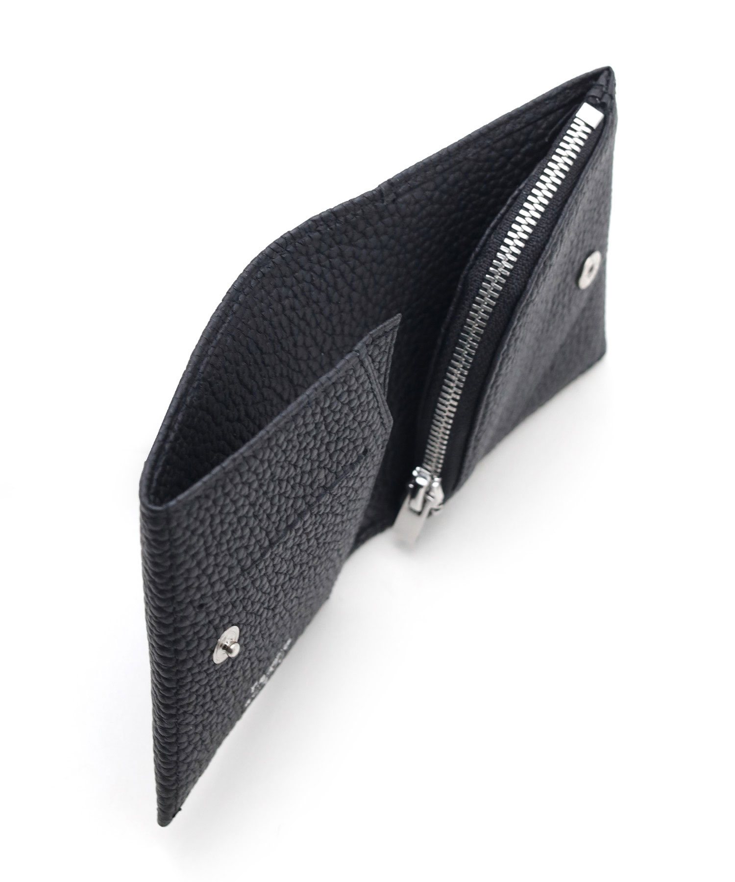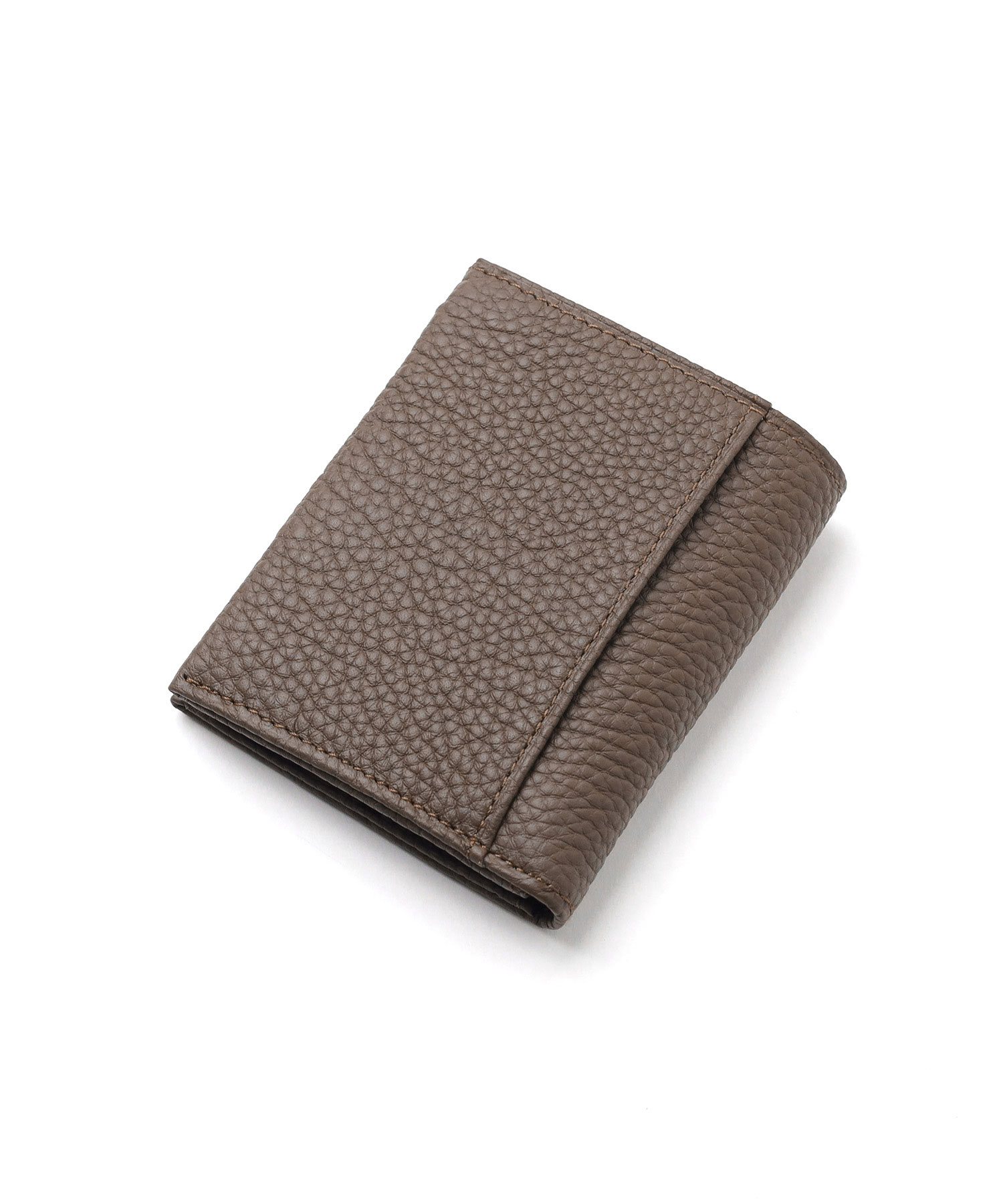 オールシュリンクレザーでソフトに仕上げた、タケオキクチのコンパクトな二つ折り財布。使いやすいよう設計したサイズ感で、キャッシュレス決済を快適にします。