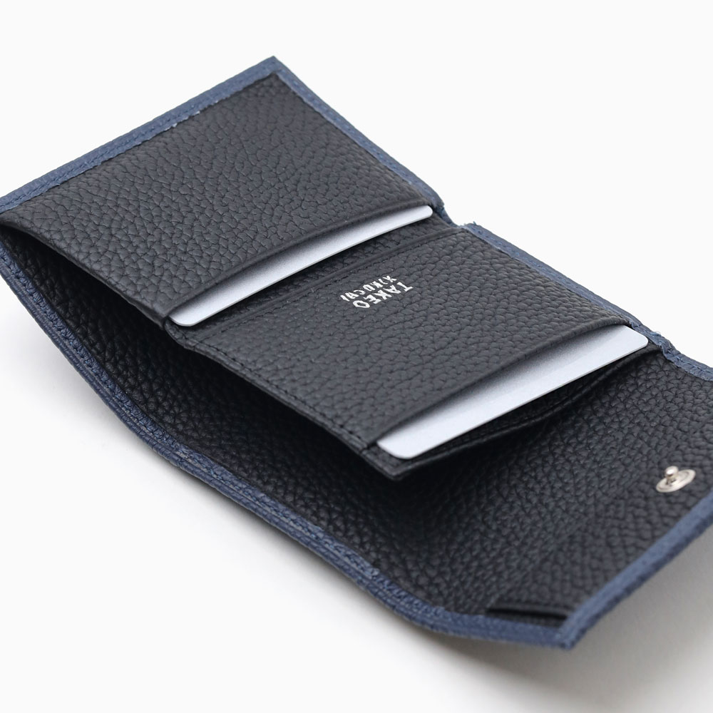 オールシュリンクレザーでソフトに仕上げた、タケオキクチのコンパクトな三つ折り財布。使いやすいよう設計したサイズ感で、キャッシュレス決済を快適にします。
