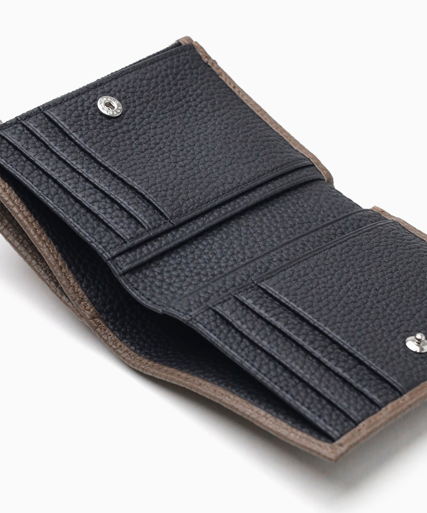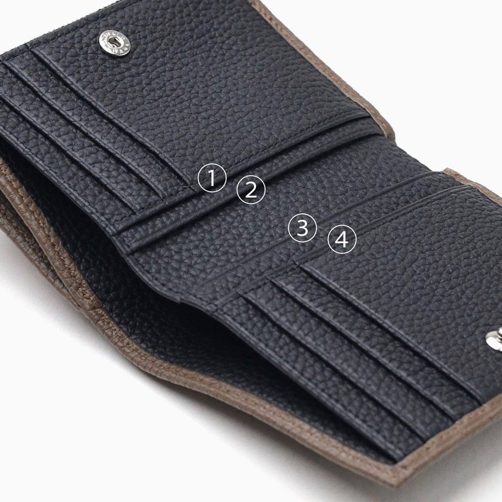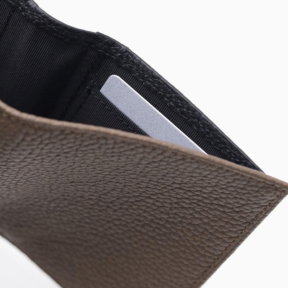 オールシュリンクでソフトに仕上げた キャッシュレス対応二つ折り財布