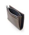 オールシュリンクでソフトに仕上げた、キャッシュレス対応の二つ折り財布。芯材を抑えたソフトな造りで、美シボのシュリンクレザーに、ブランドロゴブローチがポイントです。使いやすいよう設計したサイズ感で、キャッシュレス決済を快適にします。