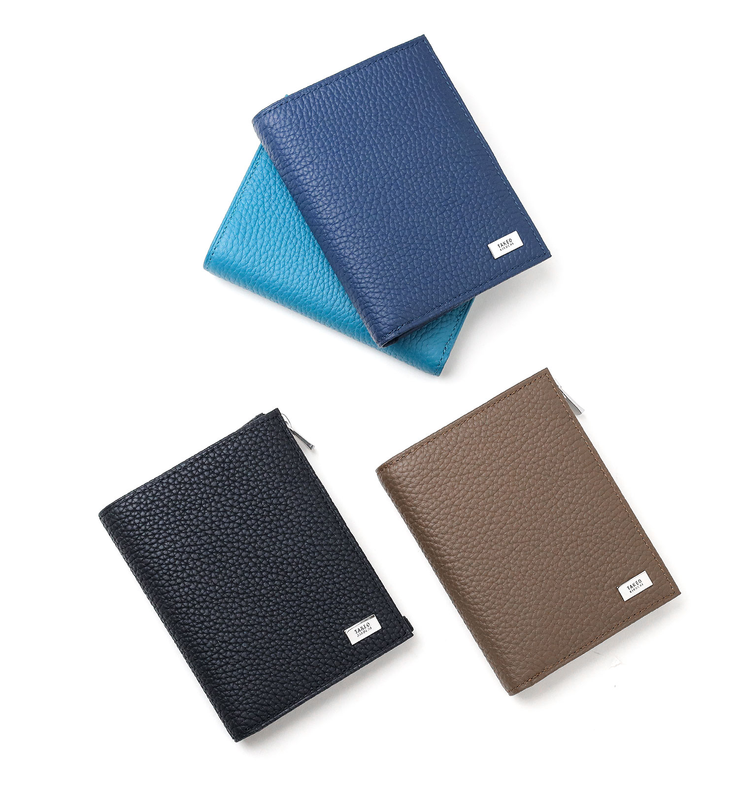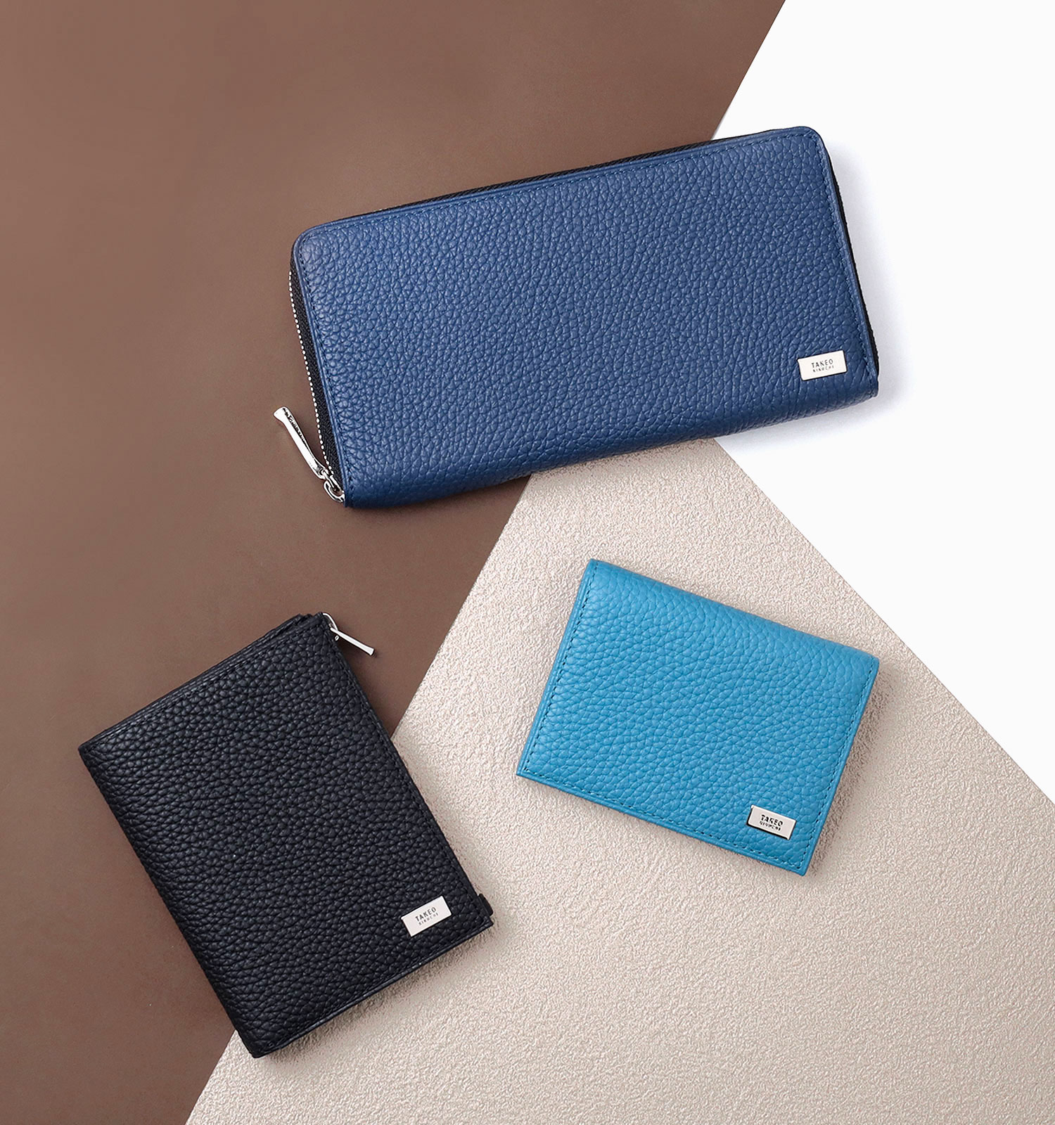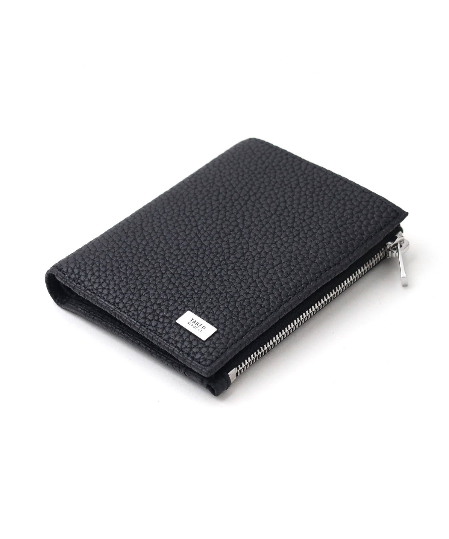 オールシュリンクレザーでソフトに仕上げた、タケオキクチのスリムな二つ折り財布。使いやすいよう設計したサイズ感で、キャッシュレス決済を快適にします。