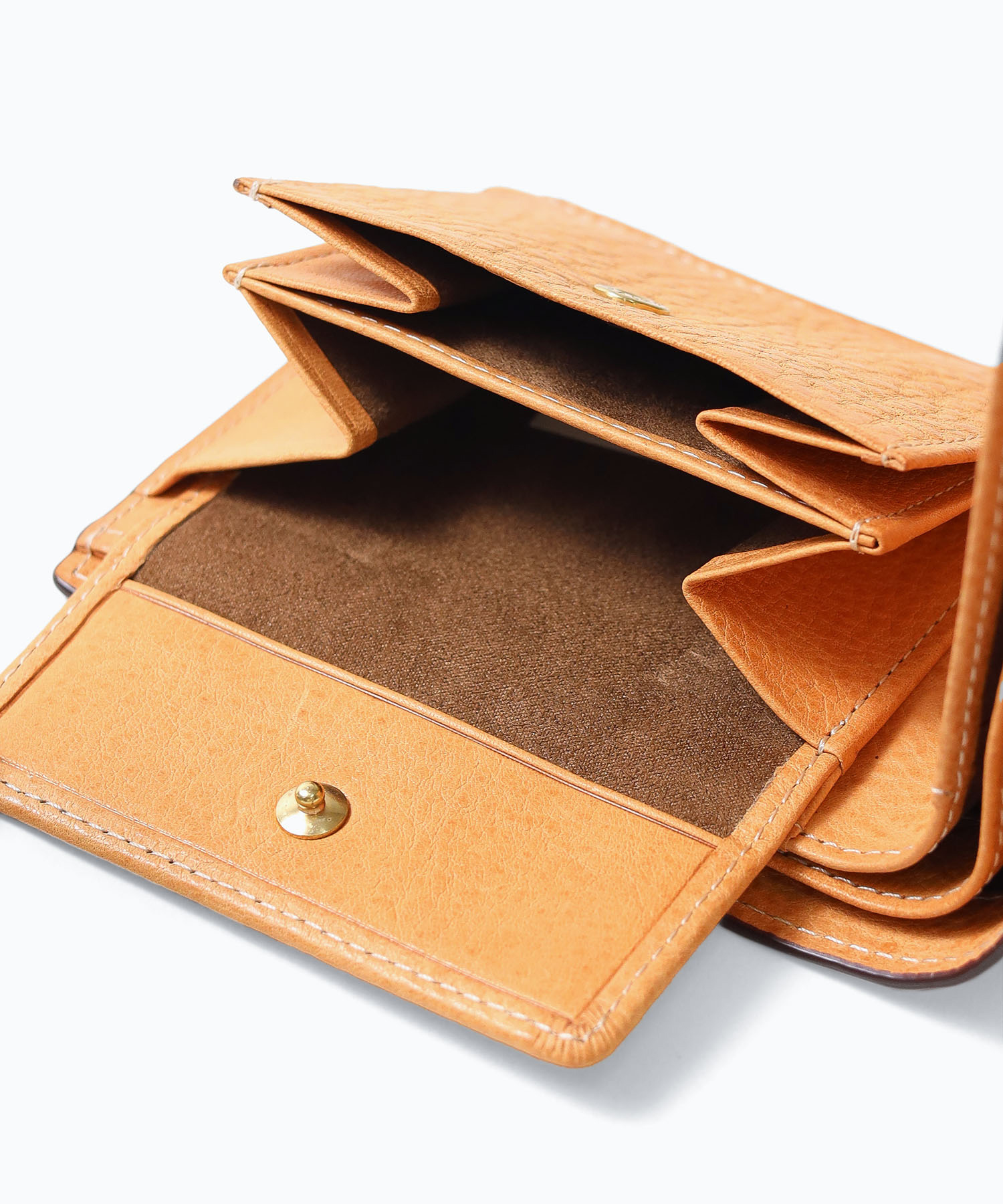 内装には、味わい深い素上げのシュリンクレザーを使用しており、使い込むことで色や艶感が深まります。また、裏生地には高級感あるソフトなタッチ感が魅力のスエード調起毛素材を使用しています。