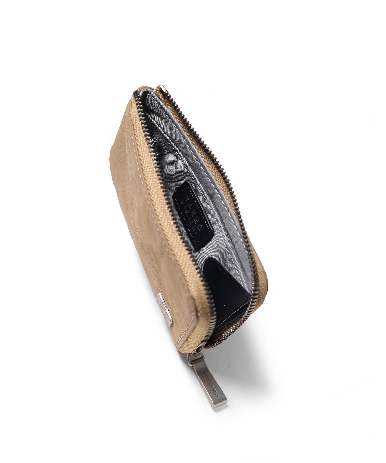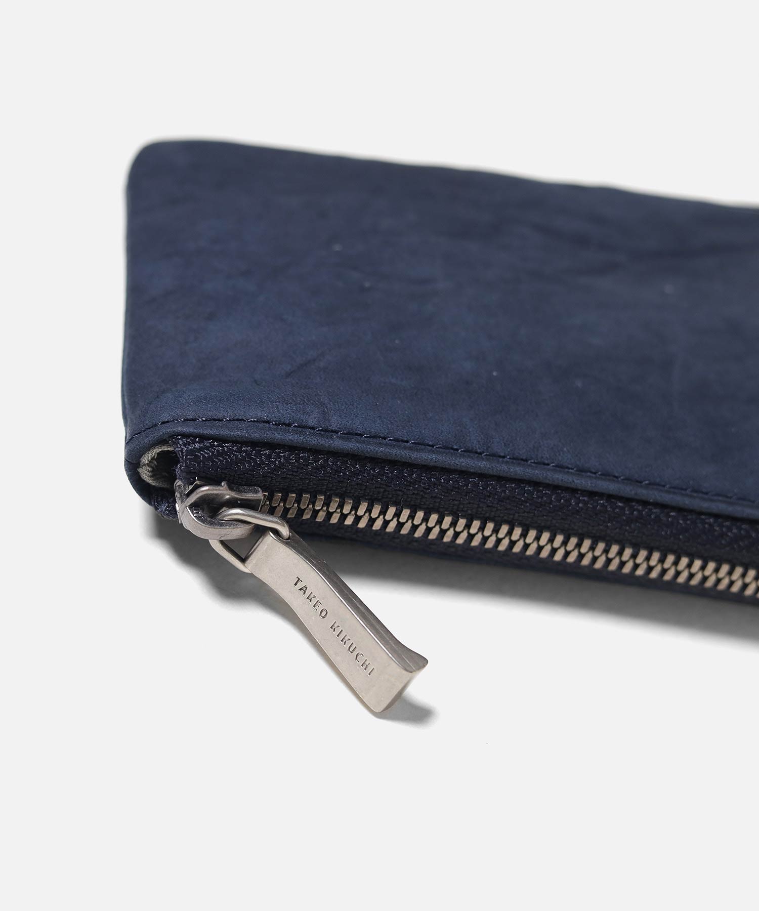 タケオキクチのソフトなL字ファスナータイプの小銭入れ。薄さと軽さに加えて、革らしさとソフト感を感じられる革小物です。内側にはキーチェーンとカード収納が可能なポケット付き。これ一つでお出かけが可能なアイテムです。