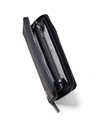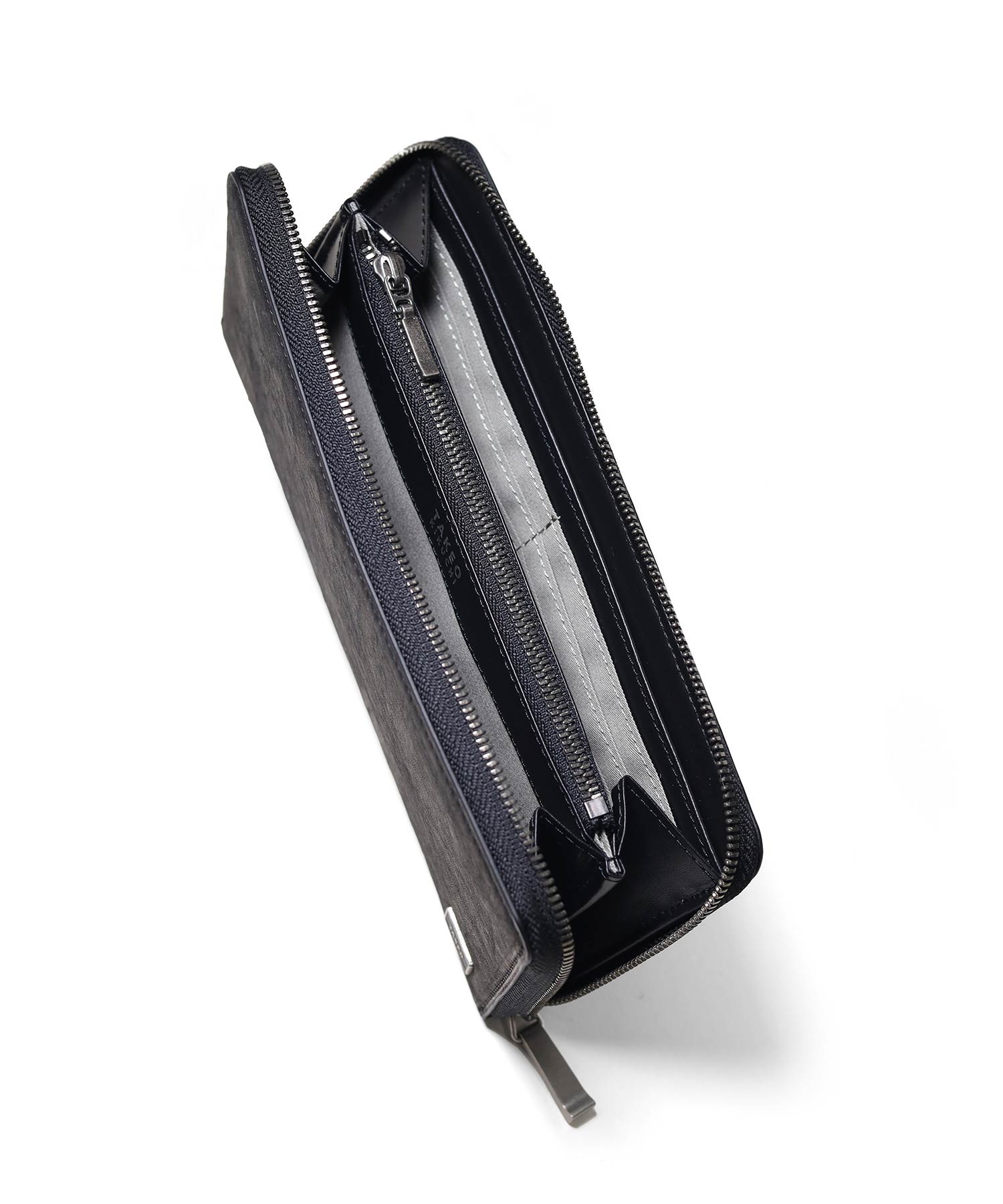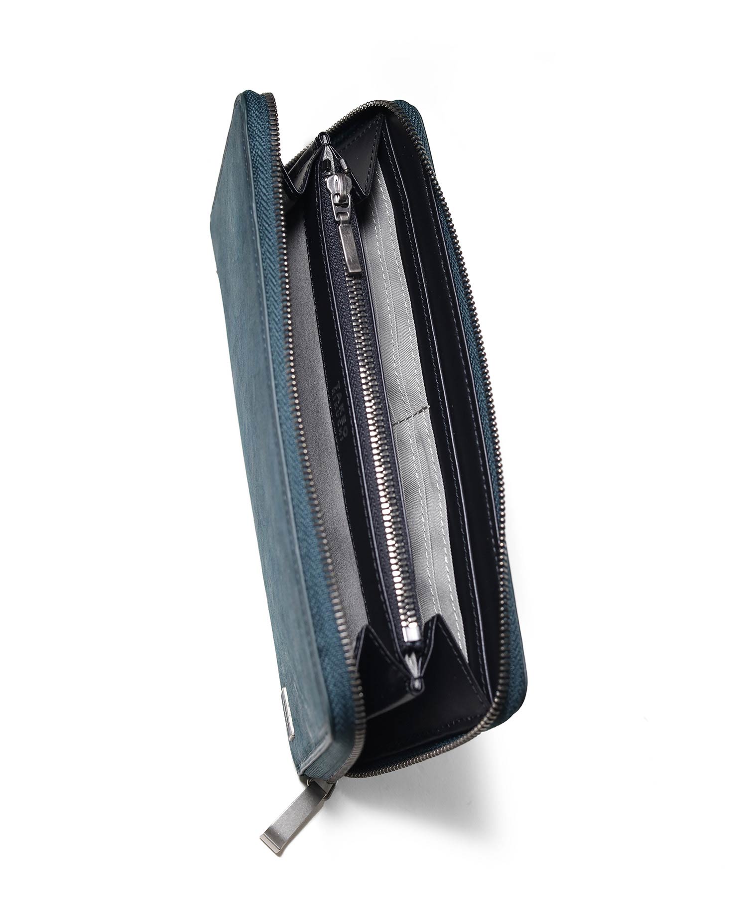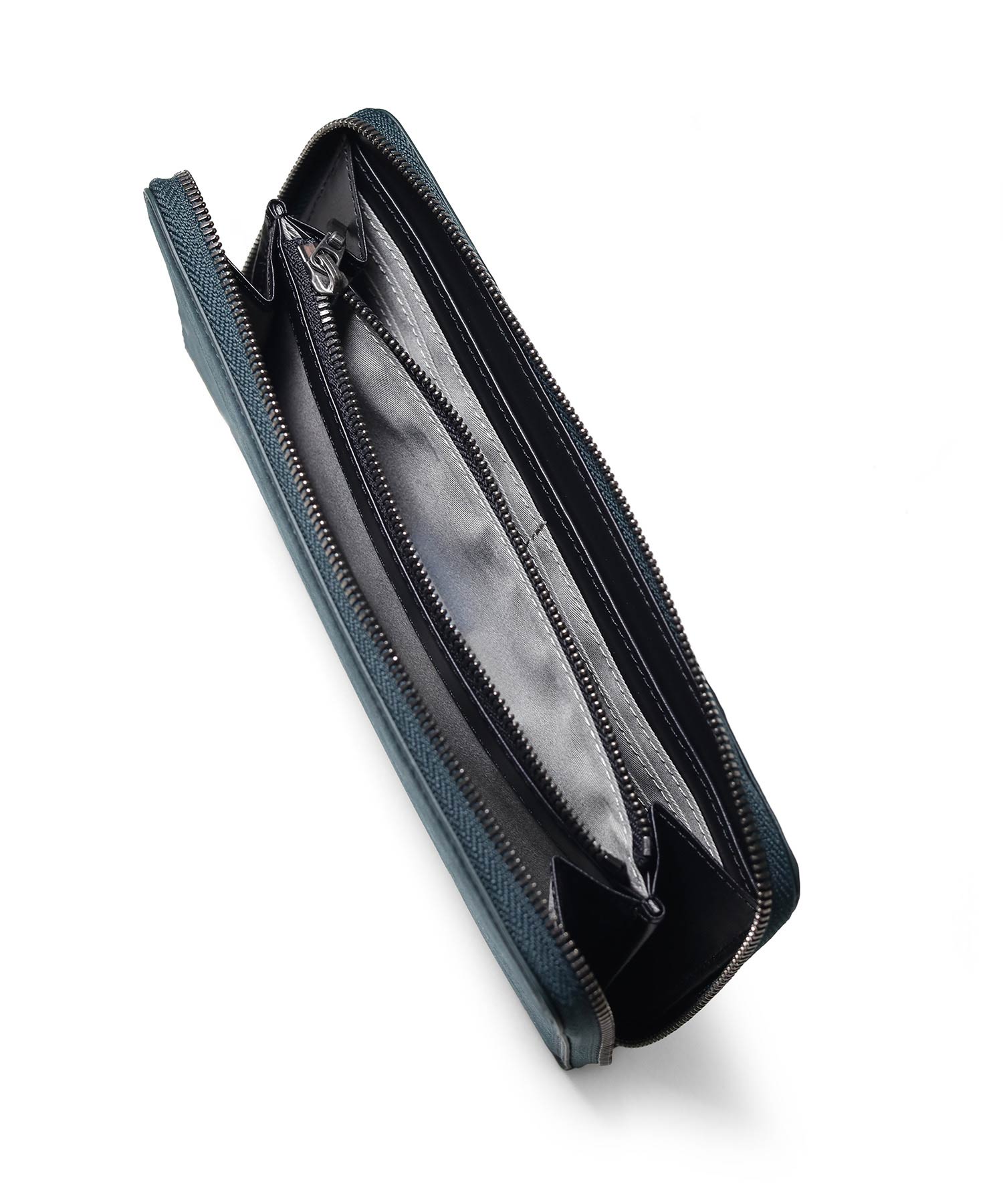 大容量のラウンドファスナー長財布です。財布内側には、札入れが2つ、ファスナー小銭入れが1つ、カード段が12、ポケット大が2つあります。カード収納が豊富で、紙幣やレシート類の整理も可能な収納力抜群の長財布です。