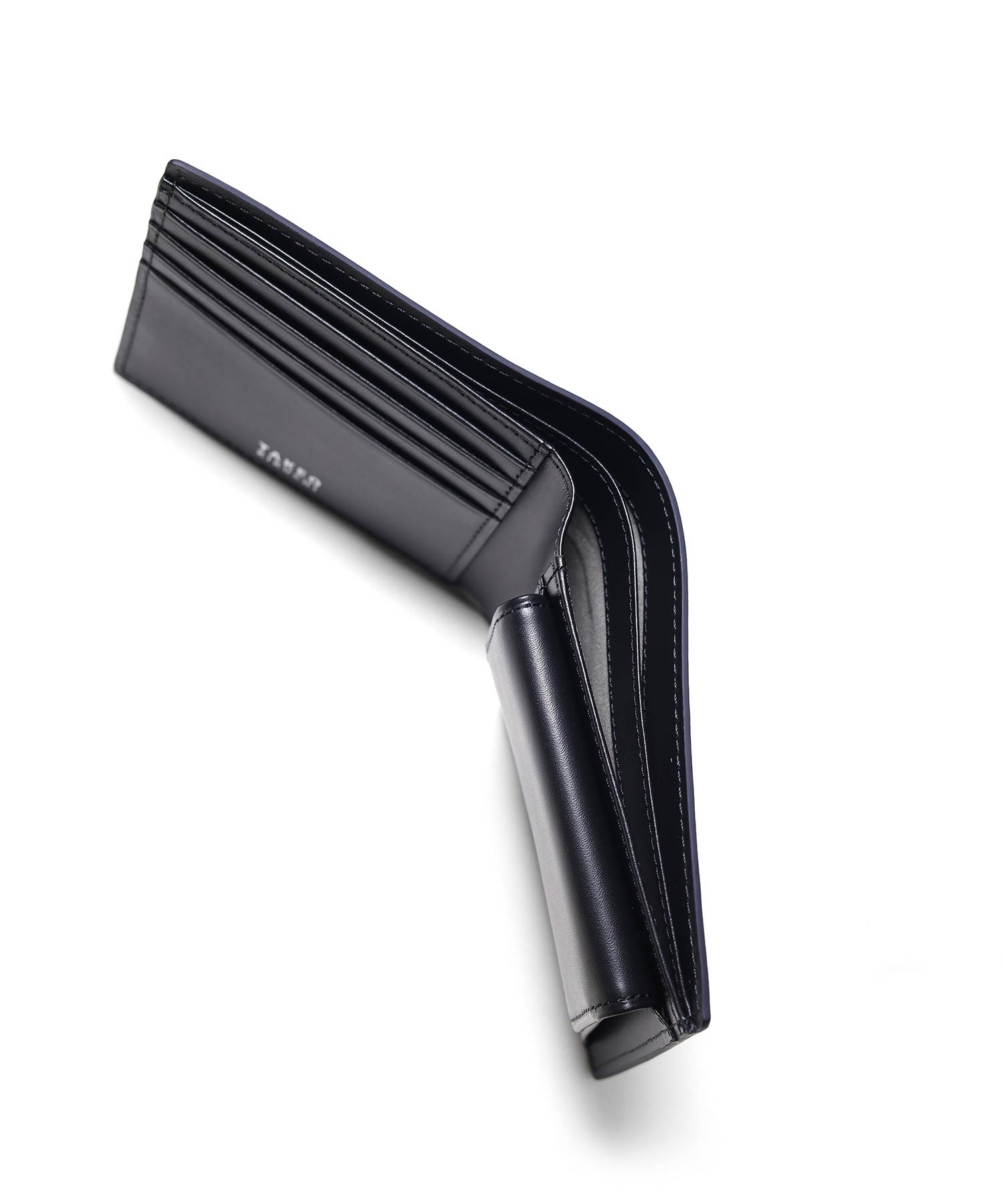 財布内側には、札入れが2つ、ホック式小銭入れが1つ、カード段が4つ、ポケットが3つあります。紙幣やレシート類の整理も可能な収納力抜群の長財布です。