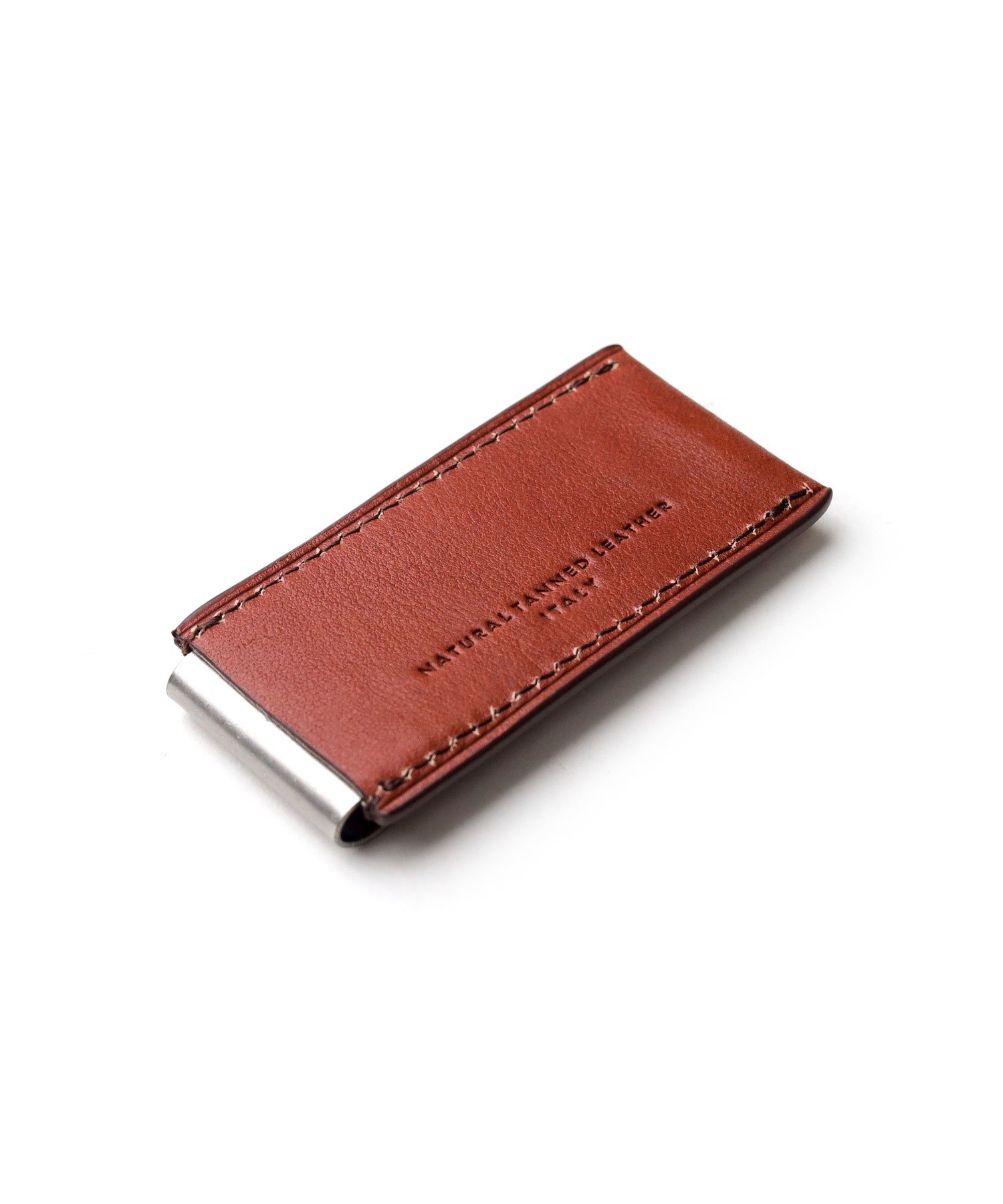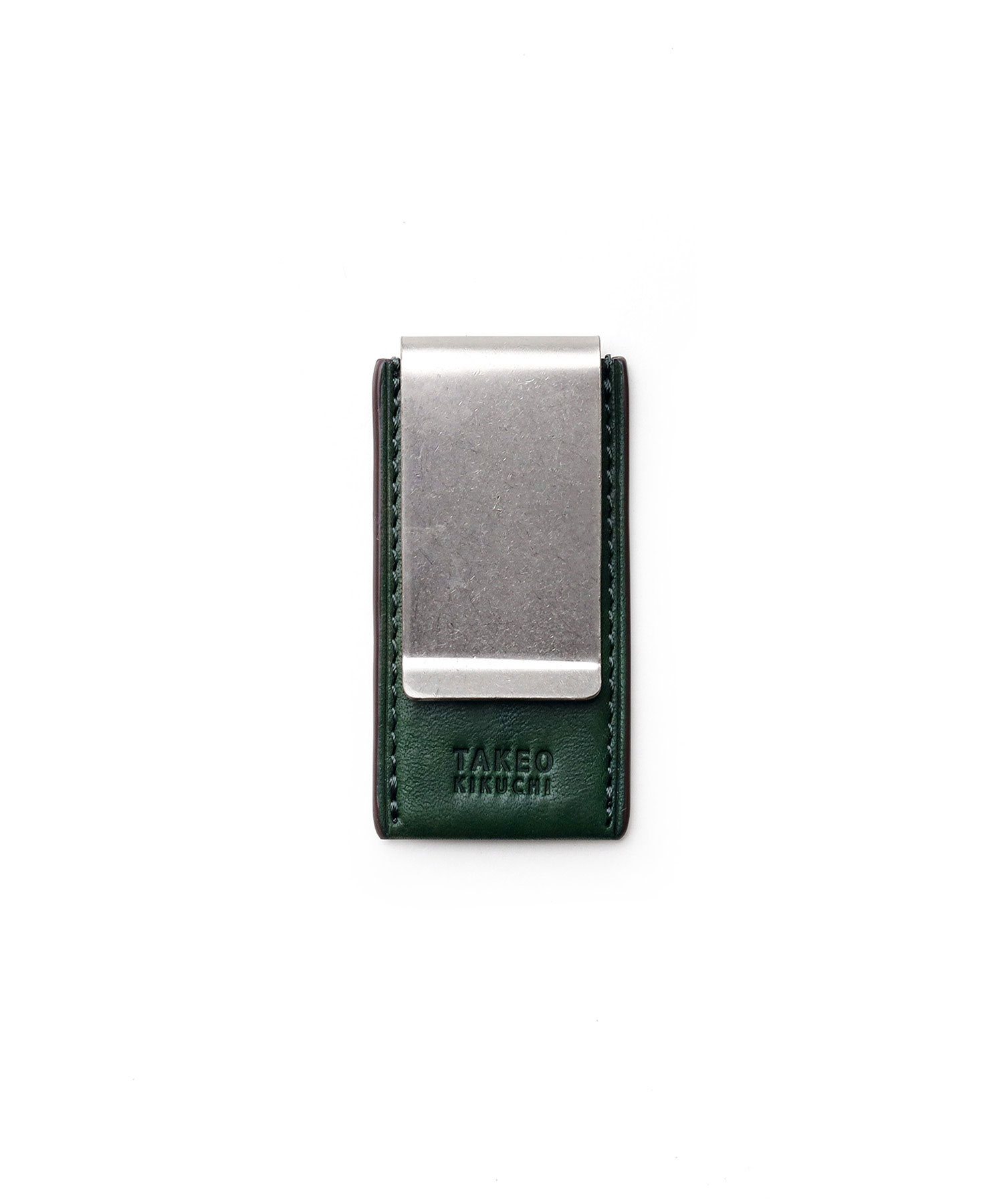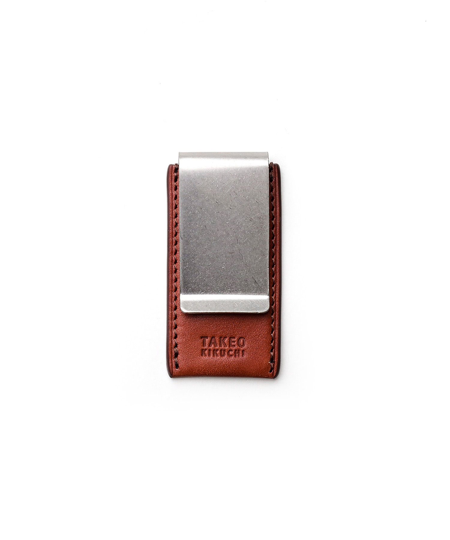 イタリアンショルダーレザーを使用した、男らしい素材感のタケオキクチのマネークリップ。特殊な染色技術により生まれるナチュラルなムラ感は、オリジナリティあふれる魅力を放ちます。