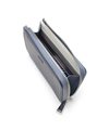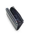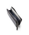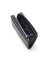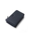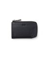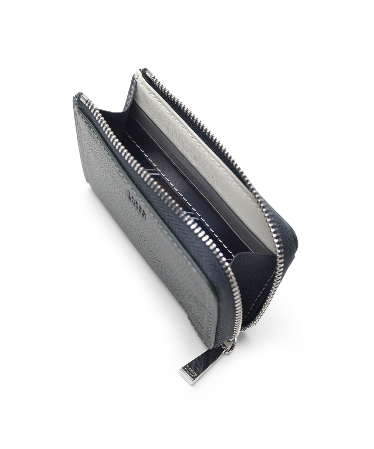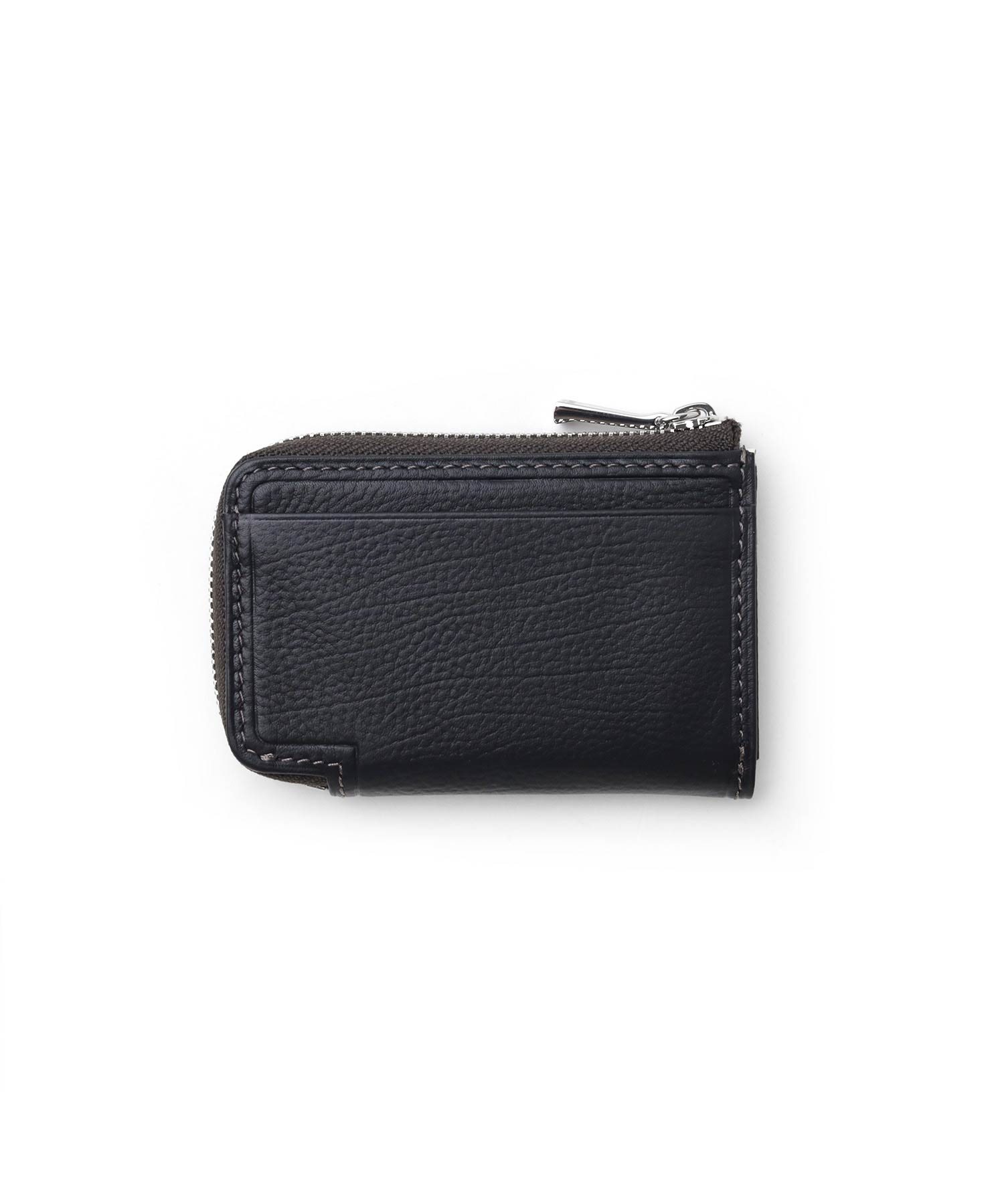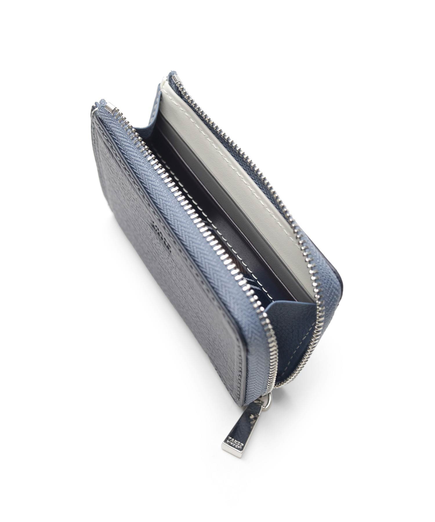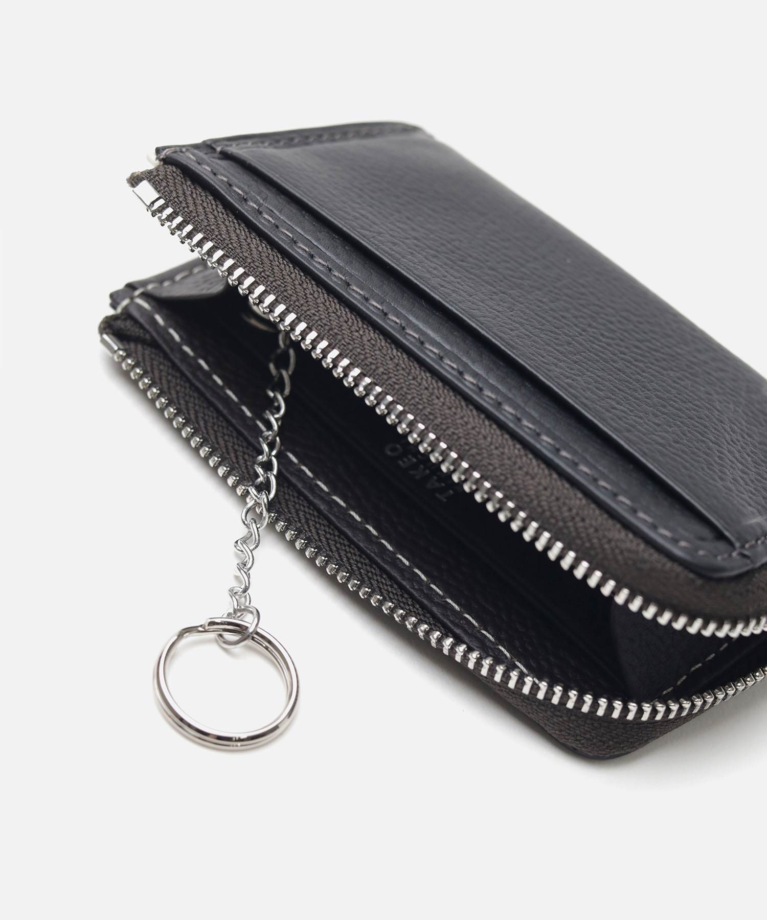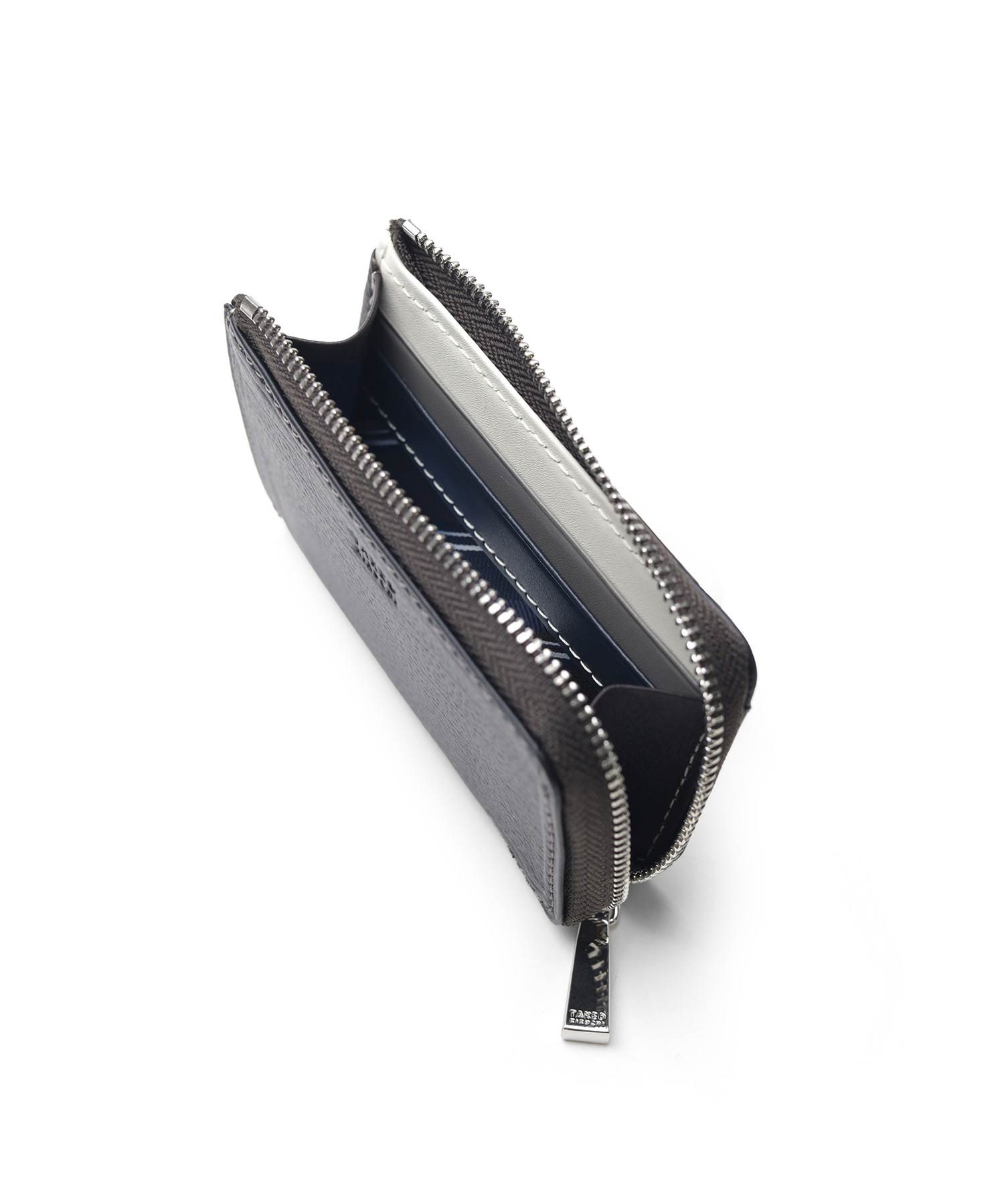硬貨を出し入れしやすいL字ファスナー型小銭入れです。内側にカードポケットが3つ、キーチェーンが1つ、小銭入れの背面にもカードポケットが1つあります。キーチェーンはホック式で取り外しが可能です。内側のカード段にはブランドを代表するアイテムであるネクタイの配色をイメージした配色を施しています。また、裏地にはネクタイ柄のオリジナルジャガード織り素材を使用しています。