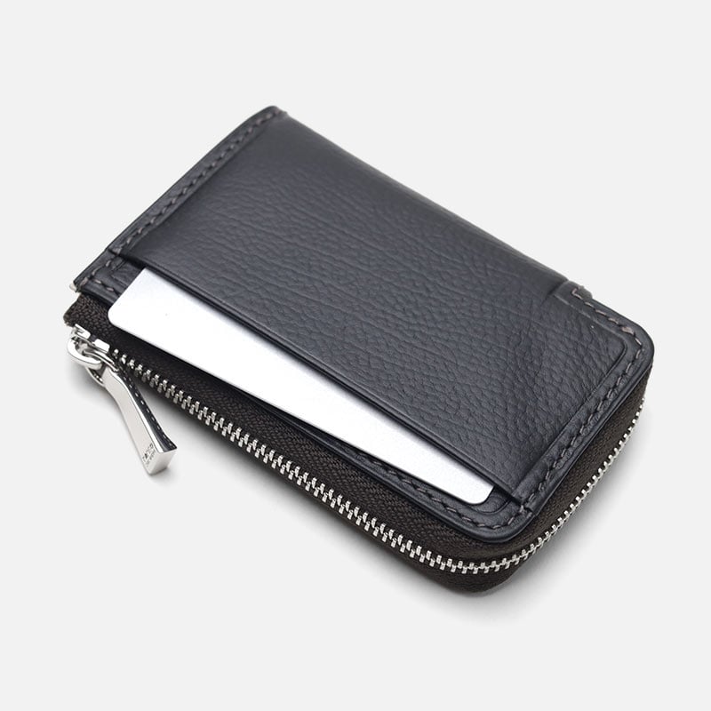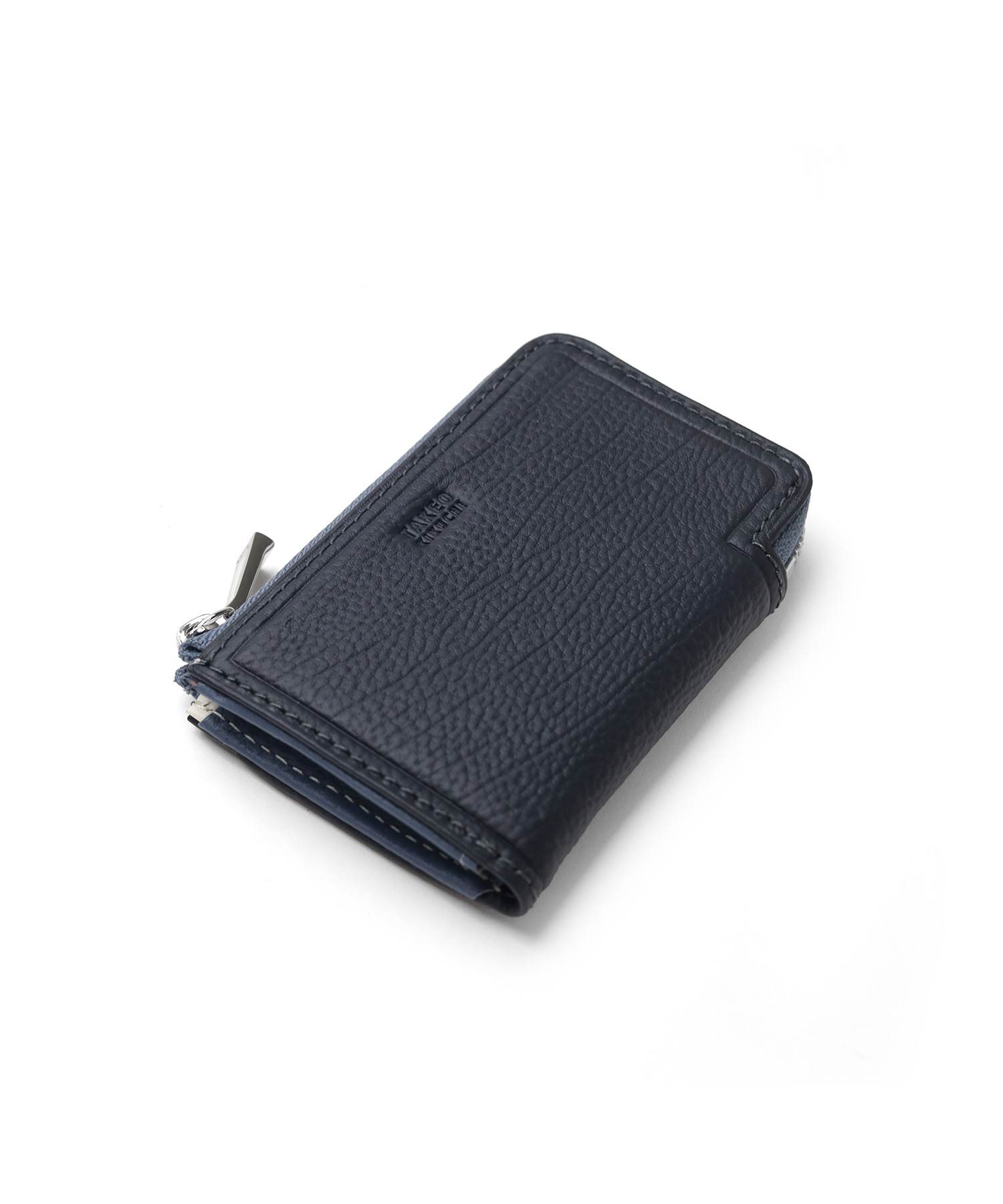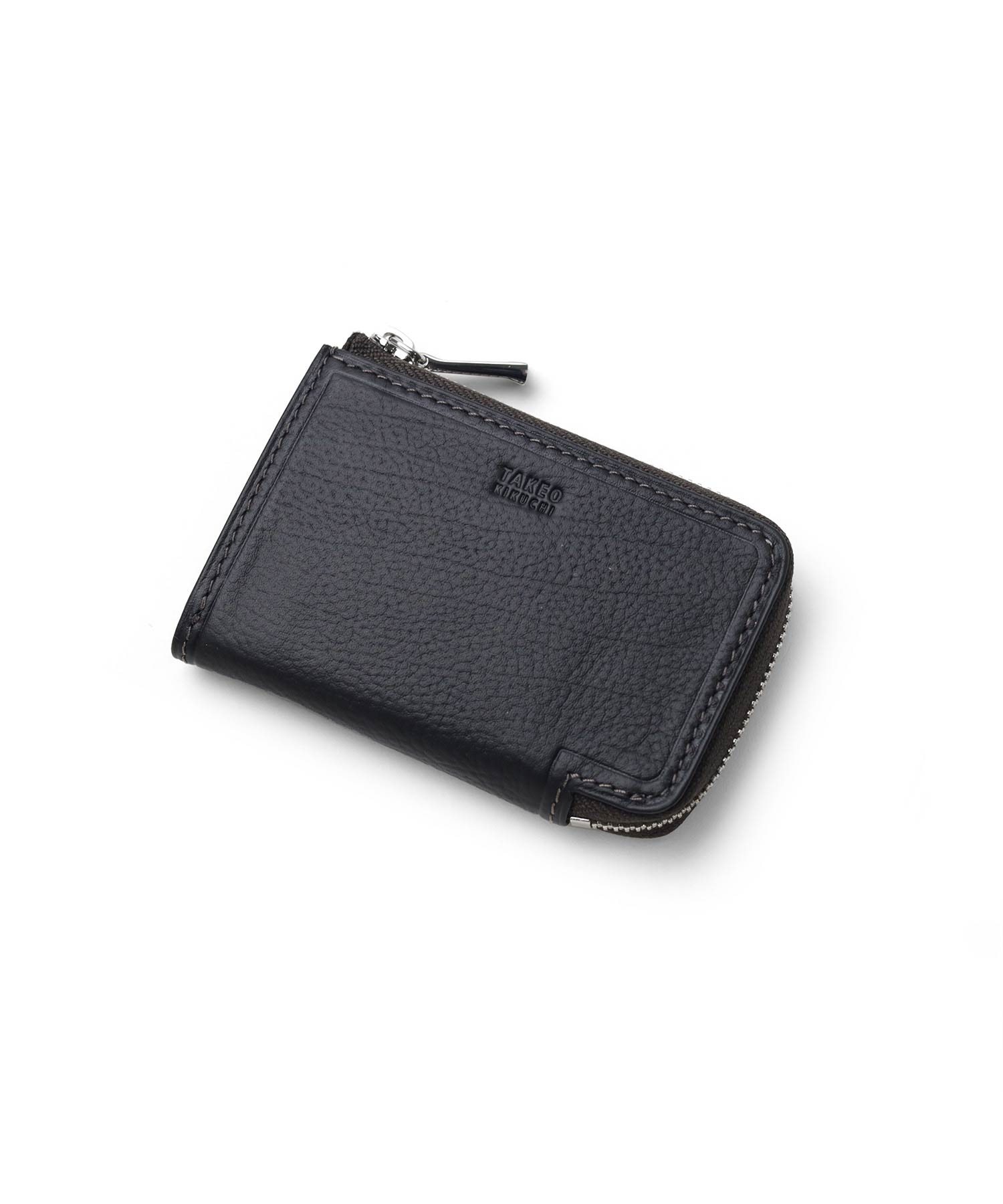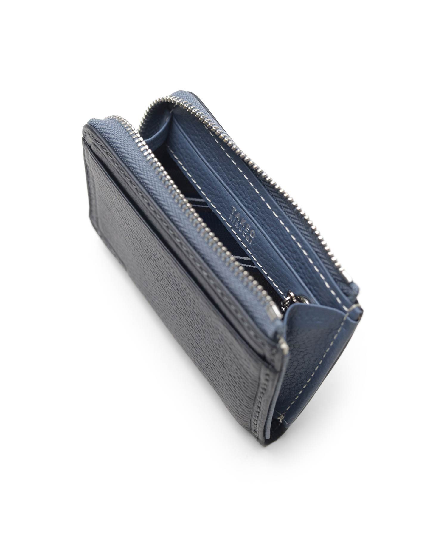 ソフトなキップレザーを使用した、薄マチでスッキリとしたタケオキクチのL字ファスナー型小銭入れです。内装のカラーコンビと、裏地に使用したネクタイ柄ジャガード織り素材がポイントです。