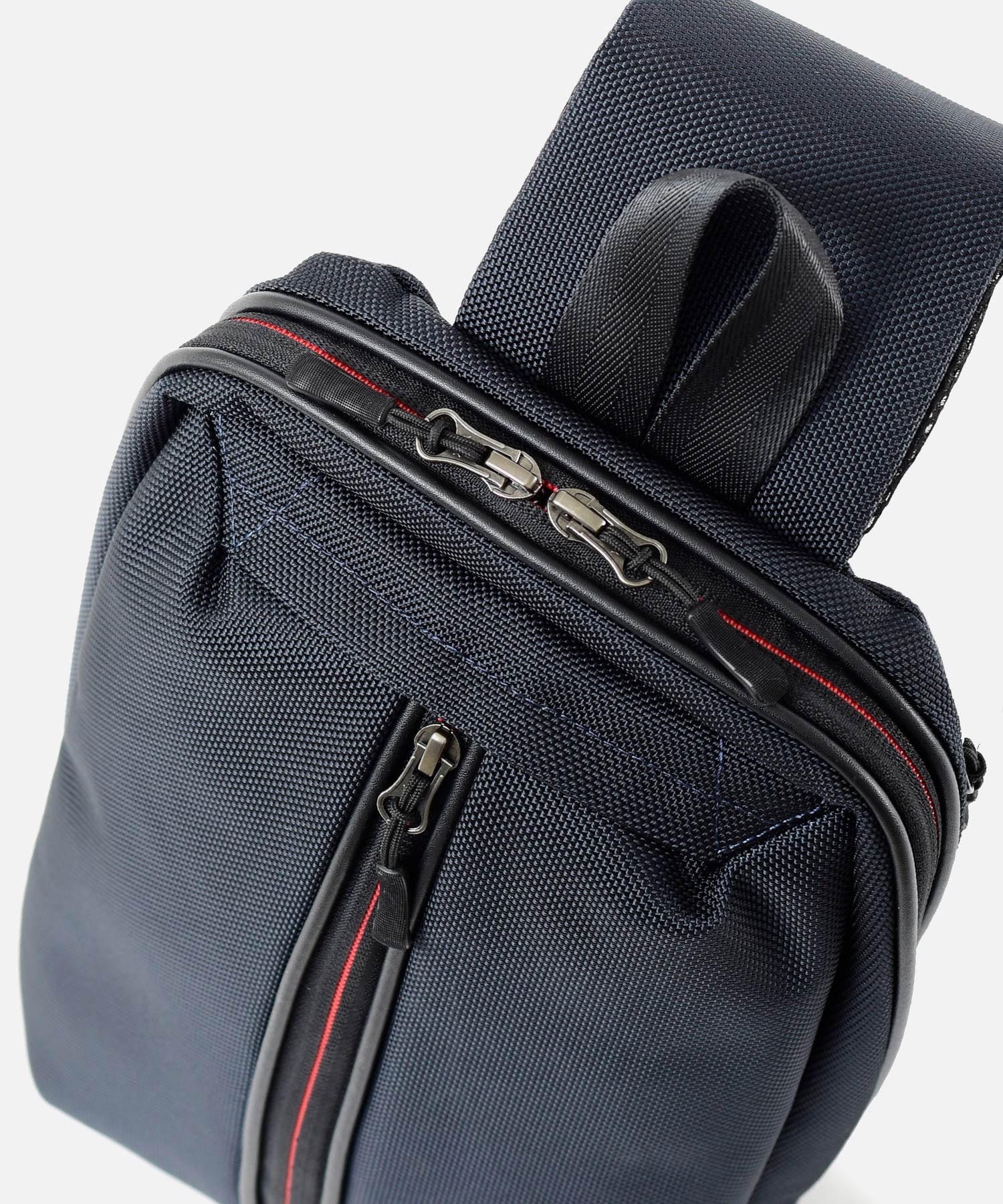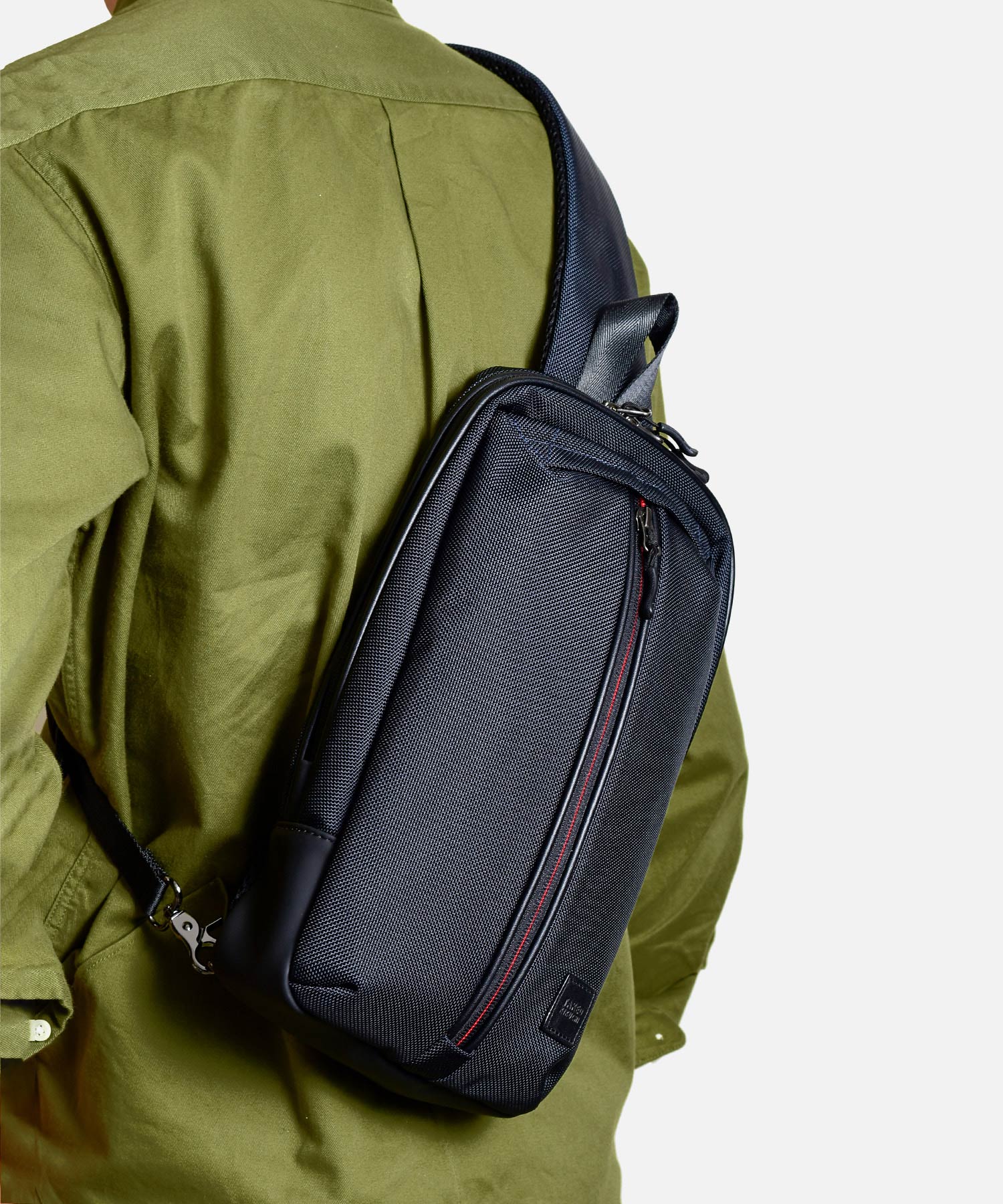 アスレジャーでも使えるタケオキクチのワンショルダーバッグ。耐熱・耐摩擦・引裂き強度に優れているバリスターナイロンをメイン素材しているため、アウトドアにおすすめのシリーズです。便利なスマホ収納ポーチ付き。収納機能も十分にありTAKEO KIKUCHIを象徴するクロ×アカのスプリットファスナーで上品さも表現したワンショルダーバッグです。