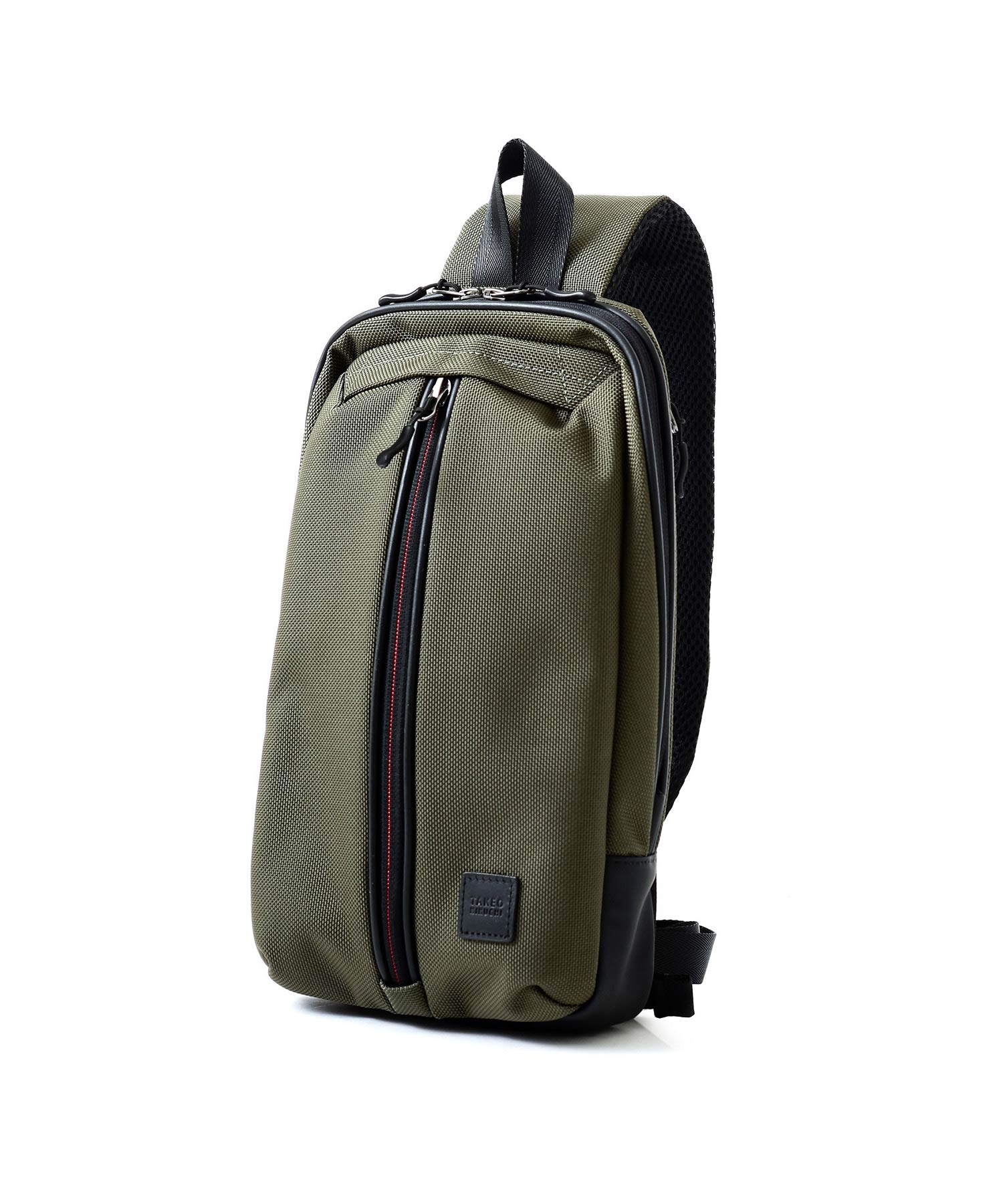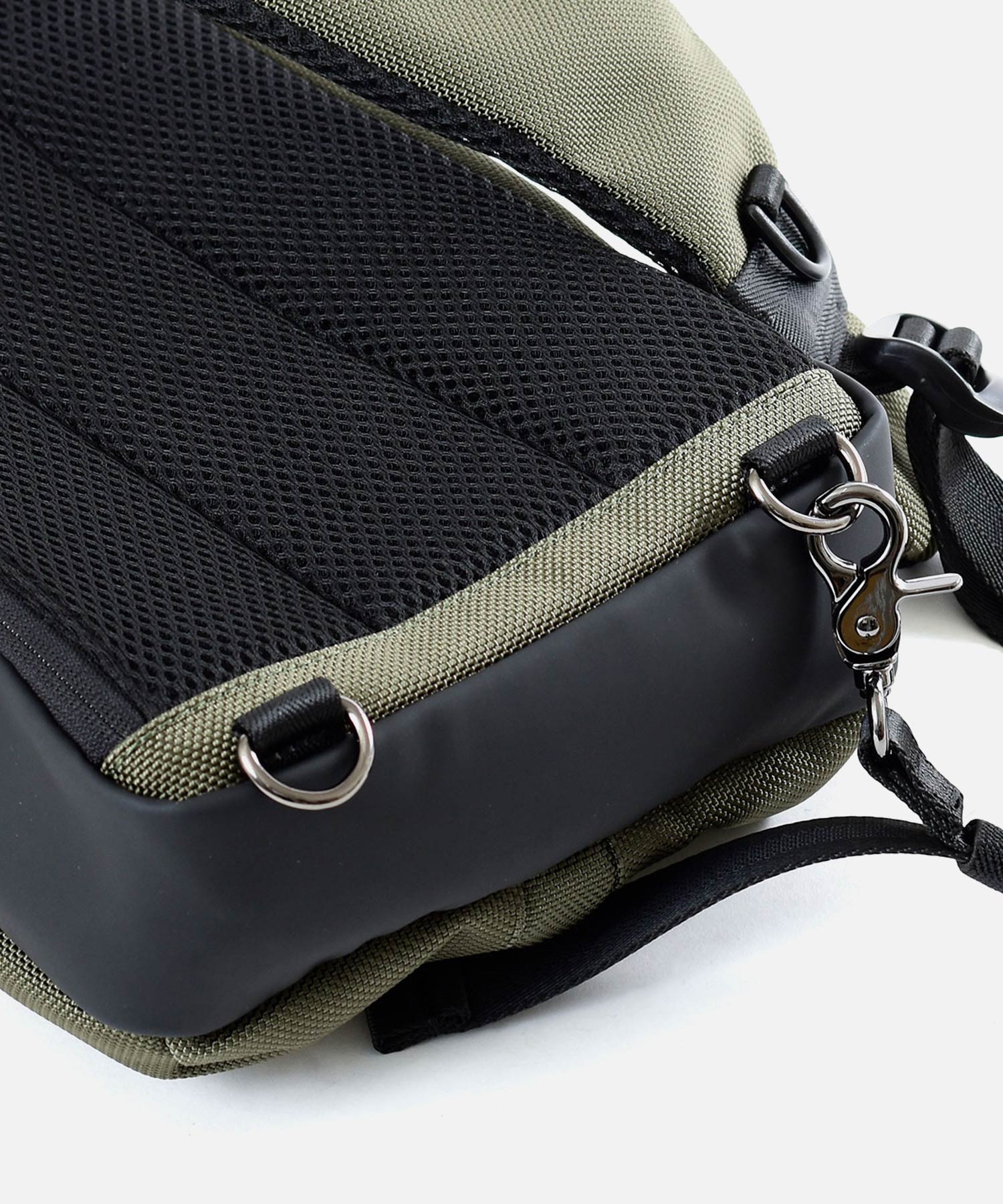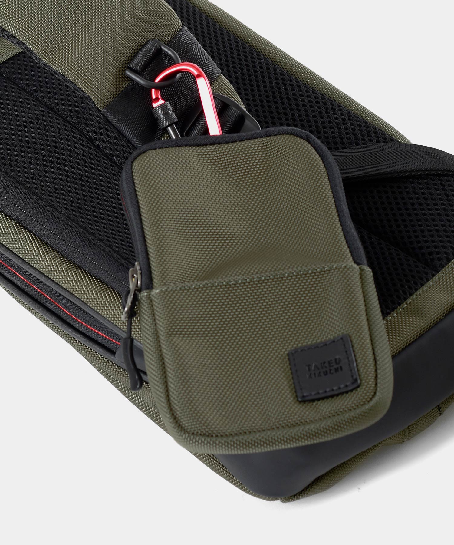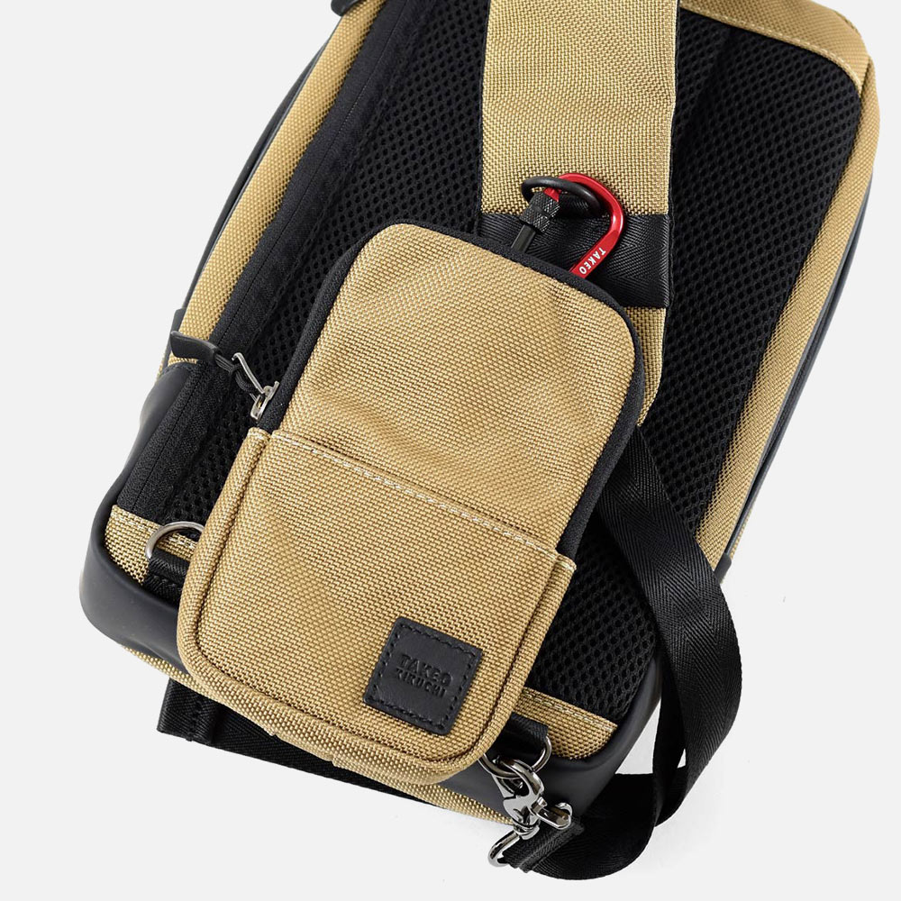 アスレジャーでも使えるタケオキクチのワンショルダーバッグ。耐熱・耐摩擦・引裂き強度に優れているバリスターナイロンをメイン素材しているため、アウトドアにおすすめのシリーズです。便利なスマホ収納ポーチ付き。