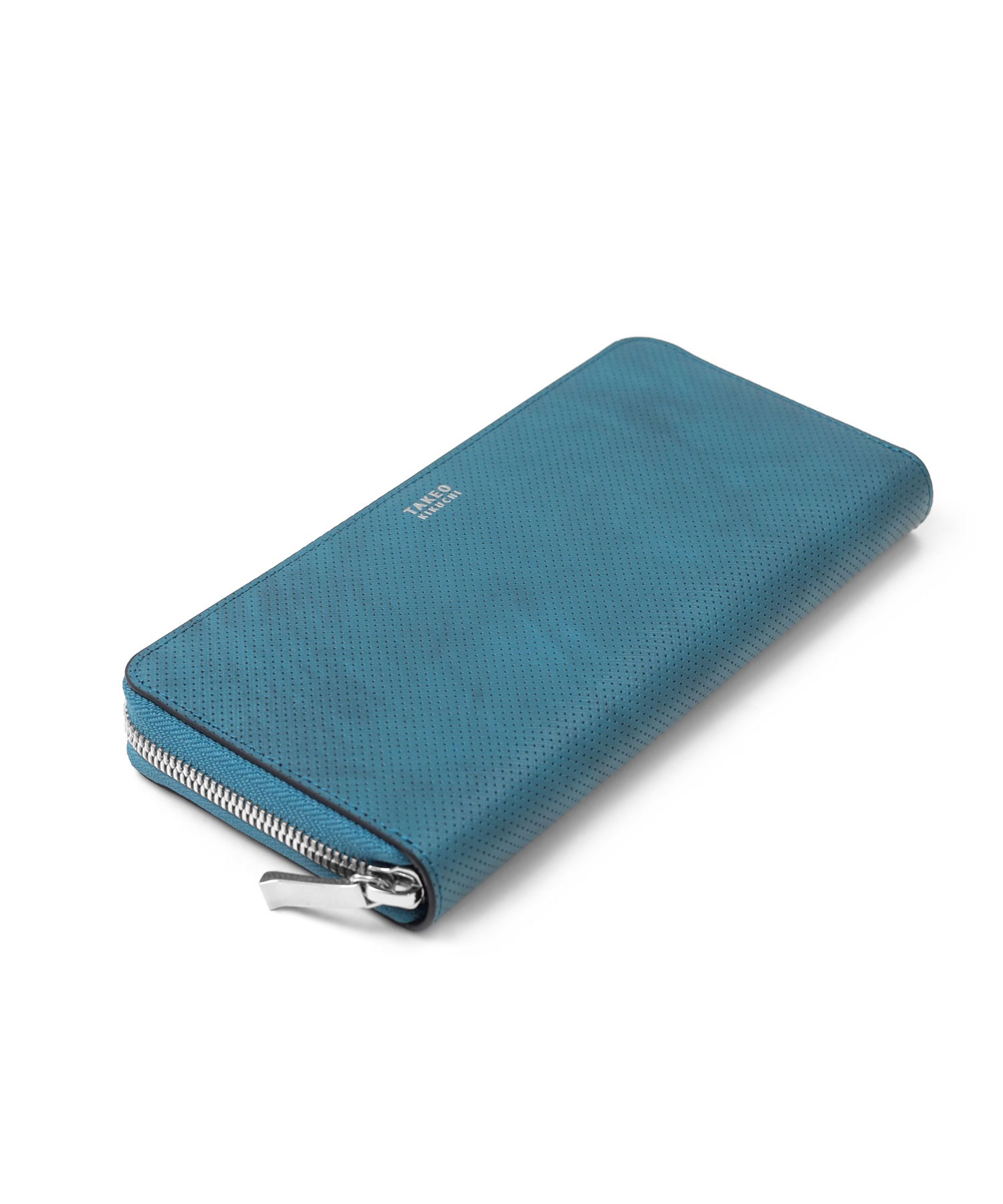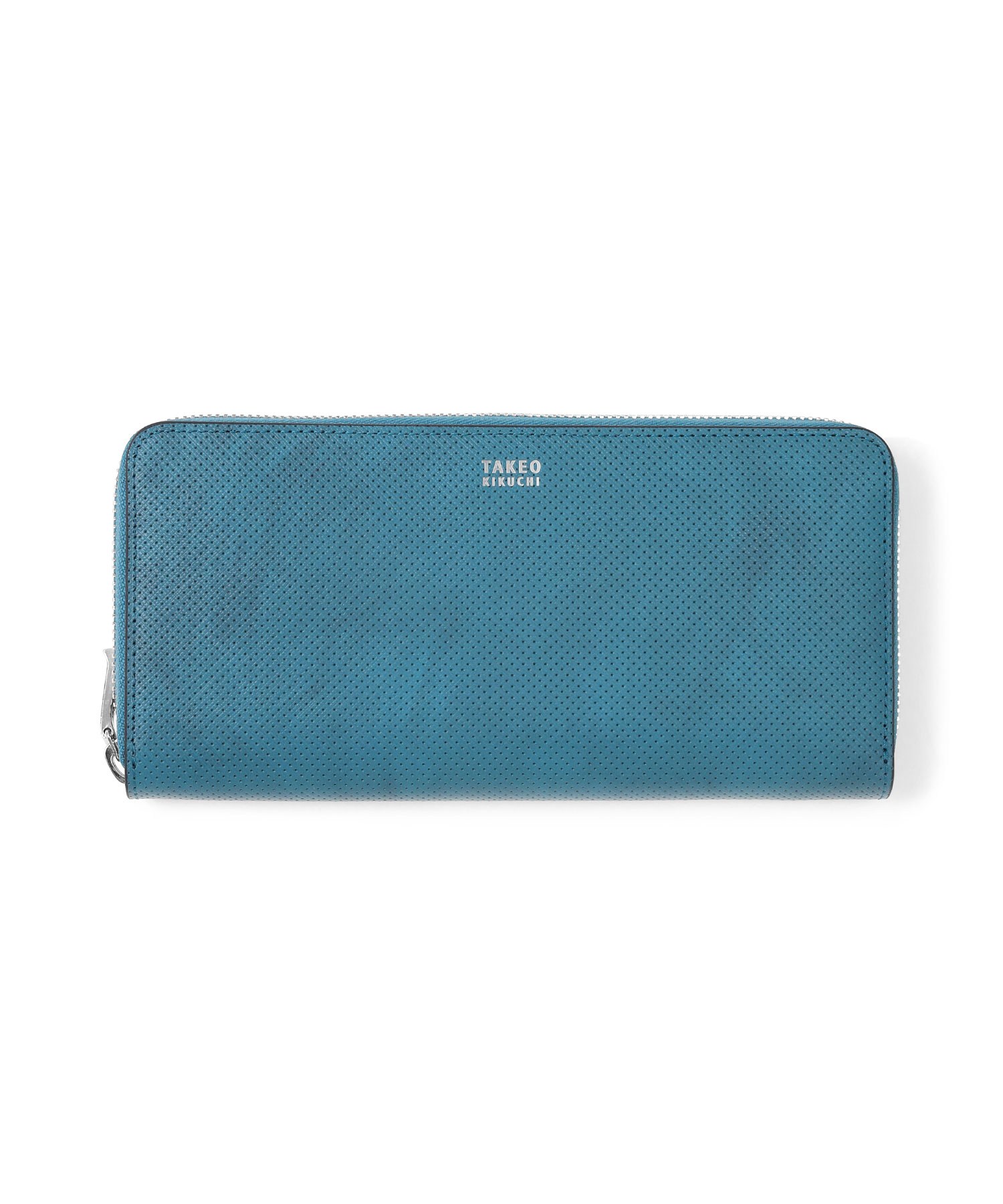 アンティークレザーにWエンボスを施した、 タケオキクチのラウンドファスナー長財布