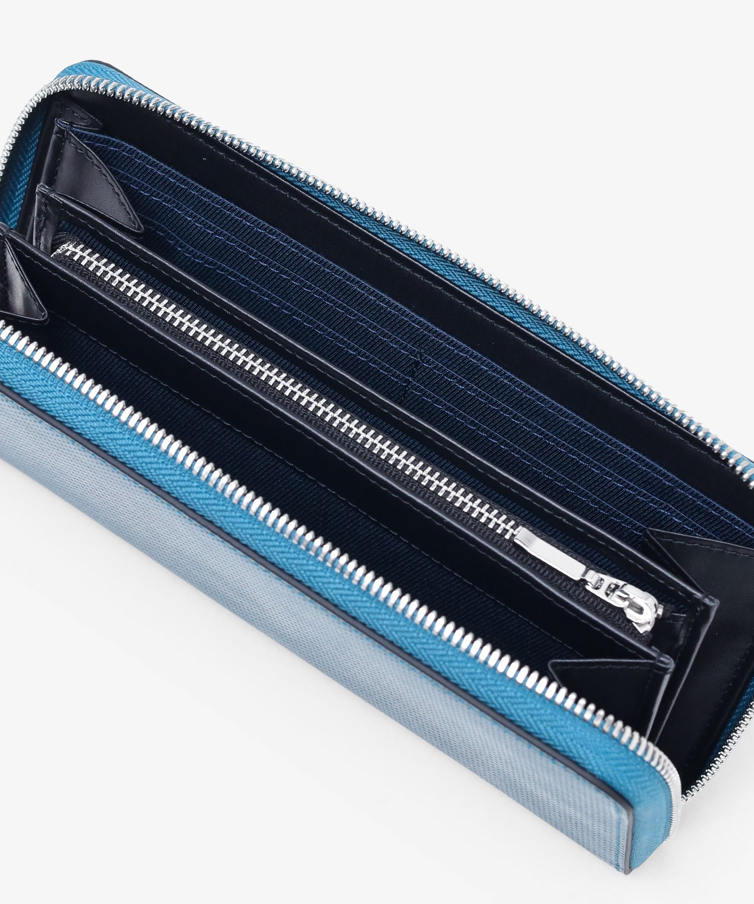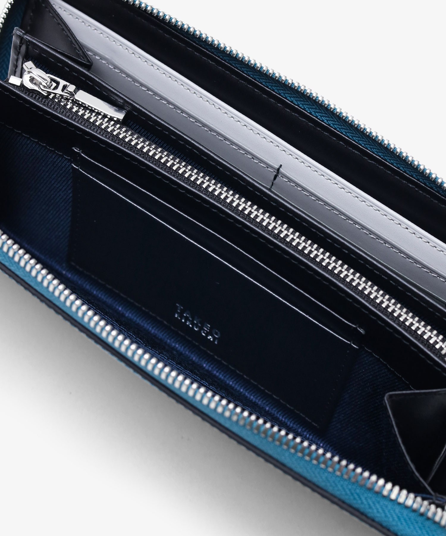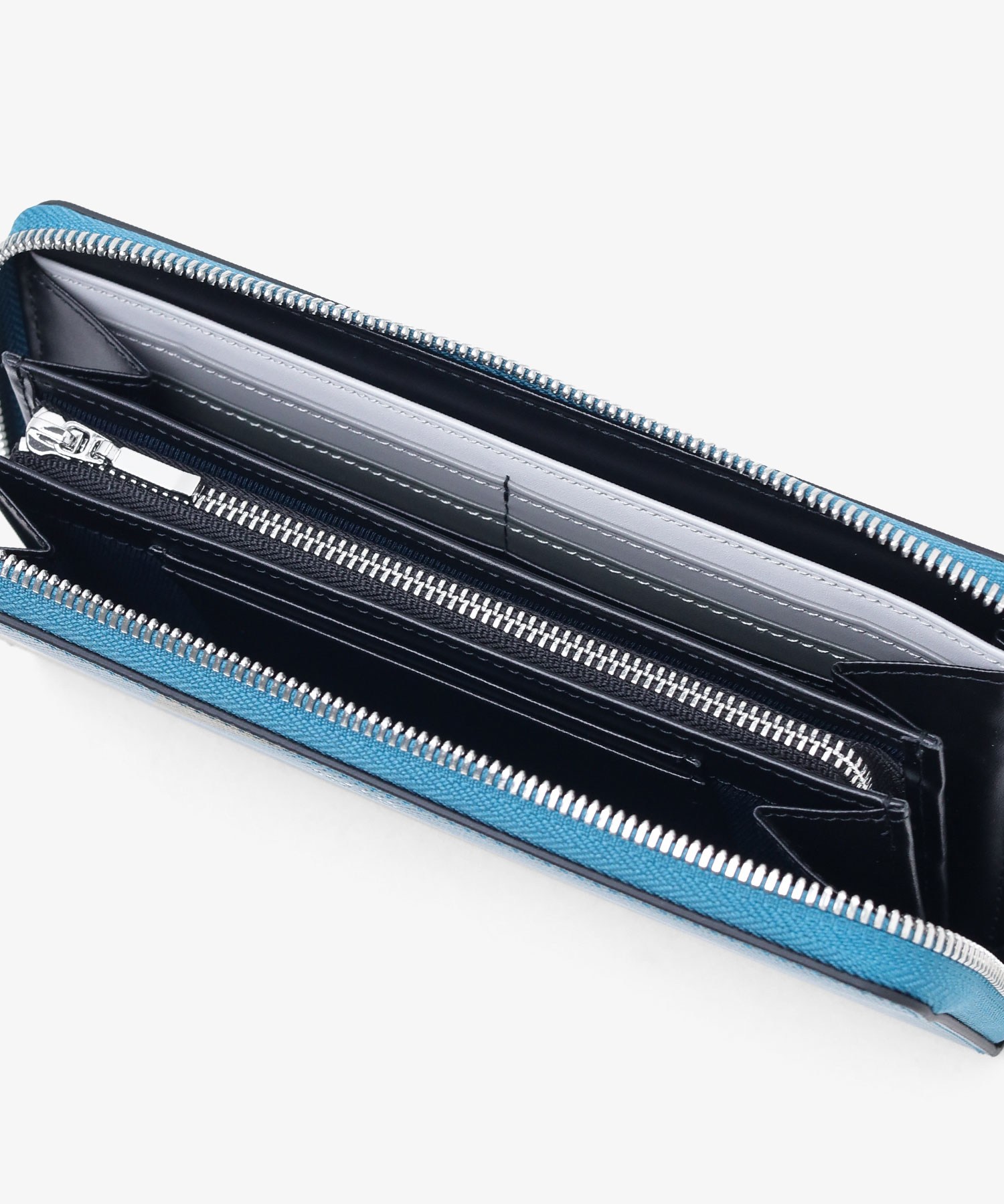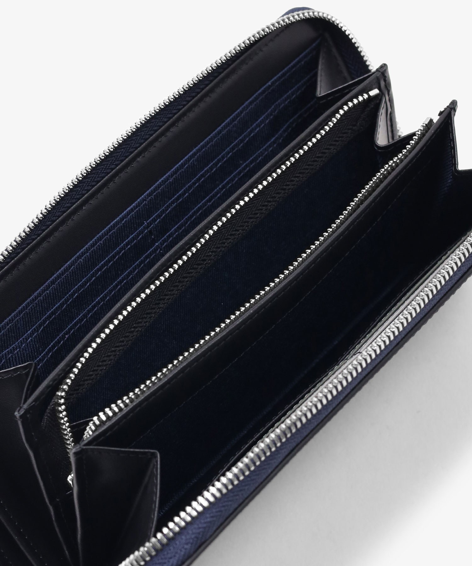 14枚分のカードポケットと2室構造の札入れ、小銭入れに加え、2つのポケットを装備。充実した収納力と実用性を兼ね備えています。ファスナーで大きく開く仕様により、視認性が高く出し入れもスムーズです。