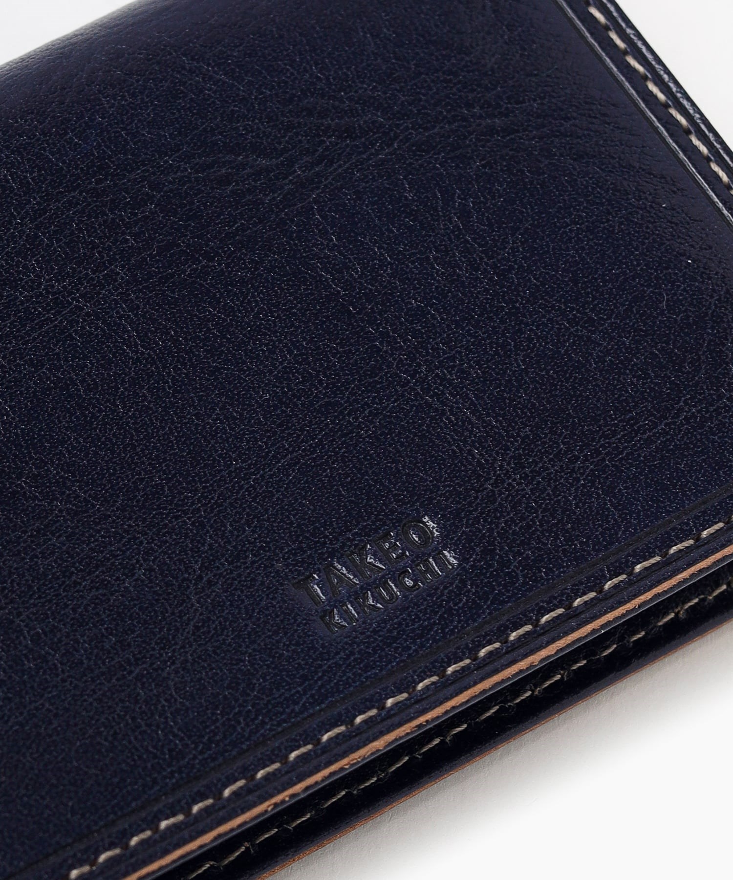 革本来の質感を活かしたシックな印象の外装と、ダスティカラーを取り入れた内装とのコントラストが魅力の、TAKEO KIKUCHIのパスケース。