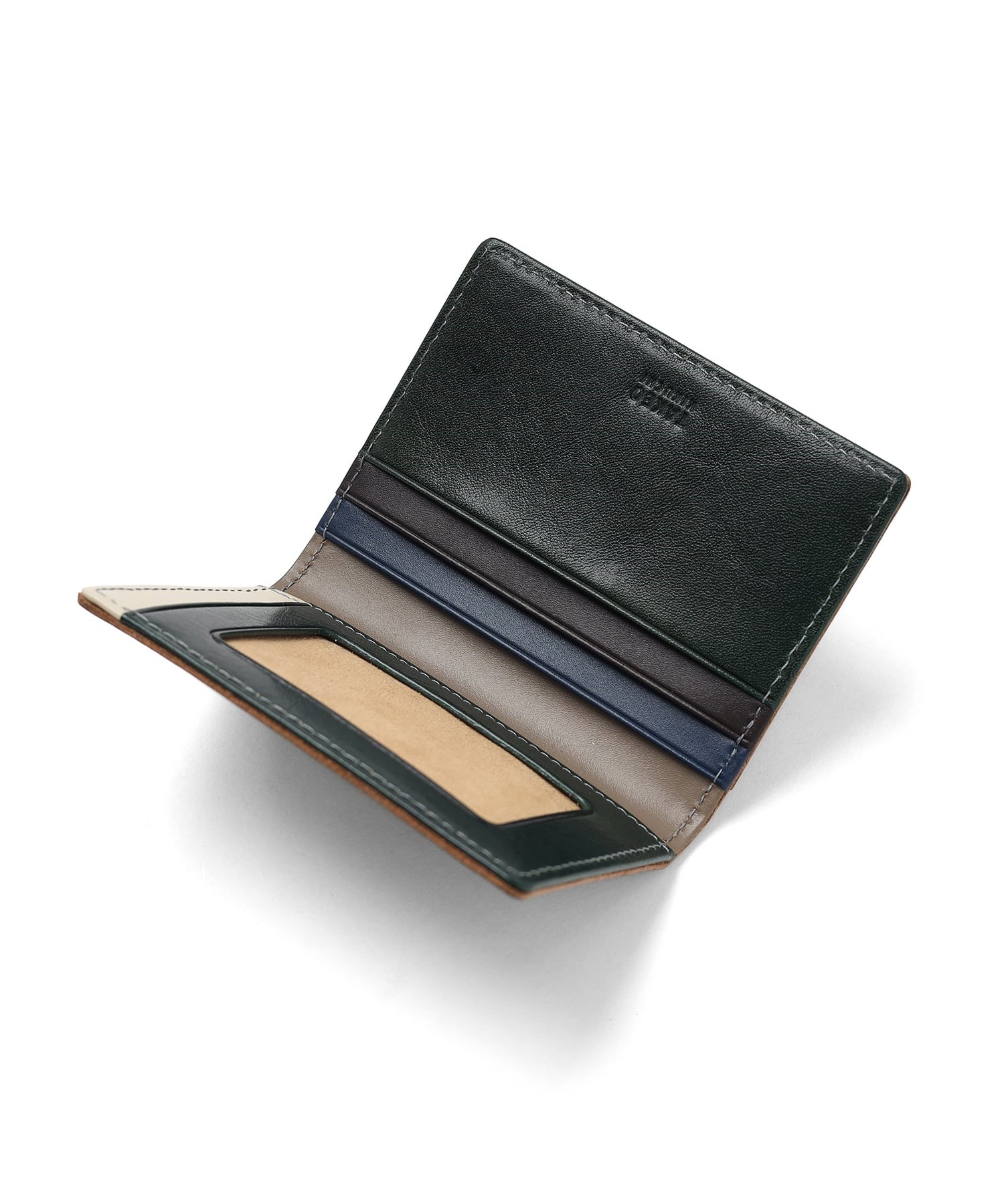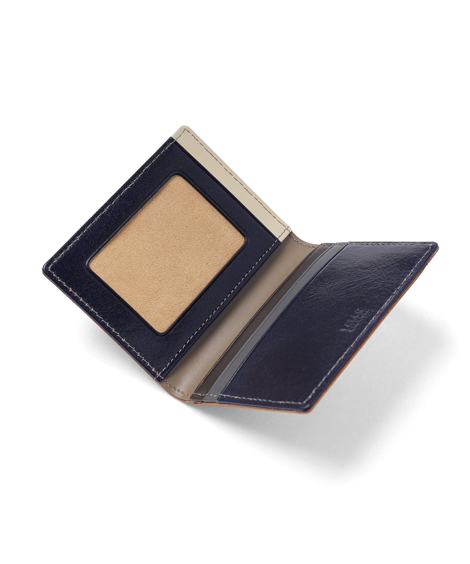 革本来の質感を活かしたシックな印象の外装と、ダスティカラーを取り入れた内装とのコントラストが魅力の、TAKEO KIKUCHIのパスケース。落ち着いたトーンで統一し、洗練された大人の雰囲気に仕上げました。