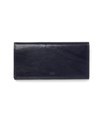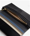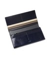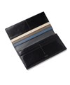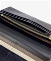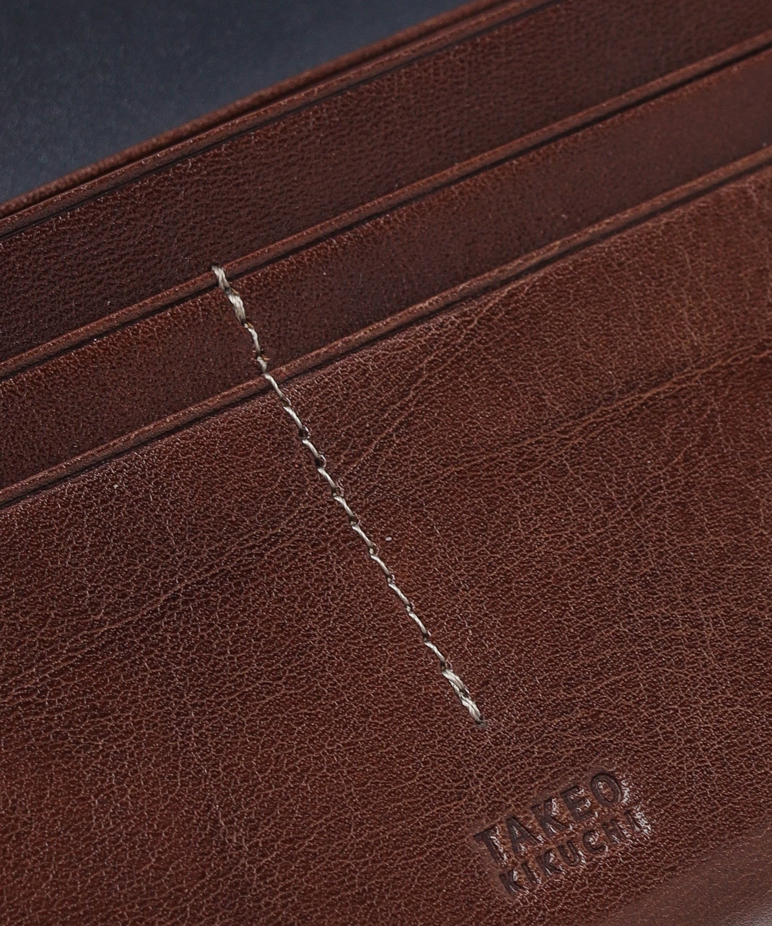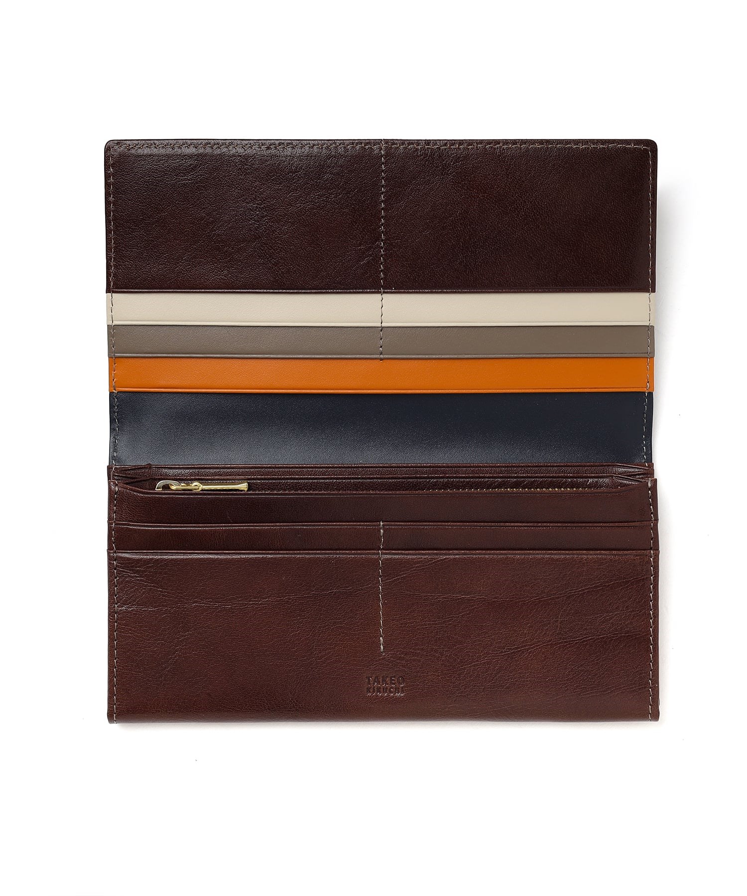 革本来の質感を活かしたシックな印象の外装と、ダスティカラーを取り入れた内装とのコントラストが魅力の、TAKEO KIKUCHIの長財布。