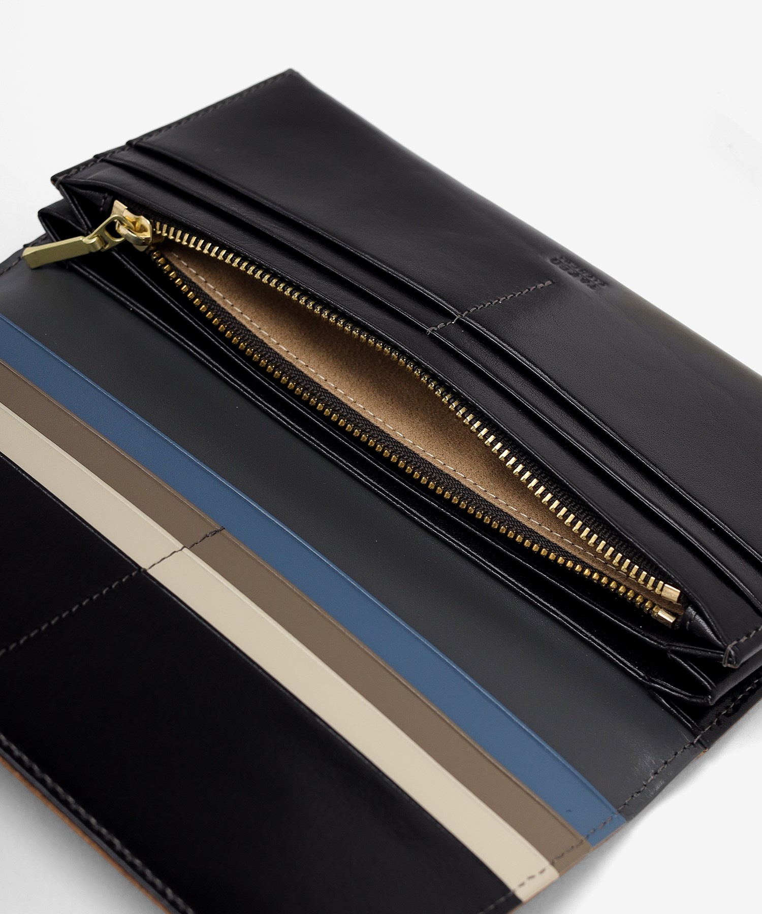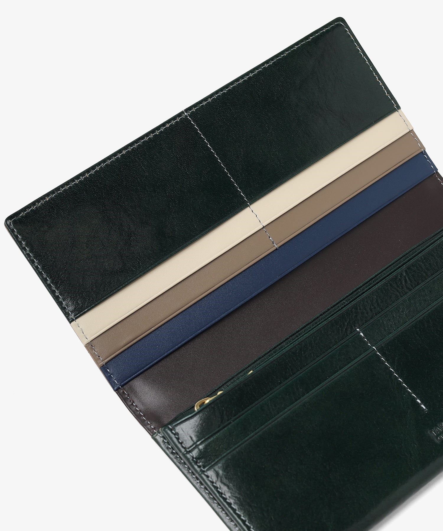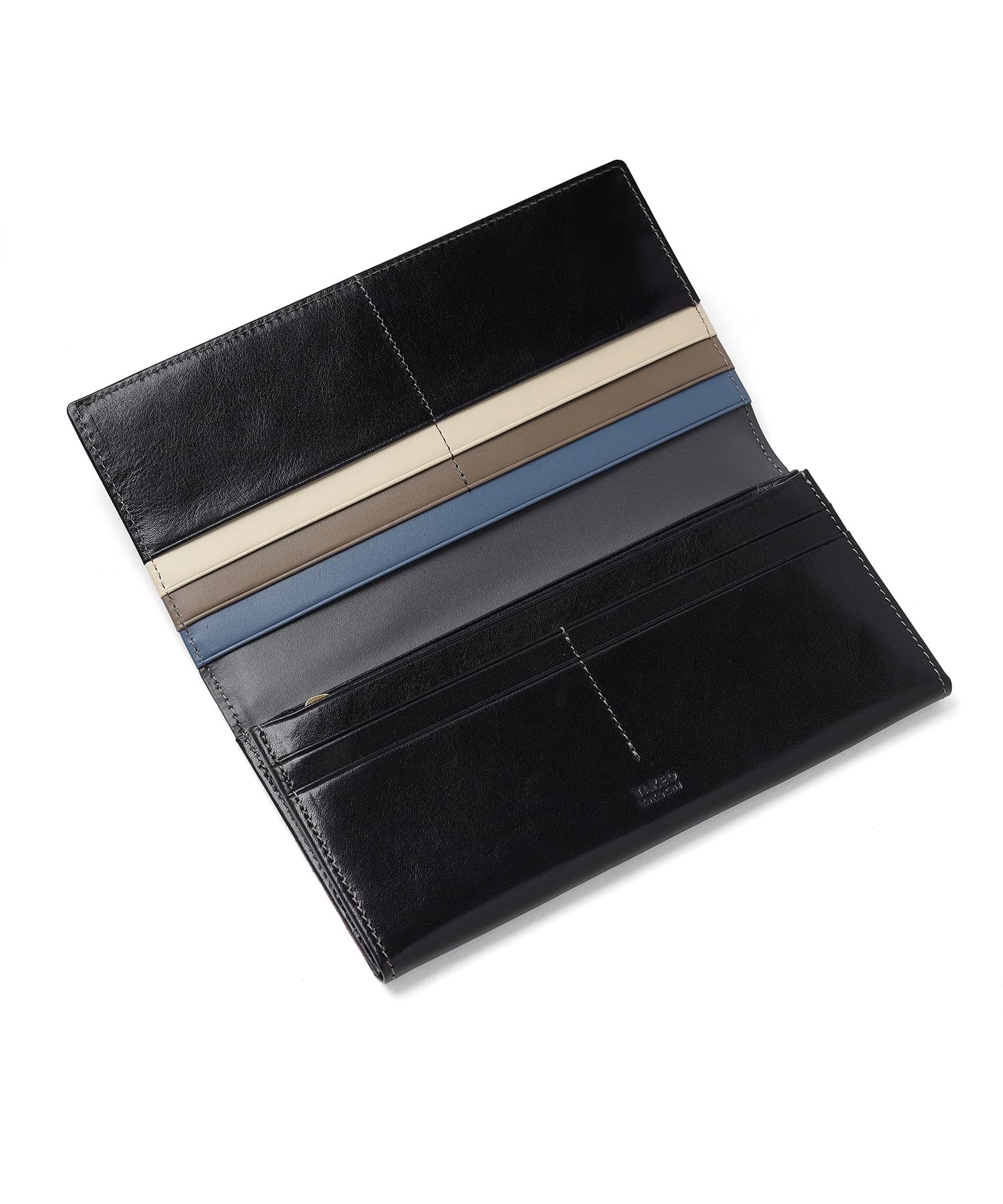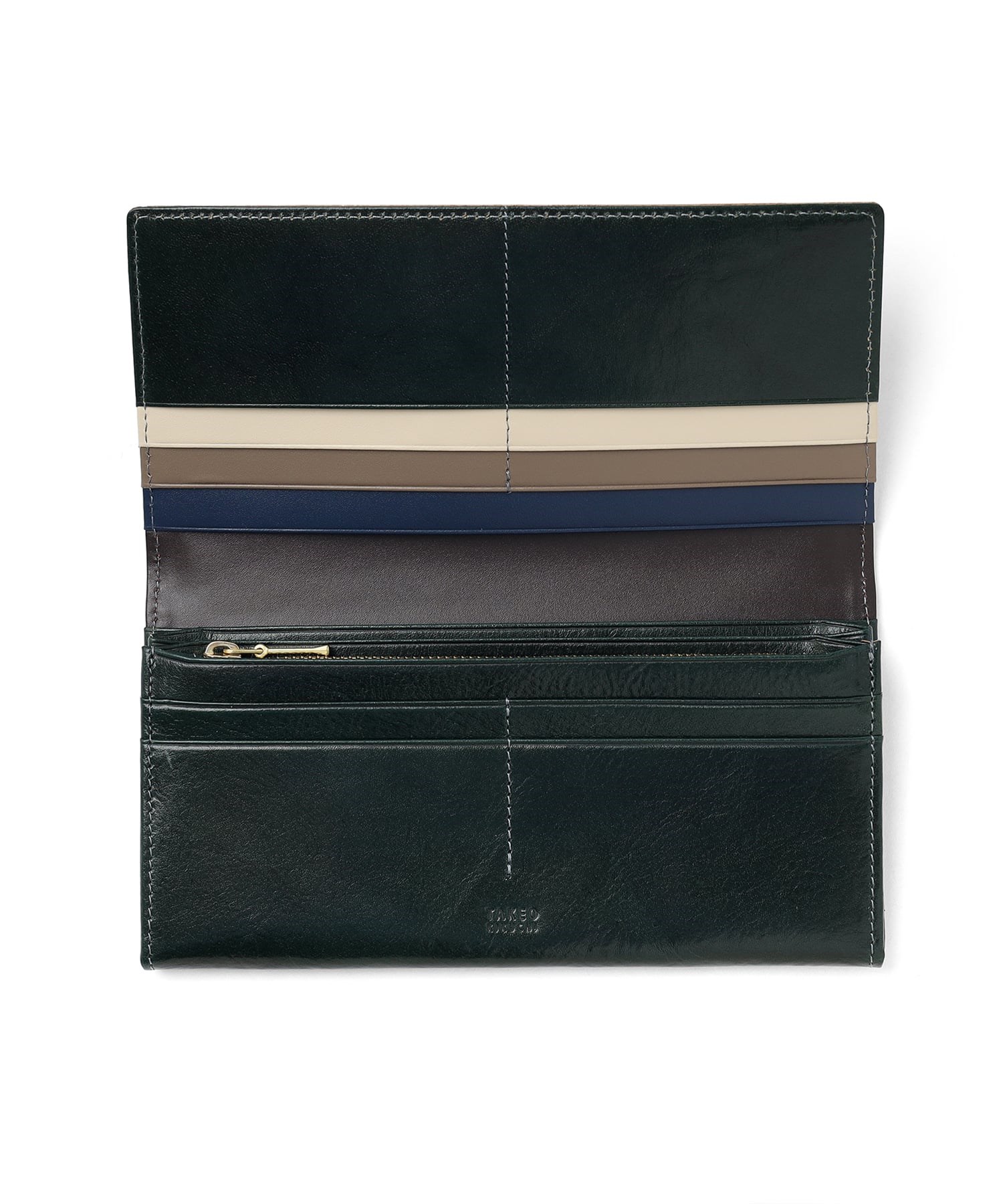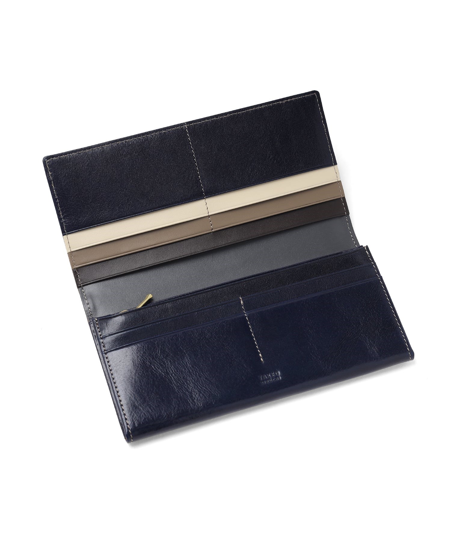 革本来の質感を活かしたシックな印象の外装と、ダスティカラーを取り入れた内装とのコントラストが魅力の、TAKEO KIKUCHIのかぶせ長財布。落ち着いたトーンで統一し、洗練された大人の雰囲気に仕上げました。